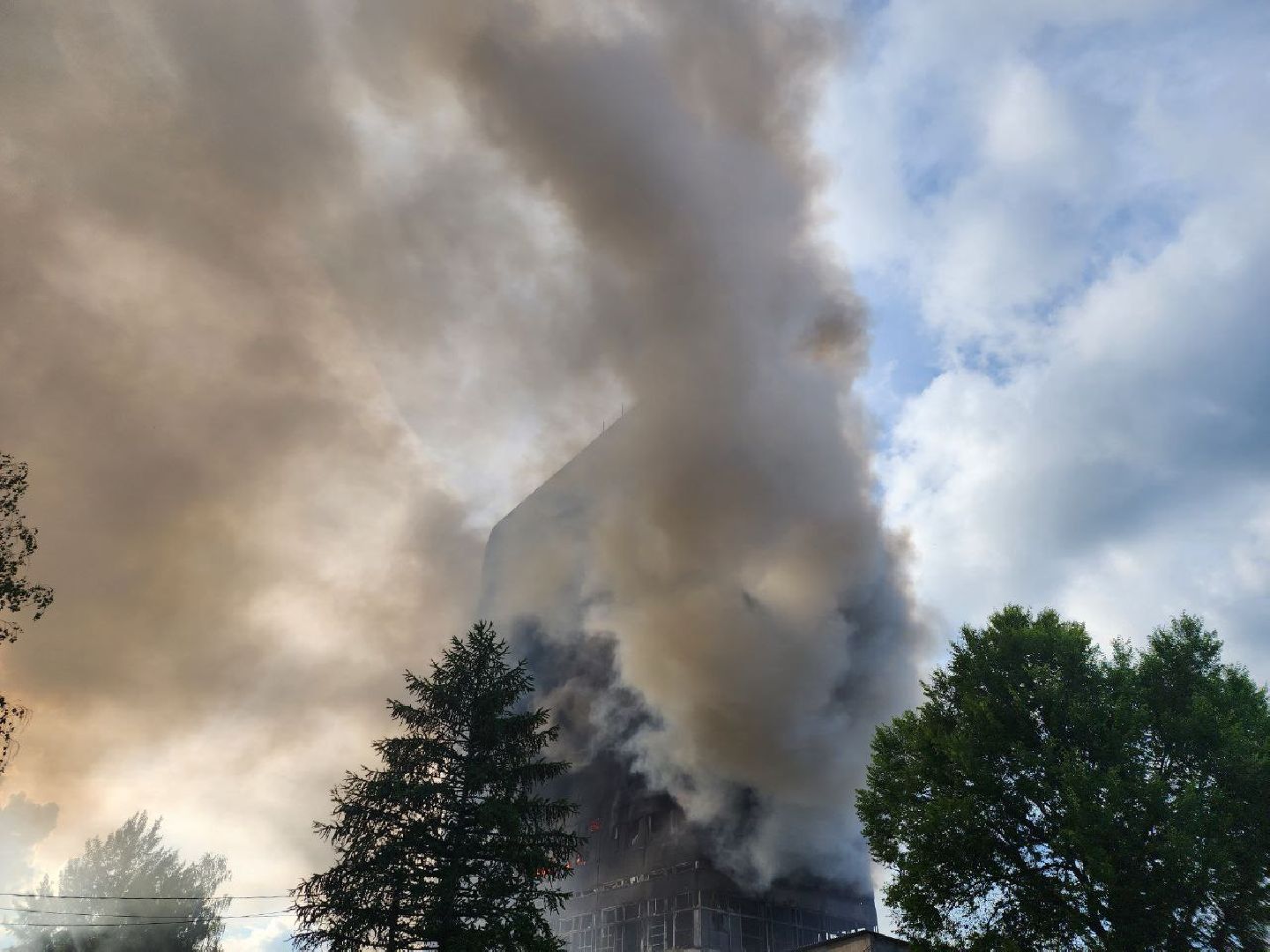 Информация о пожаре по адресу: Заводской проезд, дом 2, поступила в 14:39. На момент прибытия первого пожарно-спасательного подразделения наблюдалось сильное задымление на пятом этаже восьмиэтажного здания. Затем площадь пожара увеличилась до 5 тысяч квадратных метров. К месту ЧП были направлены два вертолёта вертолет Ка-32 Московского авиационного центра.