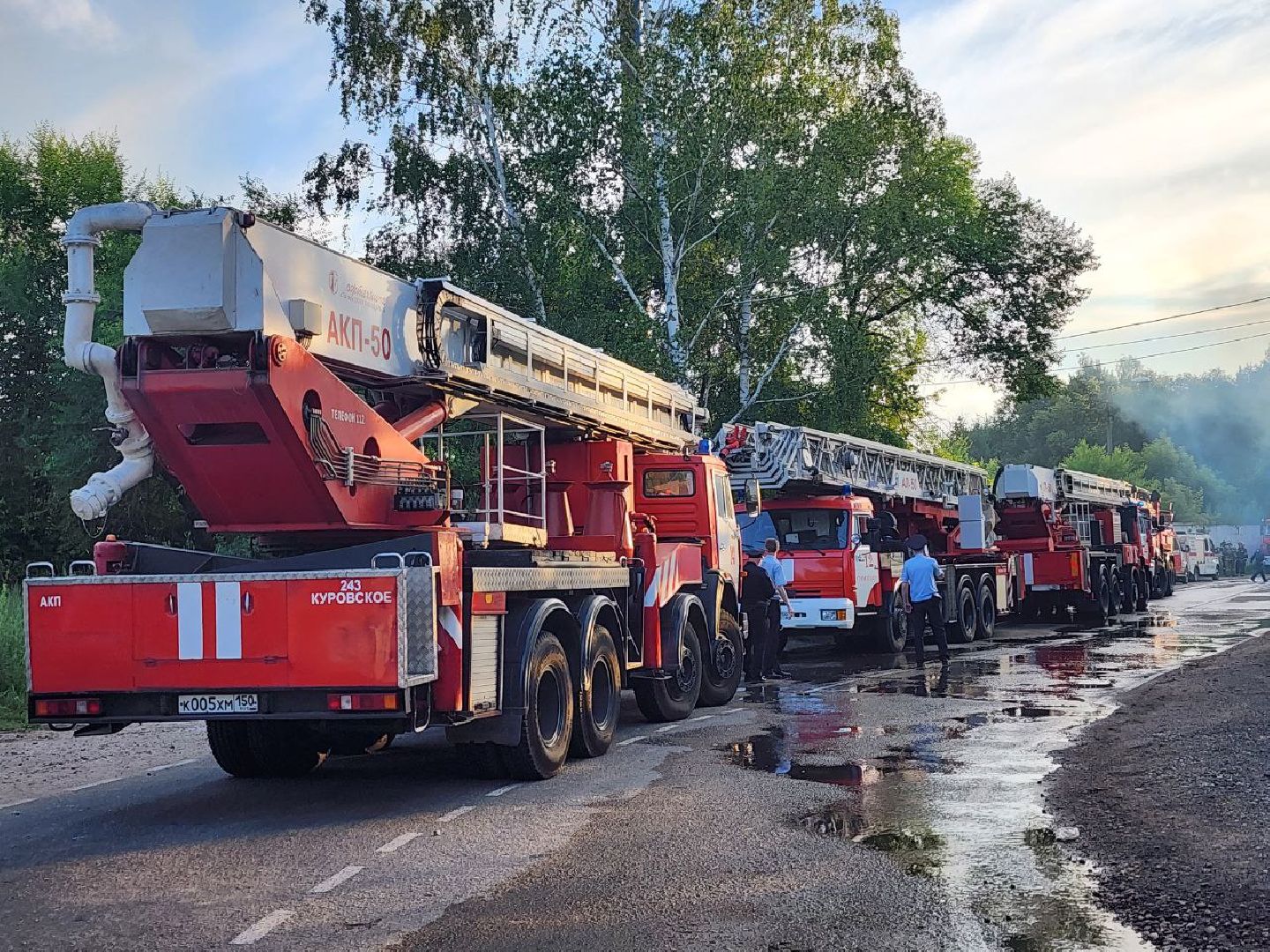 «Площадь пожара во Фрязино увеличилась до 5 тысяч квадратных метров. Внутри здания находятся баллоны с газовоздушной смесью. На месте работают более 130 специалистов и 50 единиц техники», – сообщила пресс-служба МЧС России.