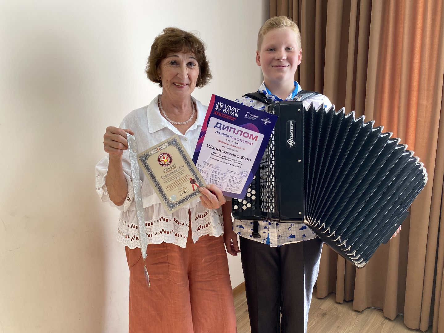 «Мы очень гордимся тем, что Егор стал лауреатом второй степени на конкурсе «Виват Баян» и принял участие в таком масштабном шествии, участие в мероприятиях подобного уровня повышает престиж и рейтинг школы», — поделилась Юлия Сляднева, директор ЦДМШ им.Алябьева.