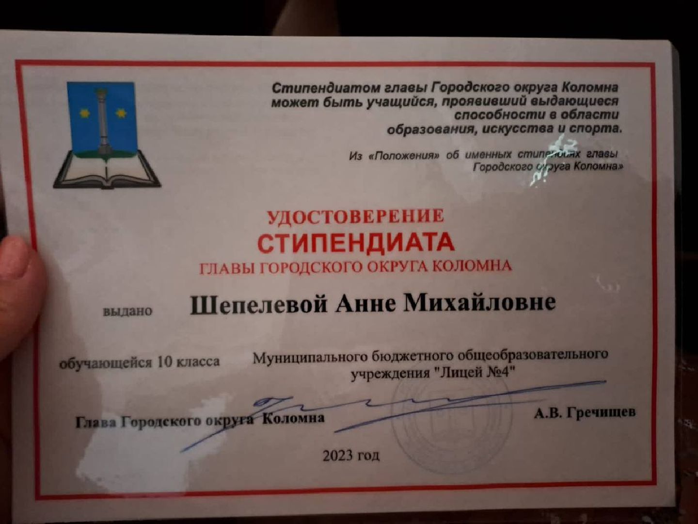 1 марта 2023 года глава городского округа Коломна подписал постановление, устанавливающее размер именной стипендии руководителя муниципалитета. В этом году денежная премия составила 10 000 рублей.