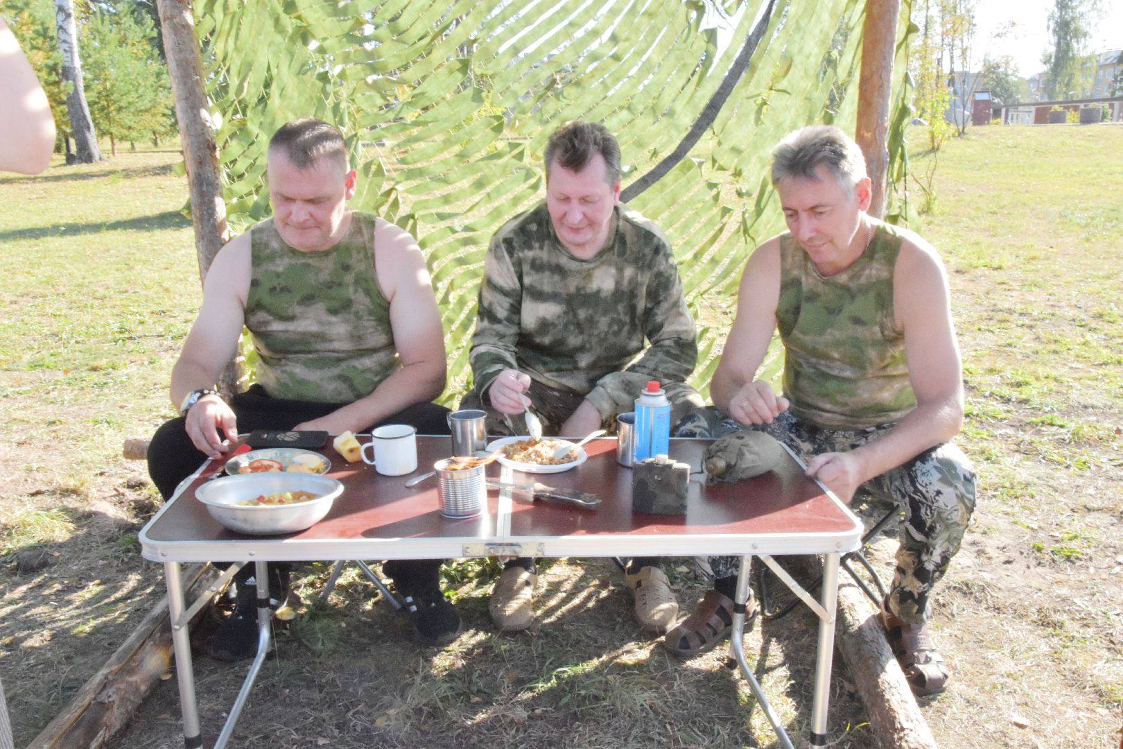 Манты и пироги от семьи Фроловых разлетелись быстро. Также как и блюда других участников конкурса. Спросом пользовалась и простая гречневая каша – как с полевой кухни. Своеобразную инсталляцию солдатского привала сделали активисты местной общественной палаты.