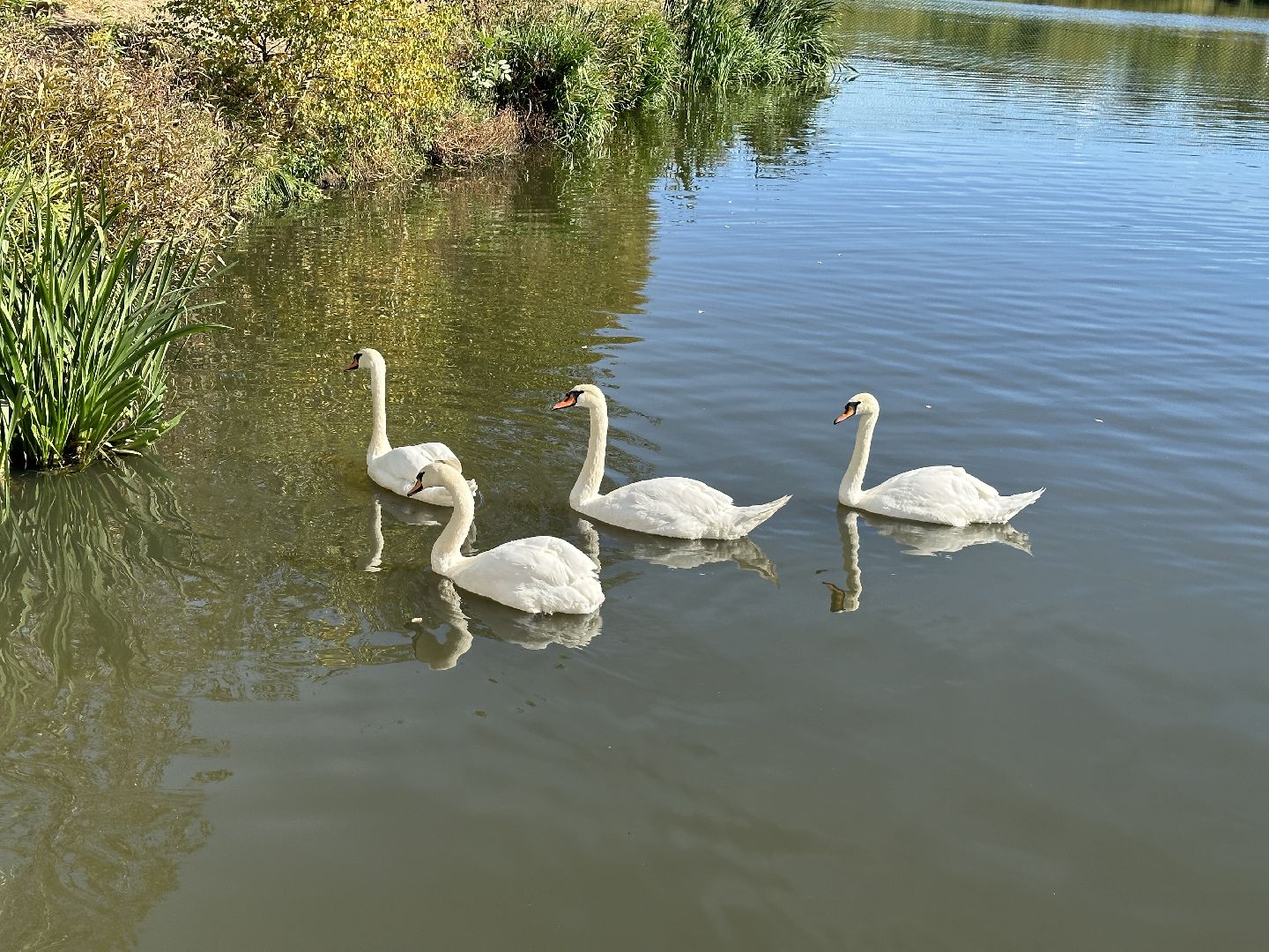 «Нужно помочь птицам адаптироваться»: для новых «жителей» Мытищ - четырёх лебедей на реке Яуза - установили плавающую кормушку