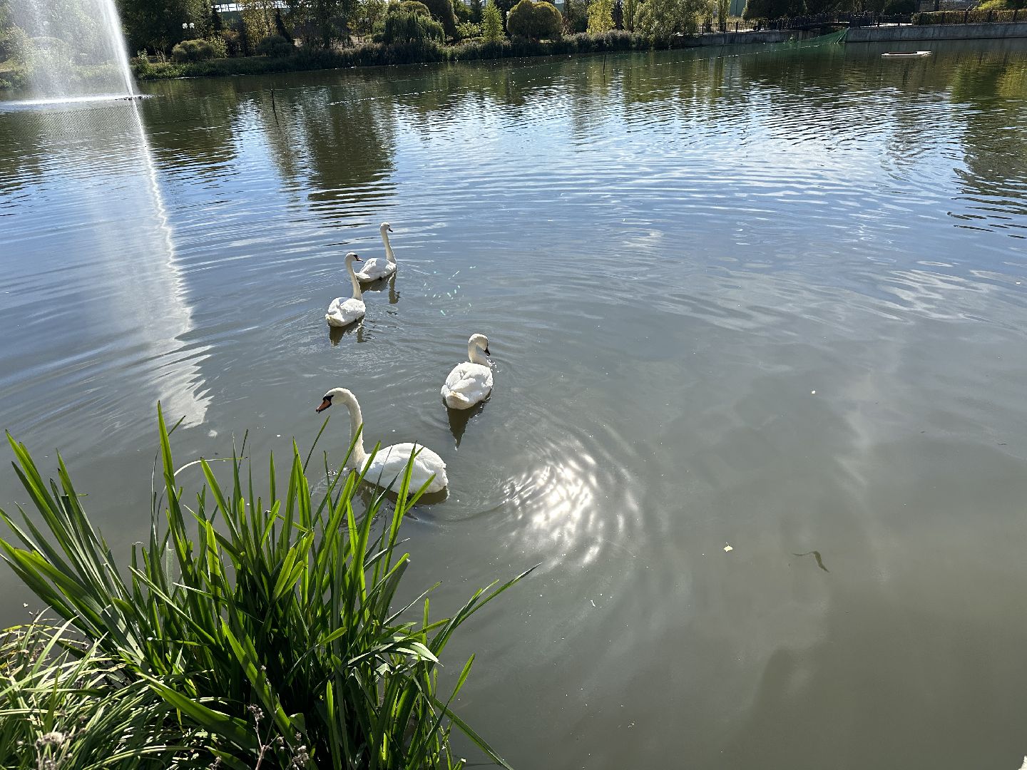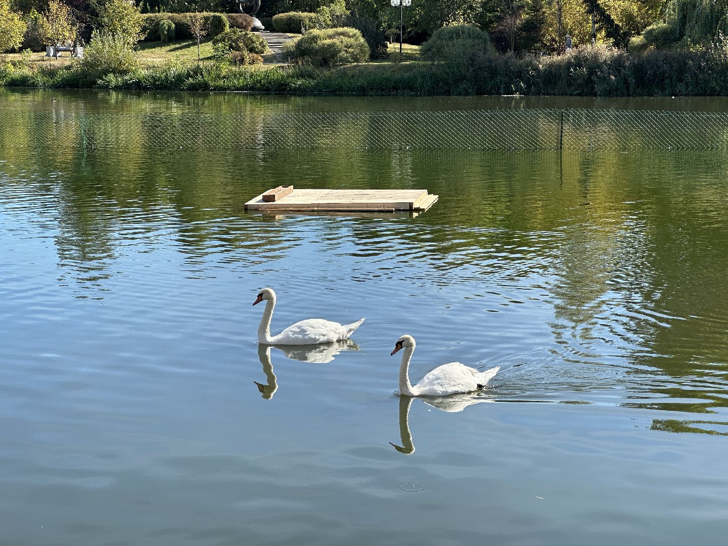 Кормление лебедей хлебом категорически запрещено. Он негативно влияет на пищеварительную систему птиц и вызывает различные заболевания. Для кормления лебедей и других водоплавающих птиц на территории Парка Мира установлены специальные автоматы с кормом.