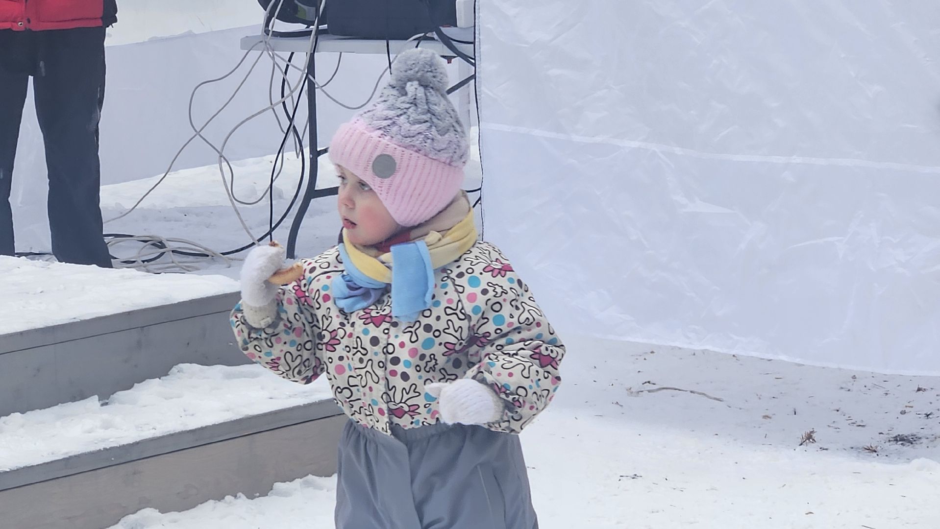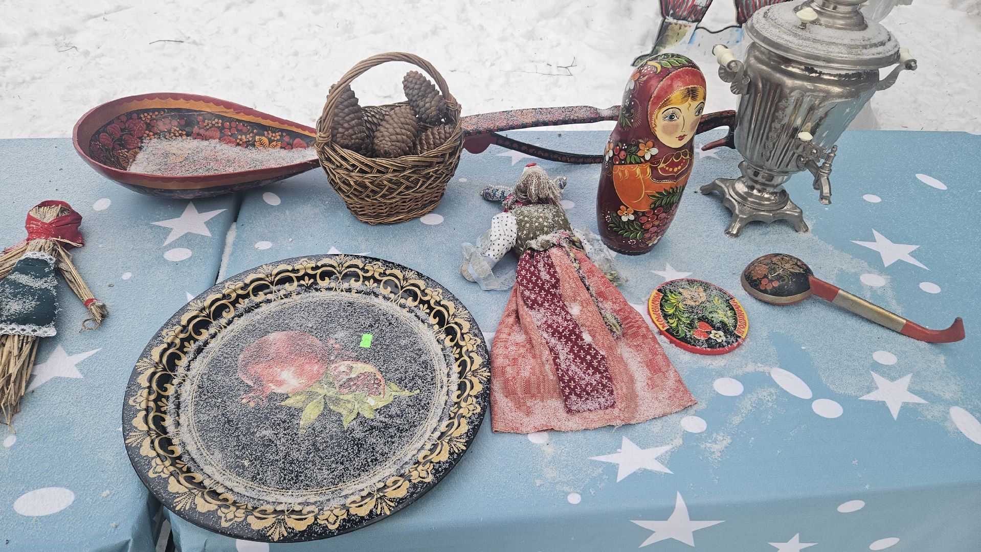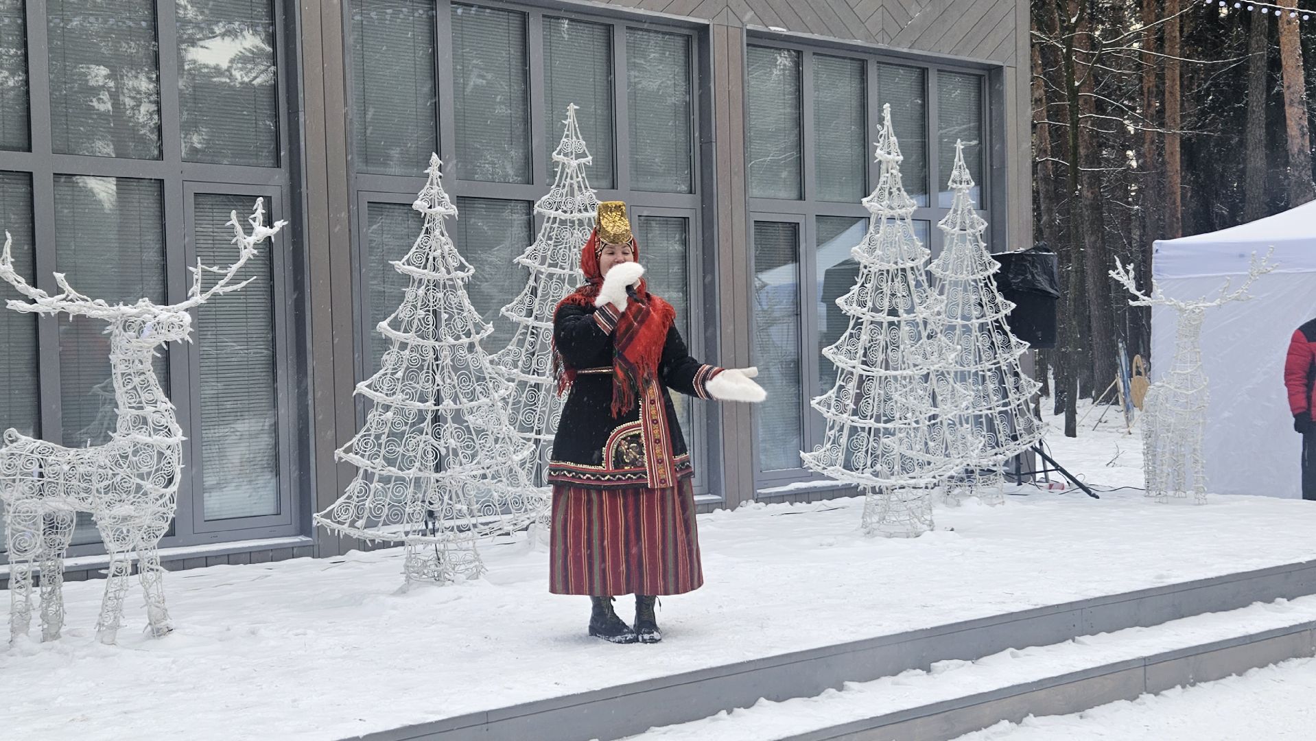 Программа была очень разнообразной, развлечений хватило и детям, и взрослым. Здесь пели песни, играли в ручеёк, ели баранки и запивали их горячим чаем из настоящего самовара. Согреться можно было не только им — здесь была устроена зона с лавочками и настоящим очагом с живым огнём. Также можно было увидеть выставку народных русских промыслов.