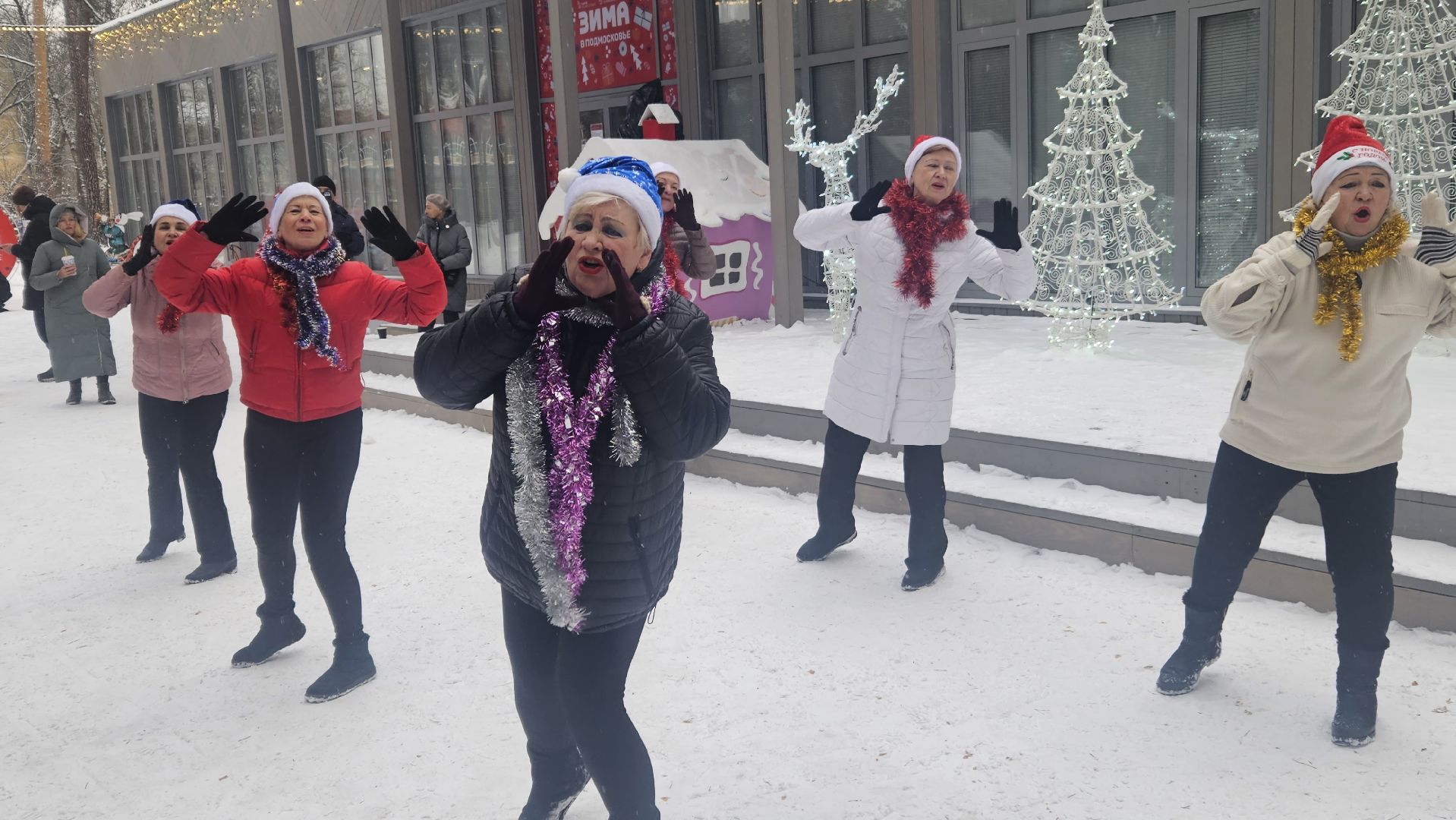 Зрители с удовольствием принимали участие в играх, танцевали под живое пение артистки и поддерживали участниц «Активное долголетие», исполнивших танец под новогоднюю музыку.