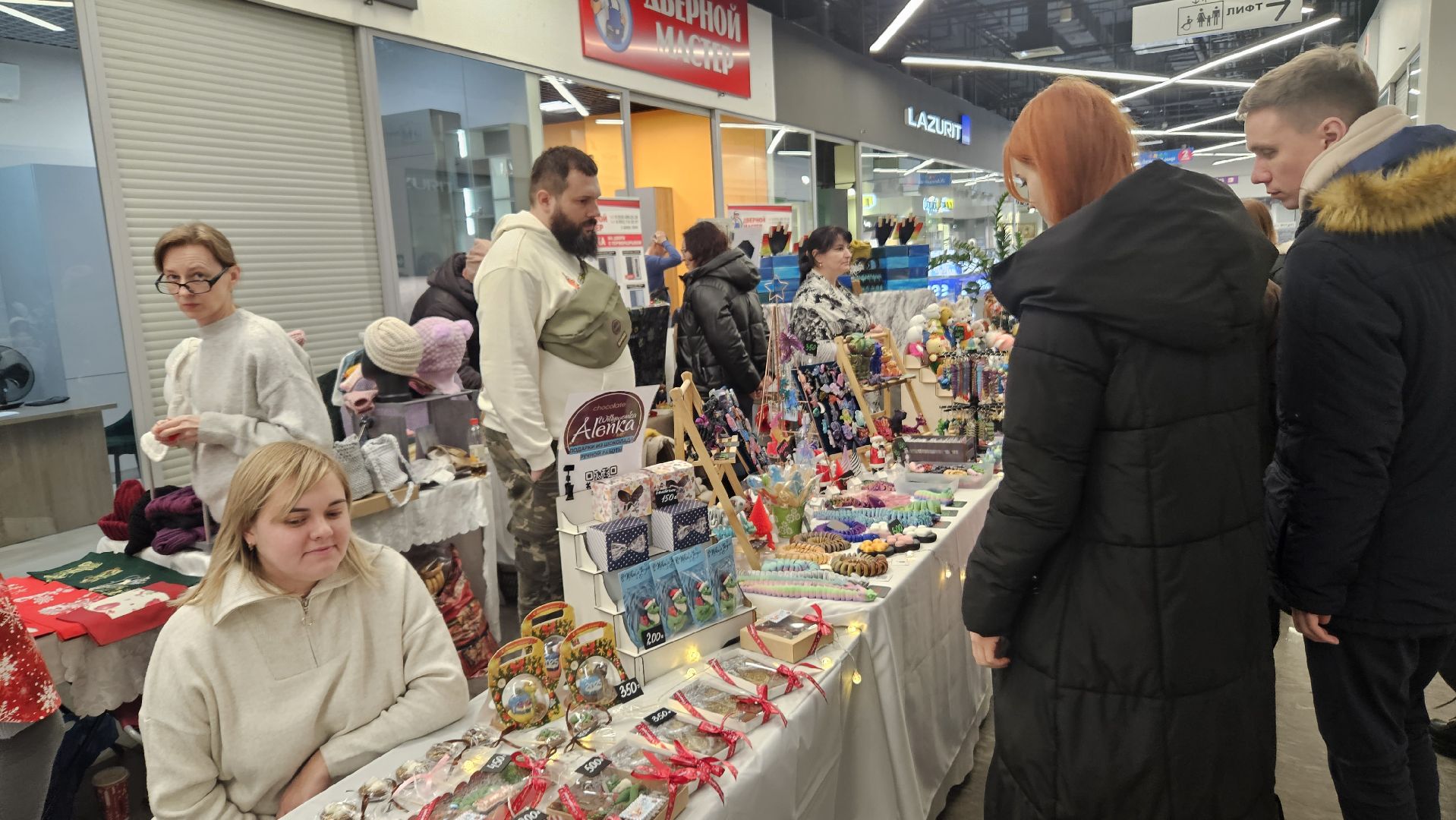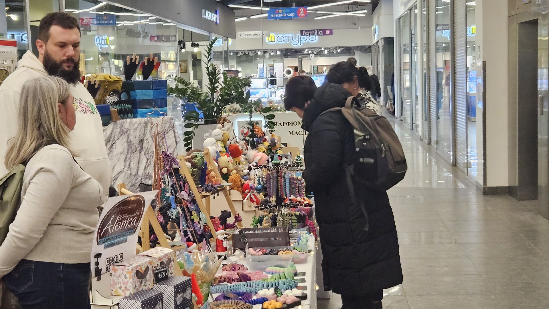 В торговом центре «Самолёт» открылась новогодняя Hand-made ярмарка: здесь можно купить уникальные изделия ручной работы от мастеров из Жуковского и ближайших городов. Свечи, игрушки 3D-печати, украшения, интерьерные картины и дизайнерские игрушки, печенье и текстиль: всё это было представлено покупателям.