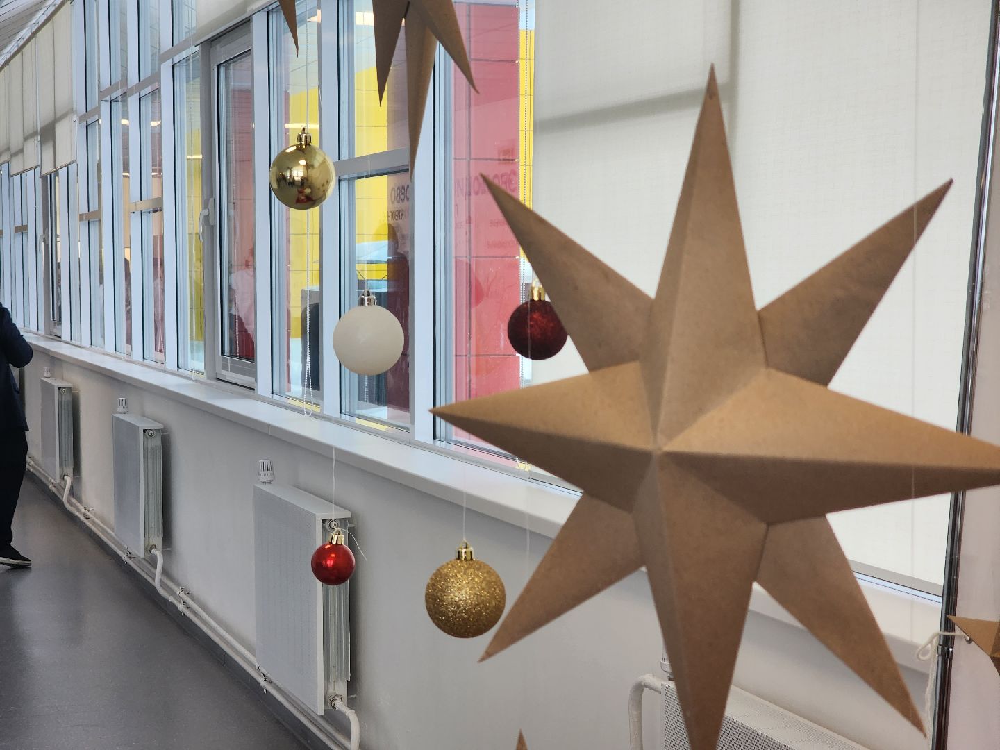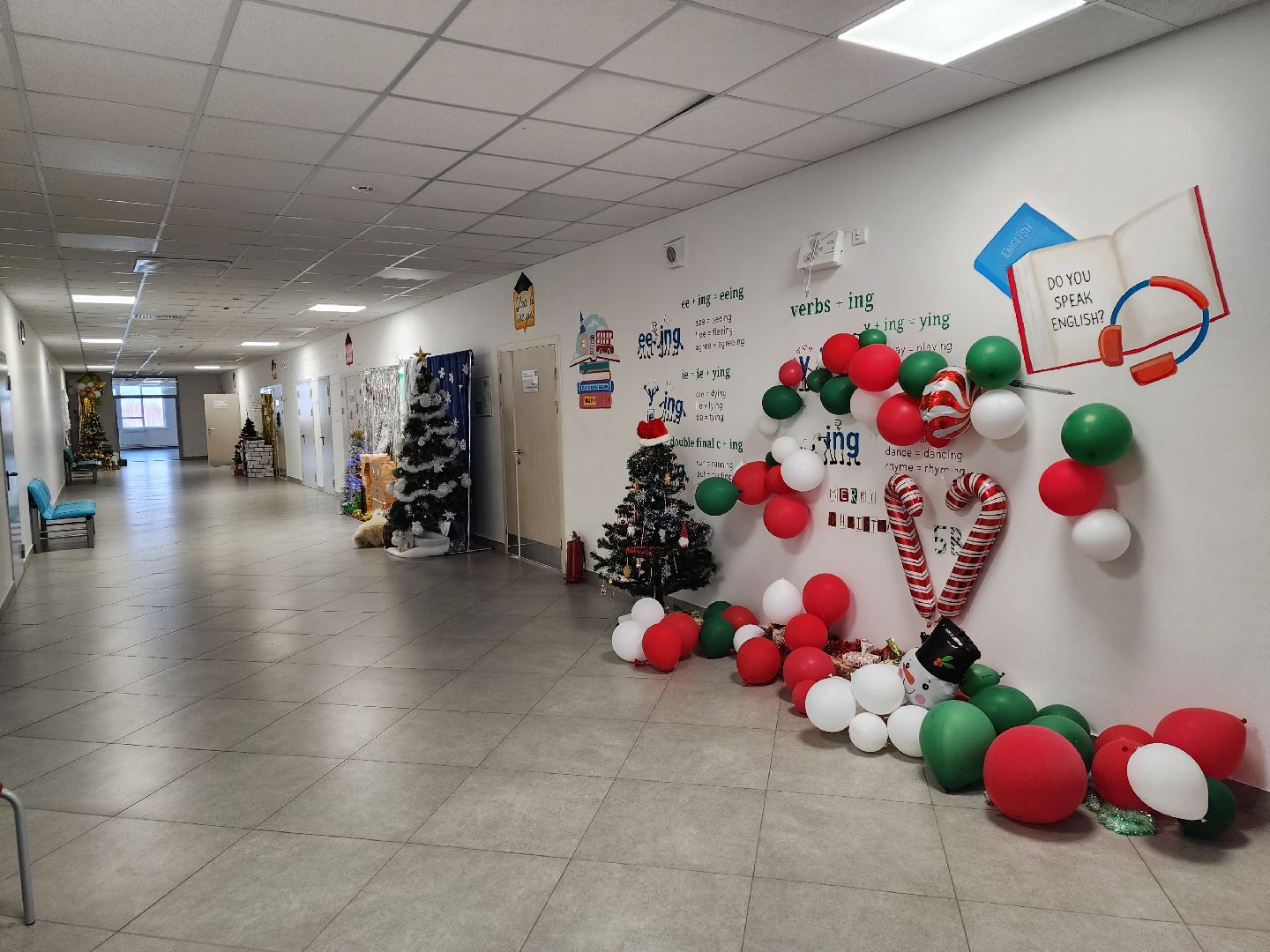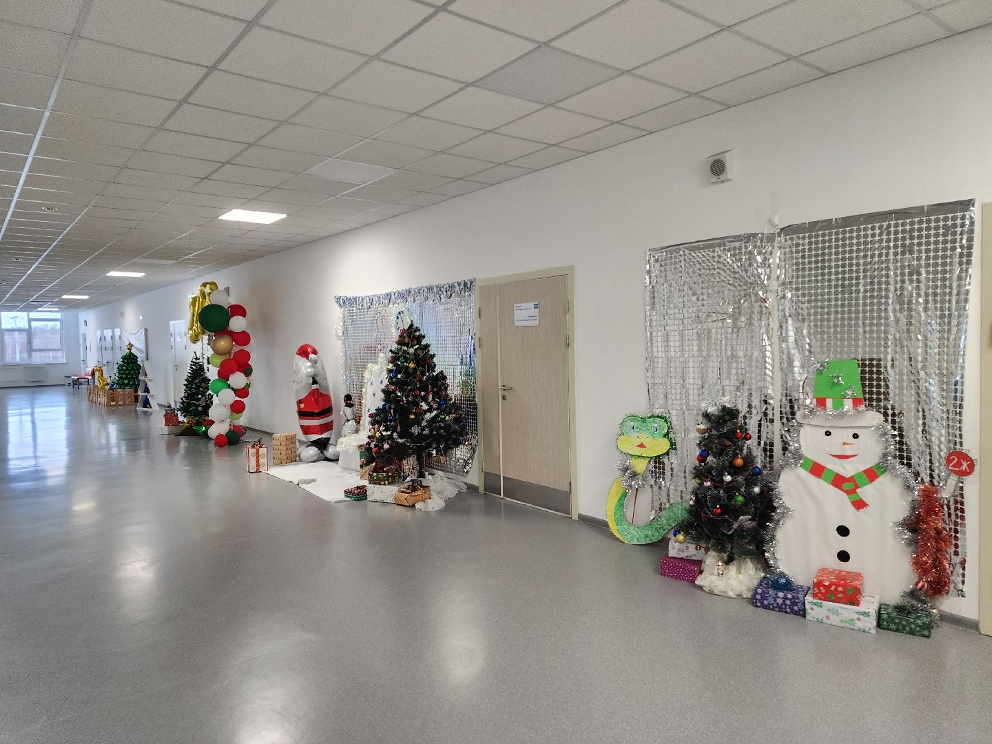 В новом корпусе «Перспектива» коридоры просторные и напоминают улицы. Ученики и педагоги их называют бульварами. Сейчас гулять по этим бульварам — одно удовольствие. Русский народный сюжет из сказки «12 месяцев» сменяют декорации из зарубежного фильма про волшебников. А такие праздничные атрибуты как санки, ёлочные шары, здесь можно встретить в миниатюре или выше человеческого роста.