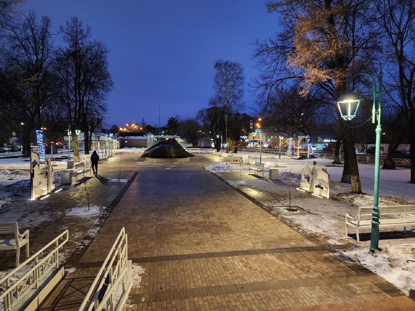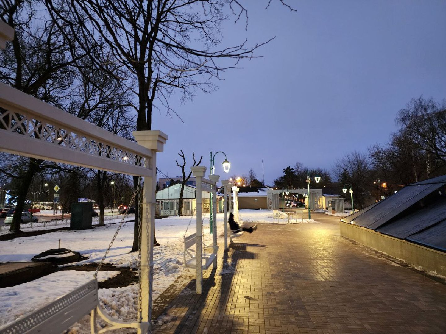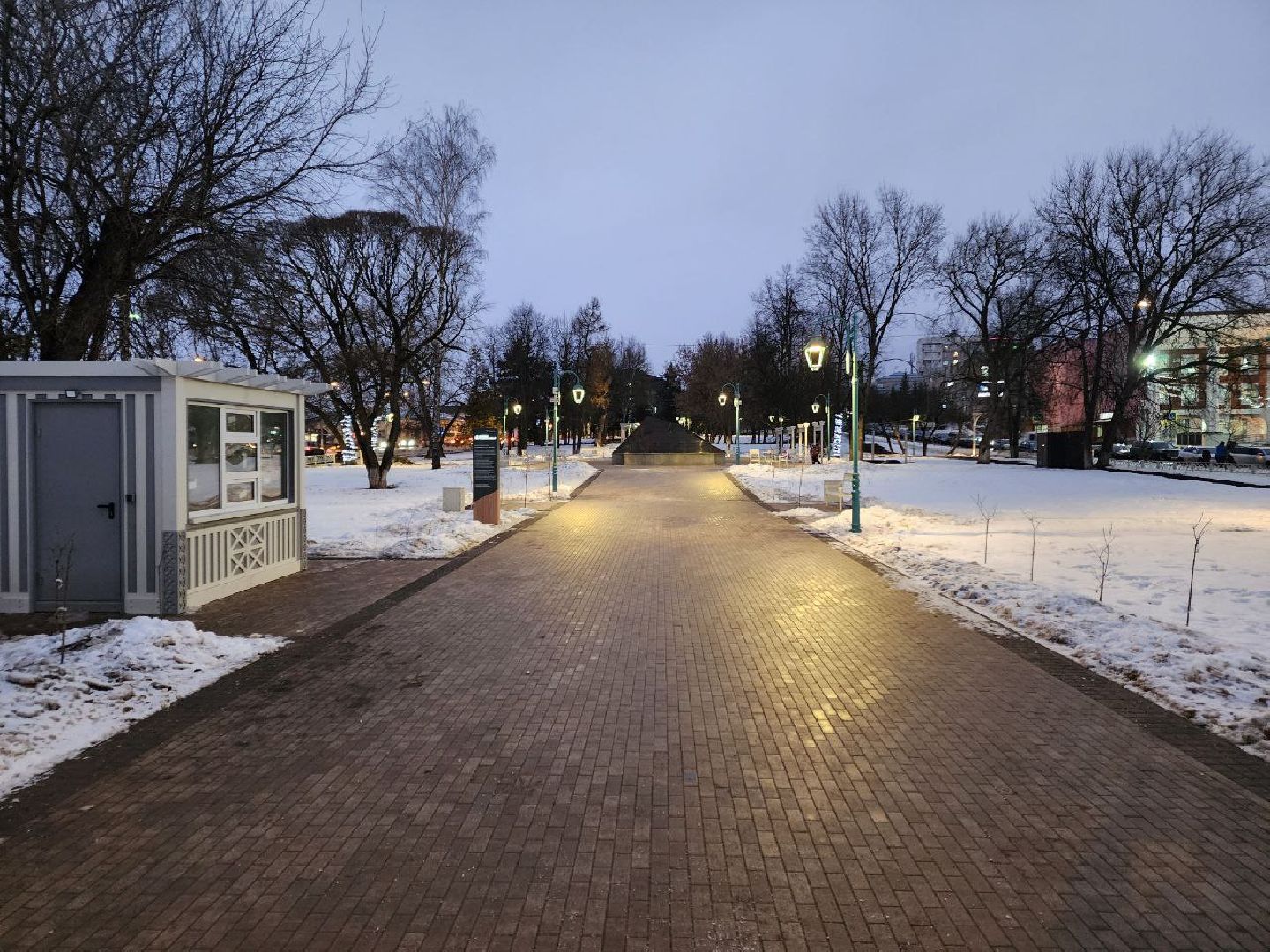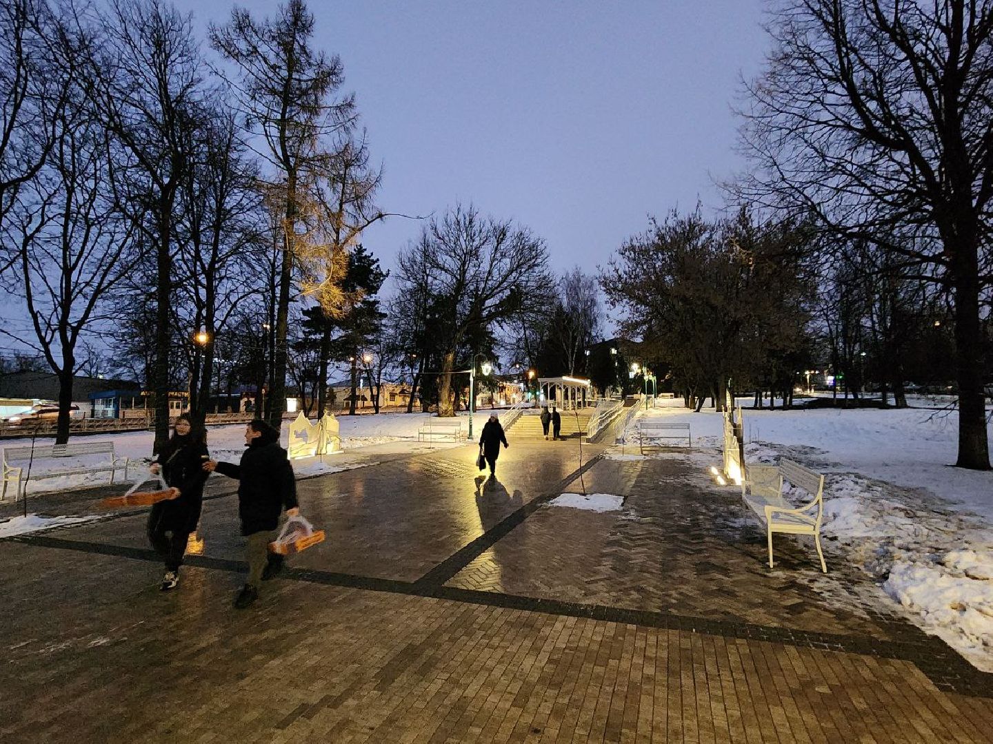 Наладили и наружное освещение. Установили вечернюю подсветку арт-объектов и малых архитектурных форм.
