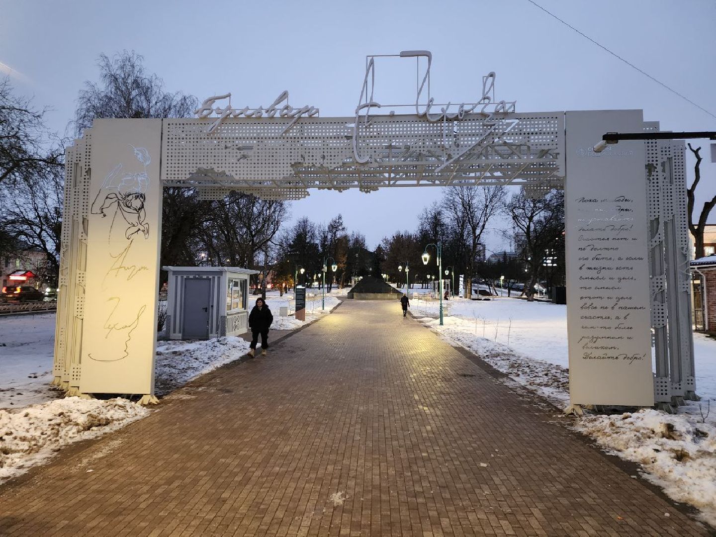 Теперь жители и гости Чехова будут входить в бульвар через арки. На центральной разместили название бульвара, автограф А.П. Чехова и его цитаты.