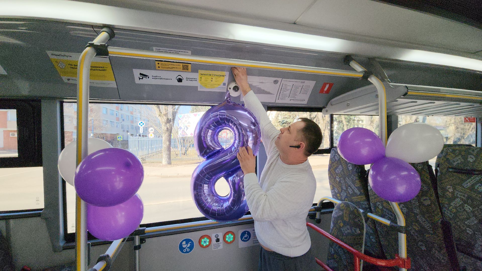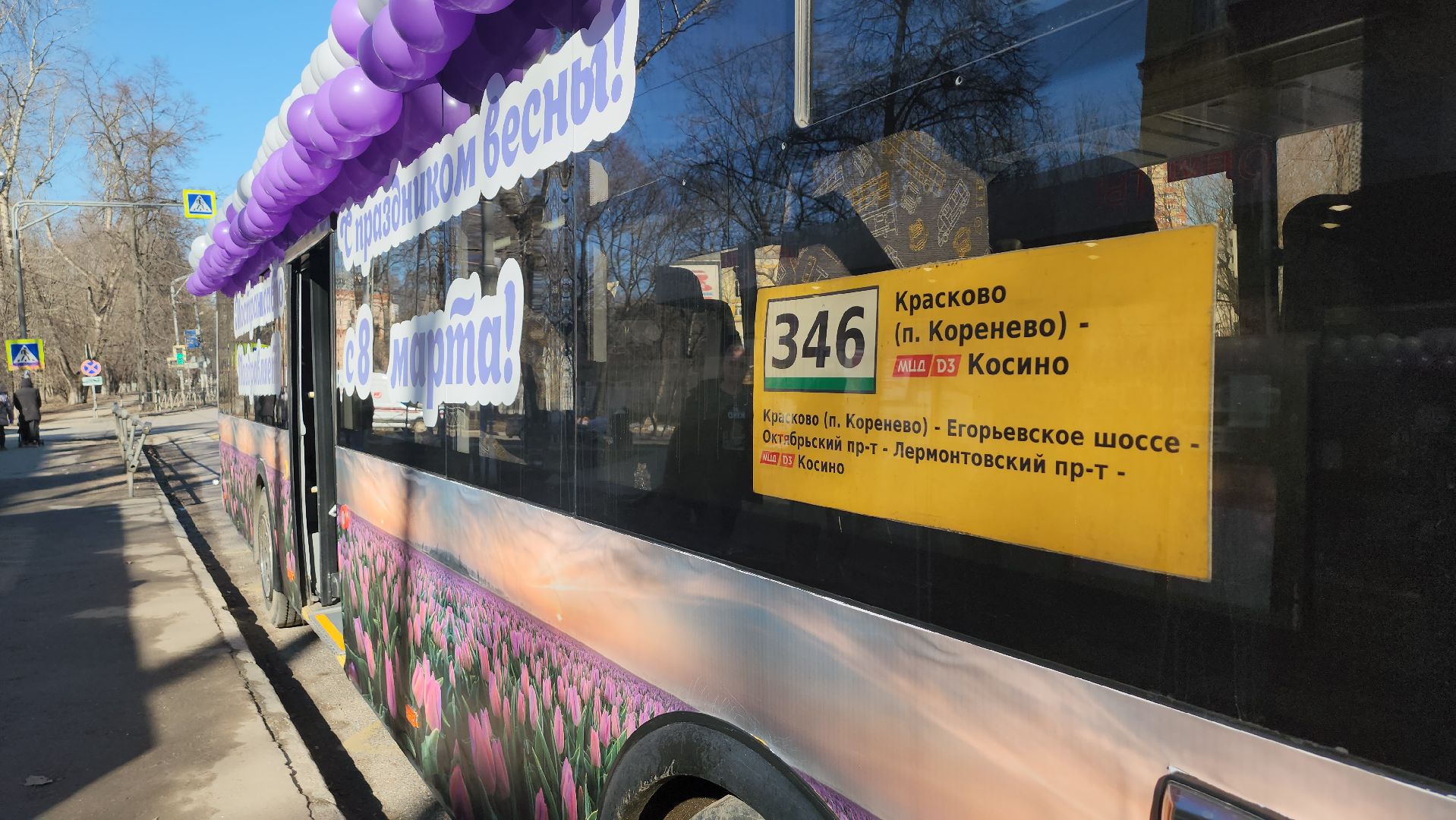 210 шаров и 18 часов работы: водитель «Мострансавто» на праздничном автобусе поднял настроение жителям Люберец 8 марта