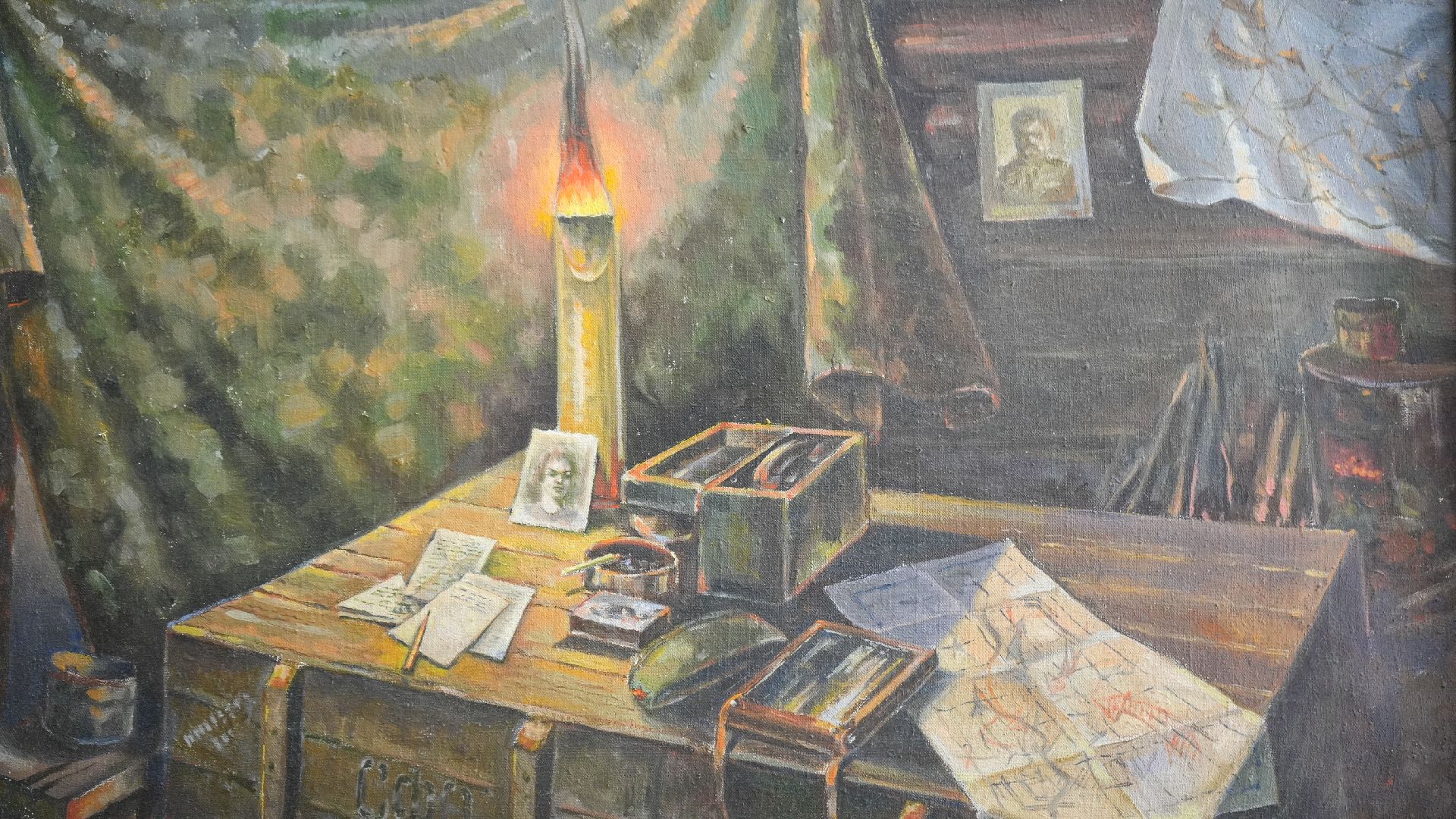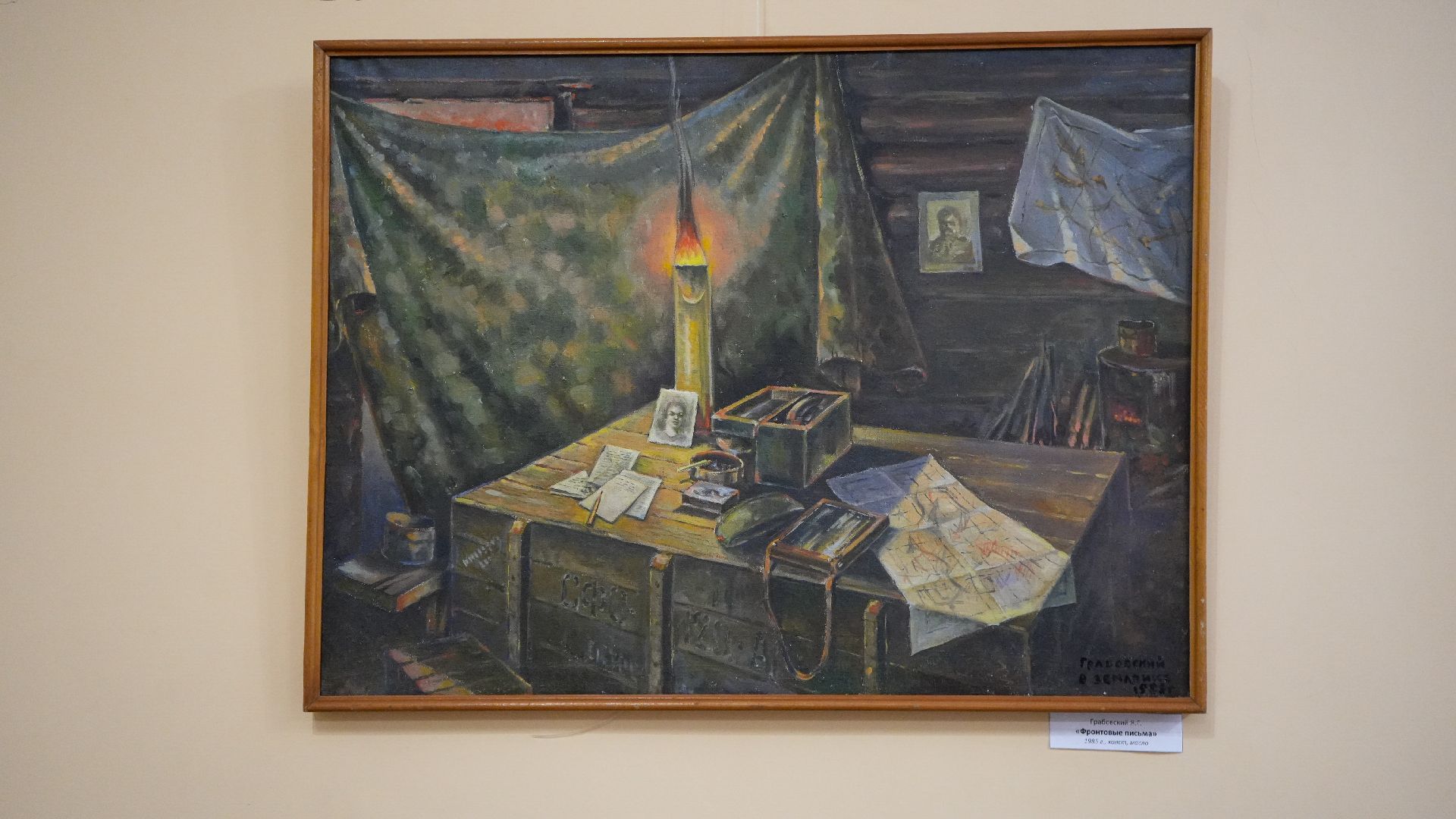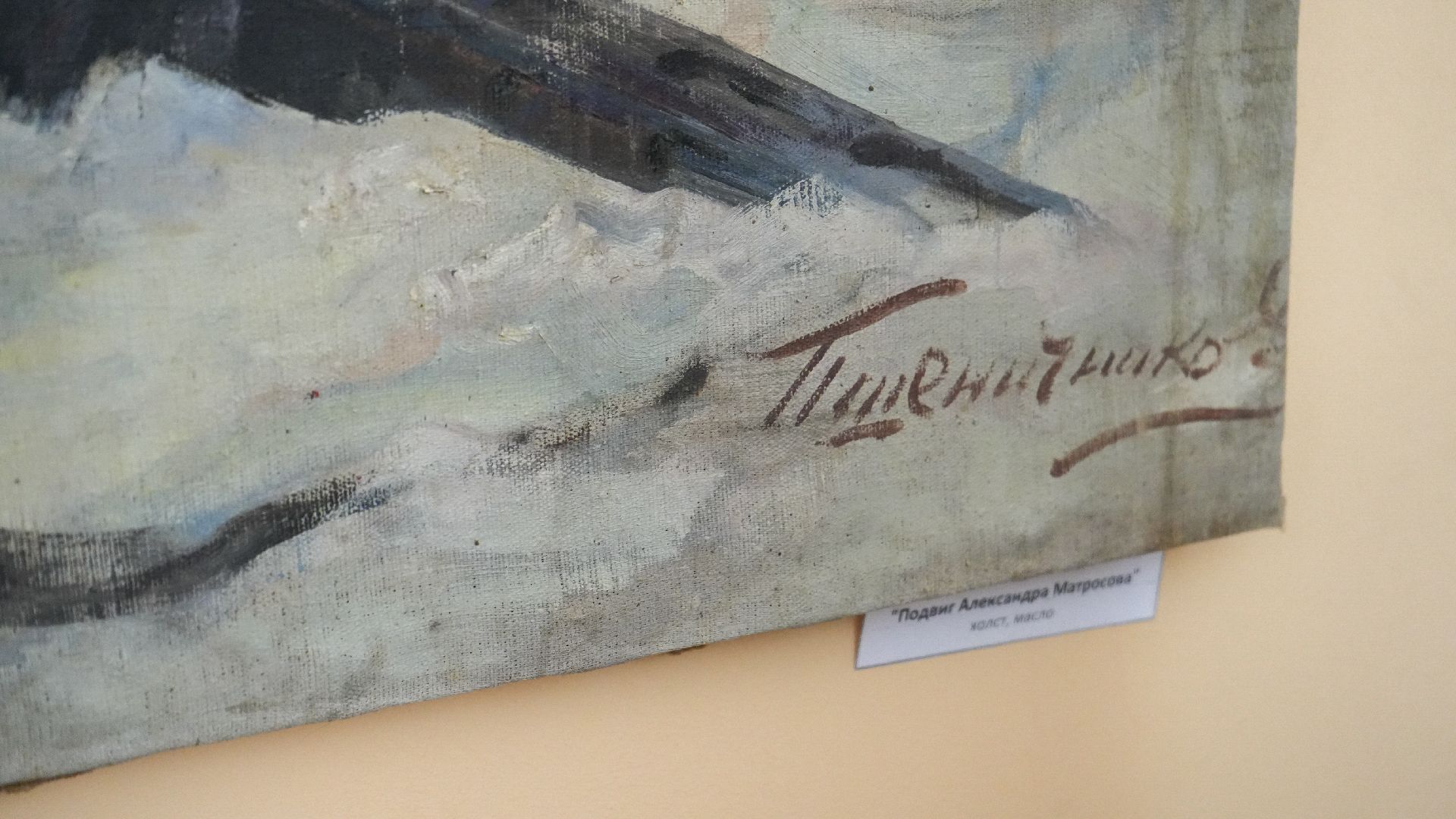 На полотнах — сцены военного быта, яркие и пронзительные. Центральное место в экспозиции занимает неизвестная широкой публике работа Василия Пшеничникова, представителя Санкт-Петербургской школы живописи — «Подвиг Александра Матросова».