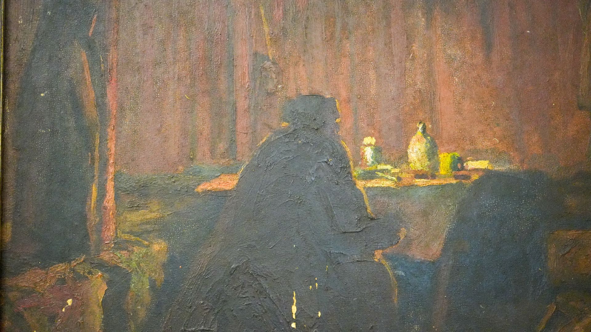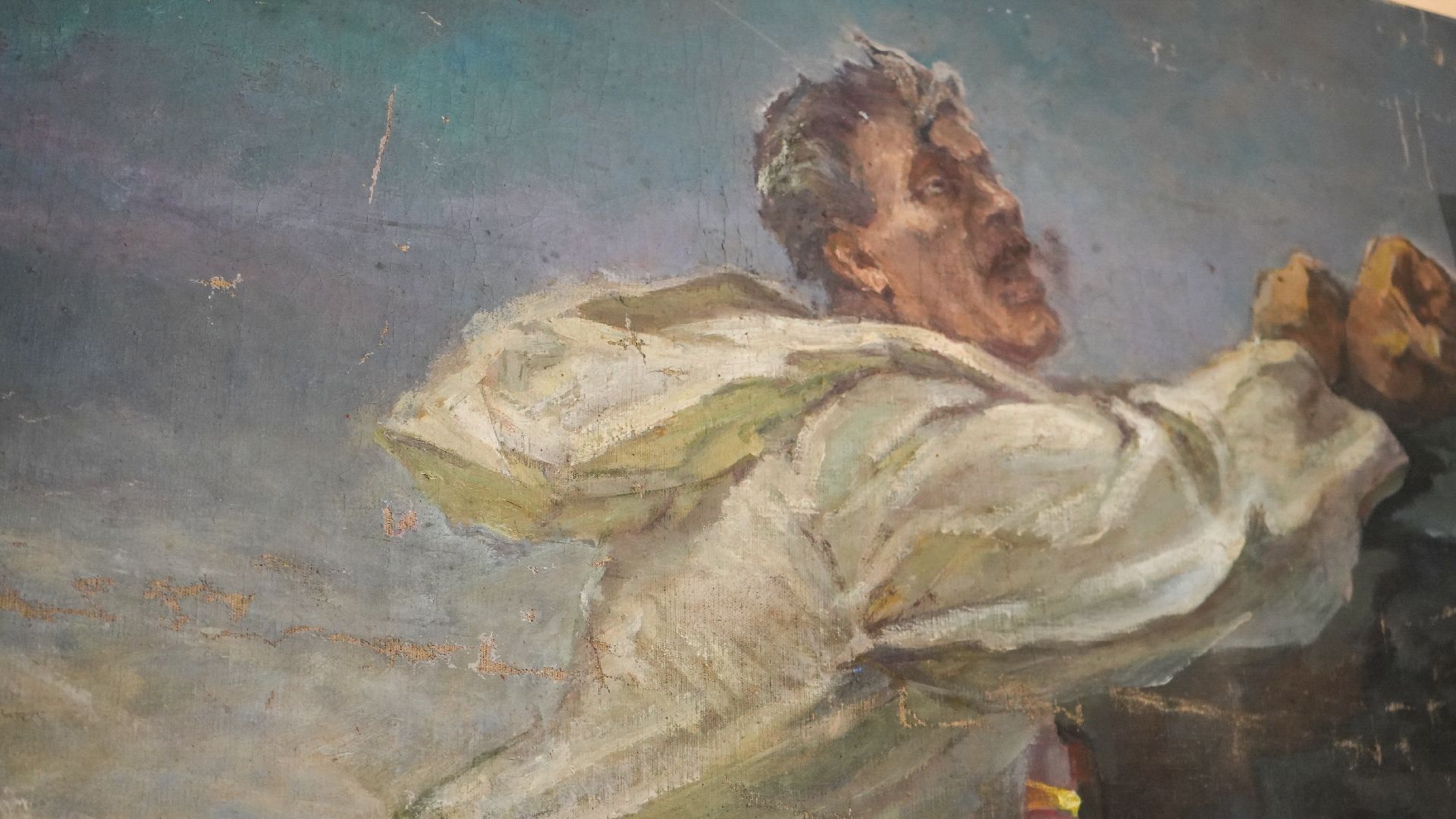 «Это полотно попало к нам в 2015 году. Его автор — участник двух мировых войн. У него много работ, часть представлена в Третьяковской галерее, а также других музеях и частных коллекциях», — сказала Елена Егорова.