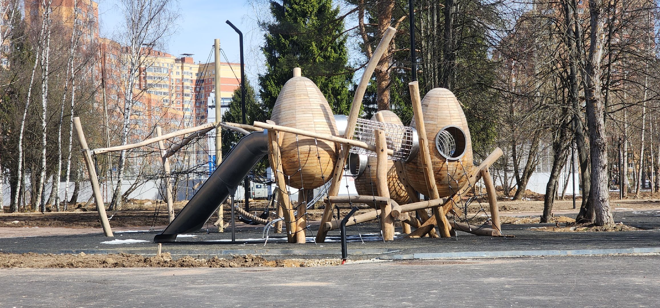С приходом тепла в лесопарке Супонево приступили к строительству. Рабочие укладывают мягкое резиновое покрытие на детских площадках. И асфальт у центрального входа в парк.