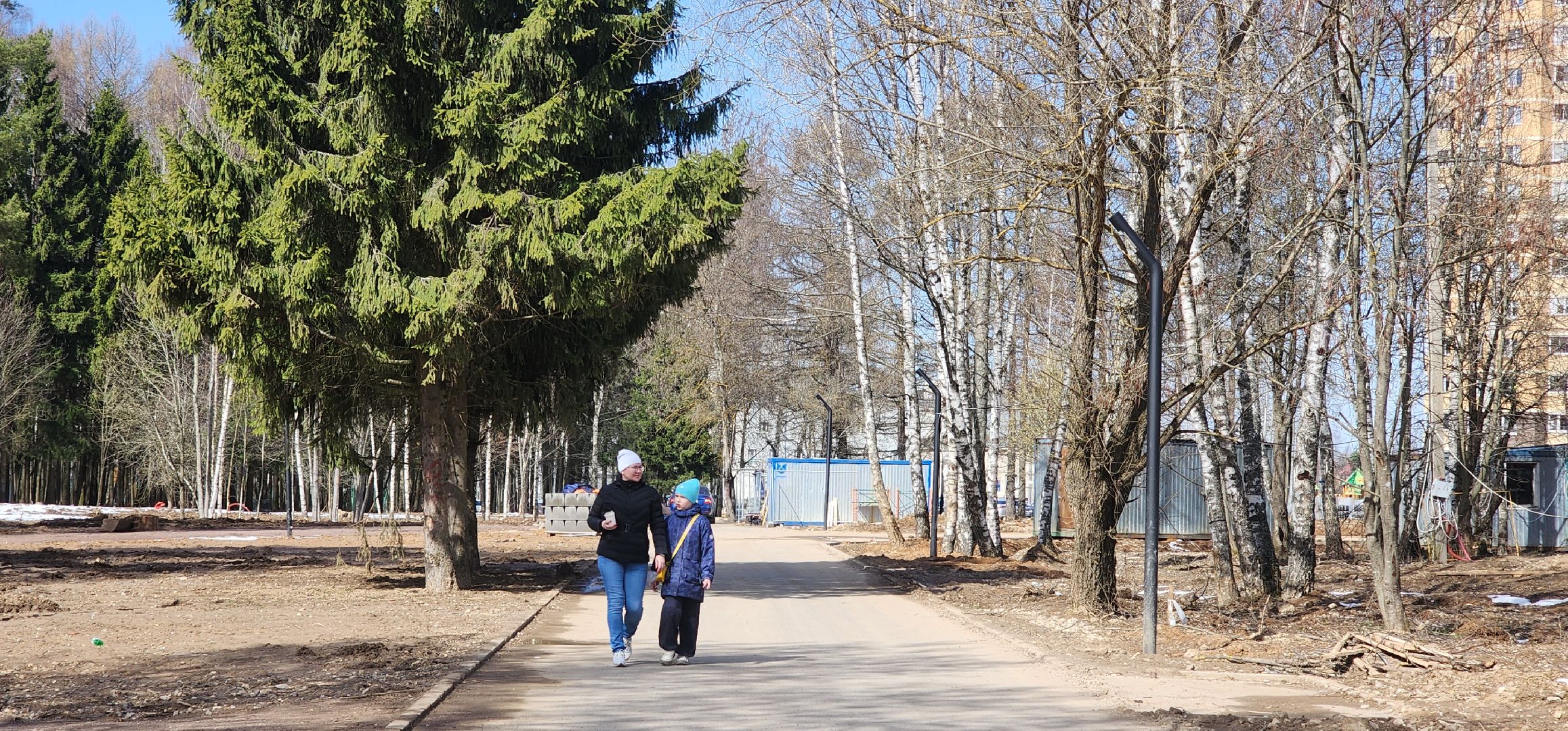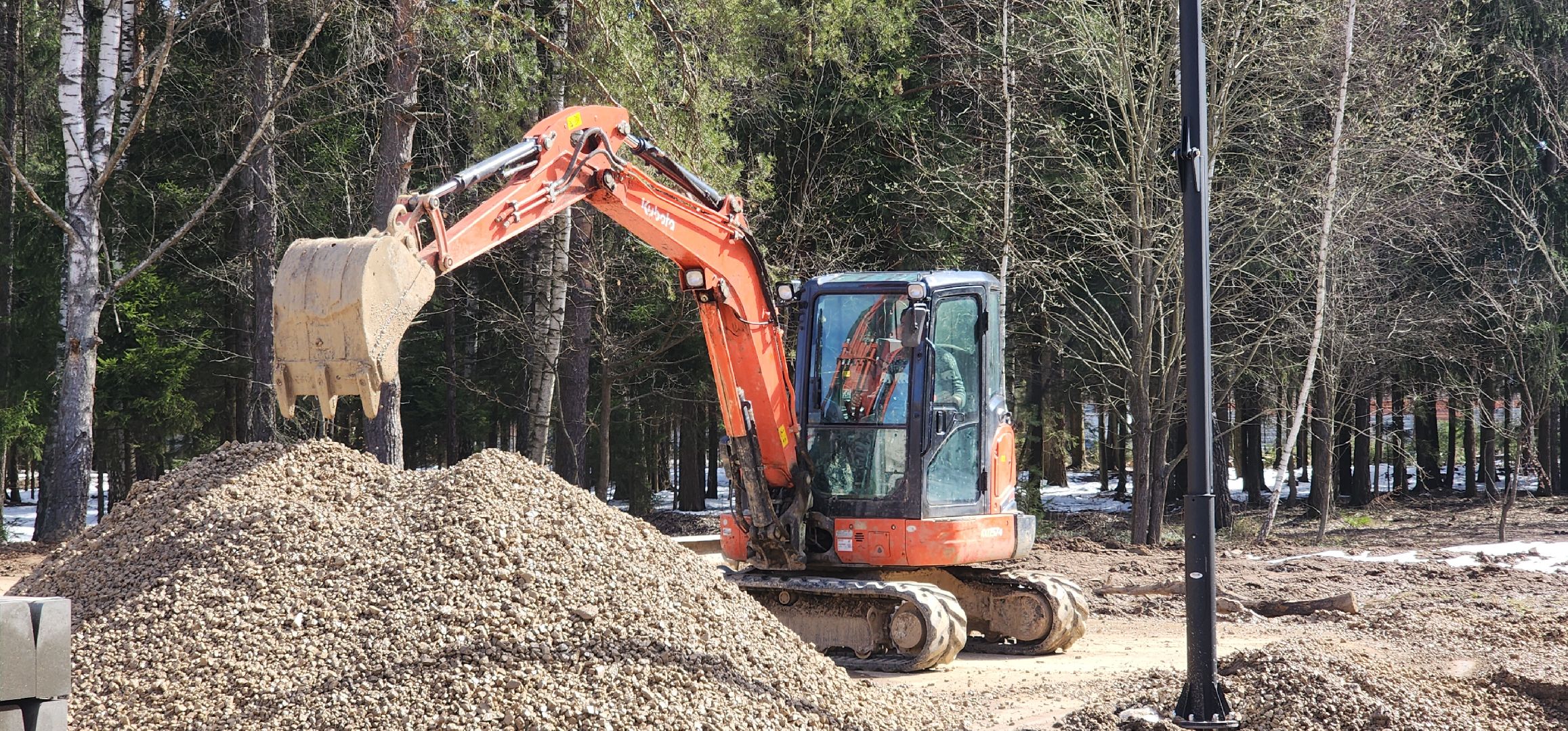 В лесопарке Супонево в Звенигороде с приходом тепла приступили к строительству сцены и работам на центральной аллее