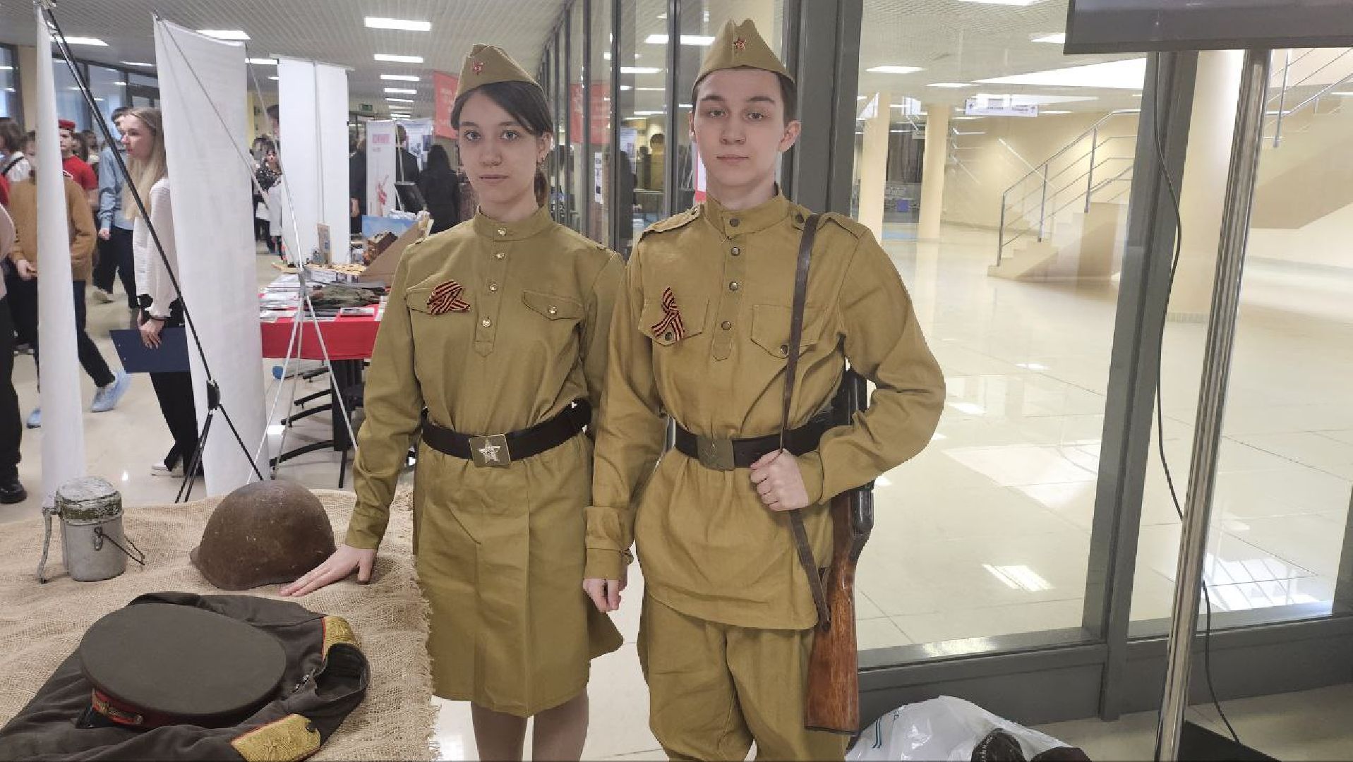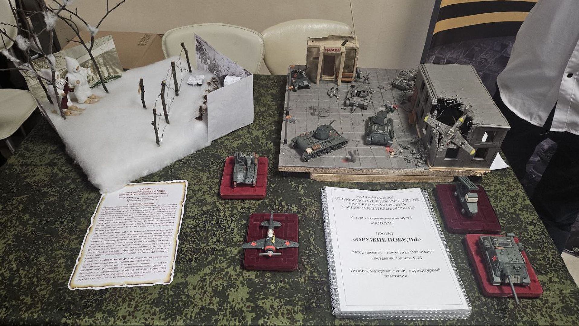 Музеи боевой славы существуют почти в каждой школе городского округа. Они начали формироваться ещё в 70–80-х годах XX века при участии ветеранов и их родственников, которые приносили в школы экспонаты. На выставке можно увидеть фотографии, каски, военную форму, патефон, лопаты и другие предметы времён Великой Отечественной войны. Особый интерес вызвали диорамы, созданные самими учениками.