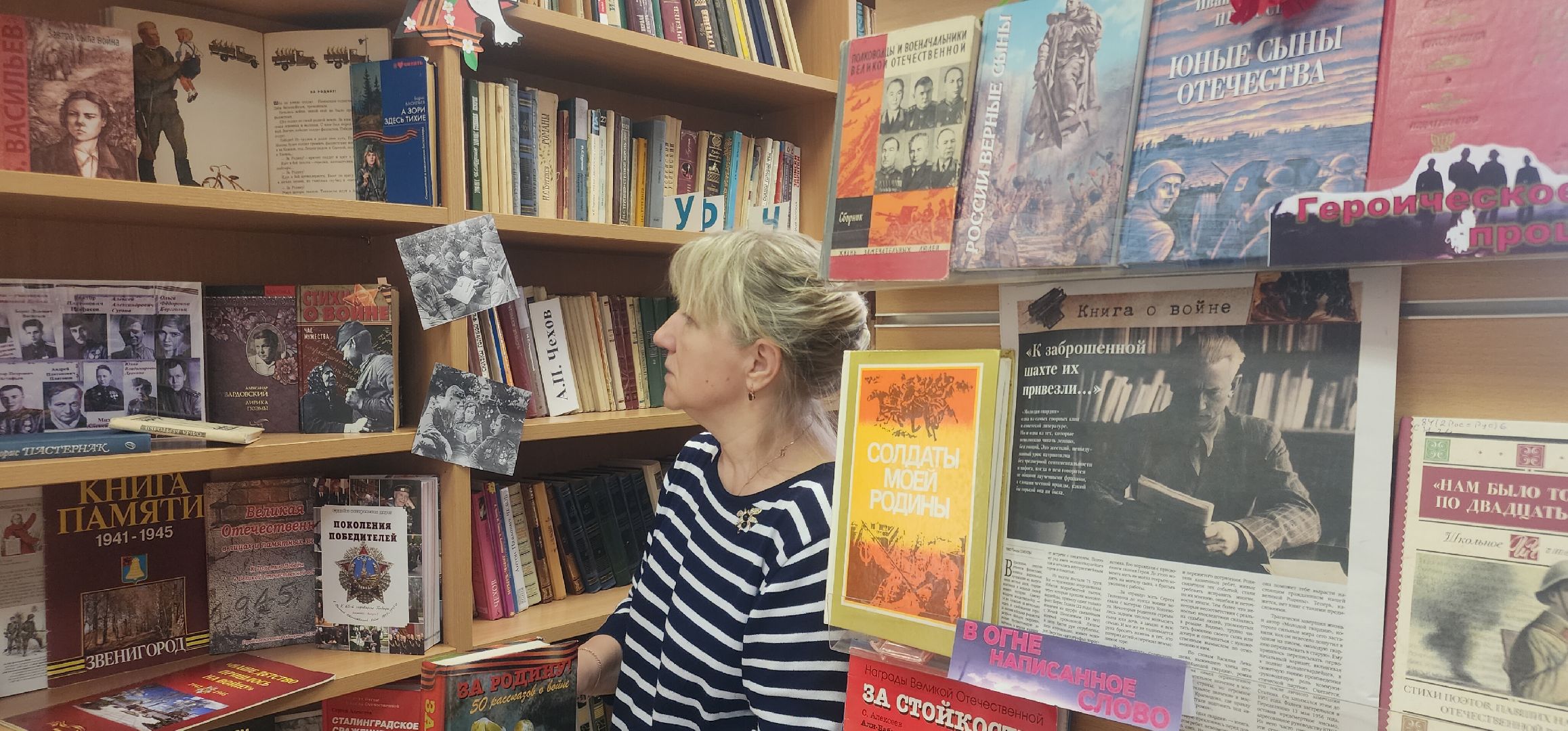 В детской библиотеке также работает книжная выставка в честь Дня Победы. В подборке литературы есть брошюра «Наше детство пришлось на войну». В ней собраны воспоминания жителей Звенигорода и его окрестностей о событиях 1941 года.