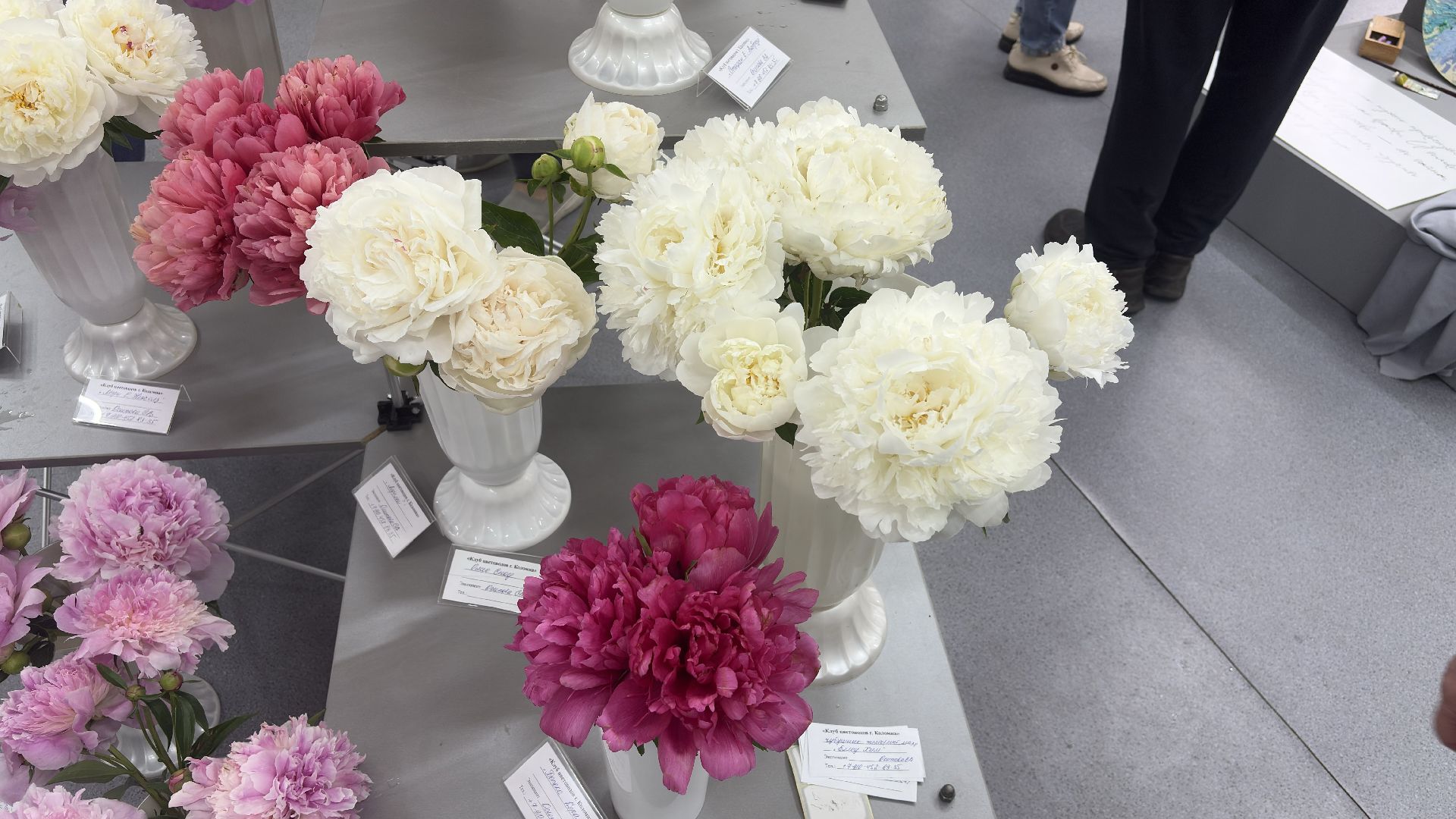 На выставке всё действительно цвело. Сотни сортов пионов и ирисов — от жемчужных до винных оттенков. Цветы здесь не просто стояли в вазах. Простые дачные сорта и редкие гибриды соседствовали друг с другом в полной гармонии, наполняя залы ароматом и красками.