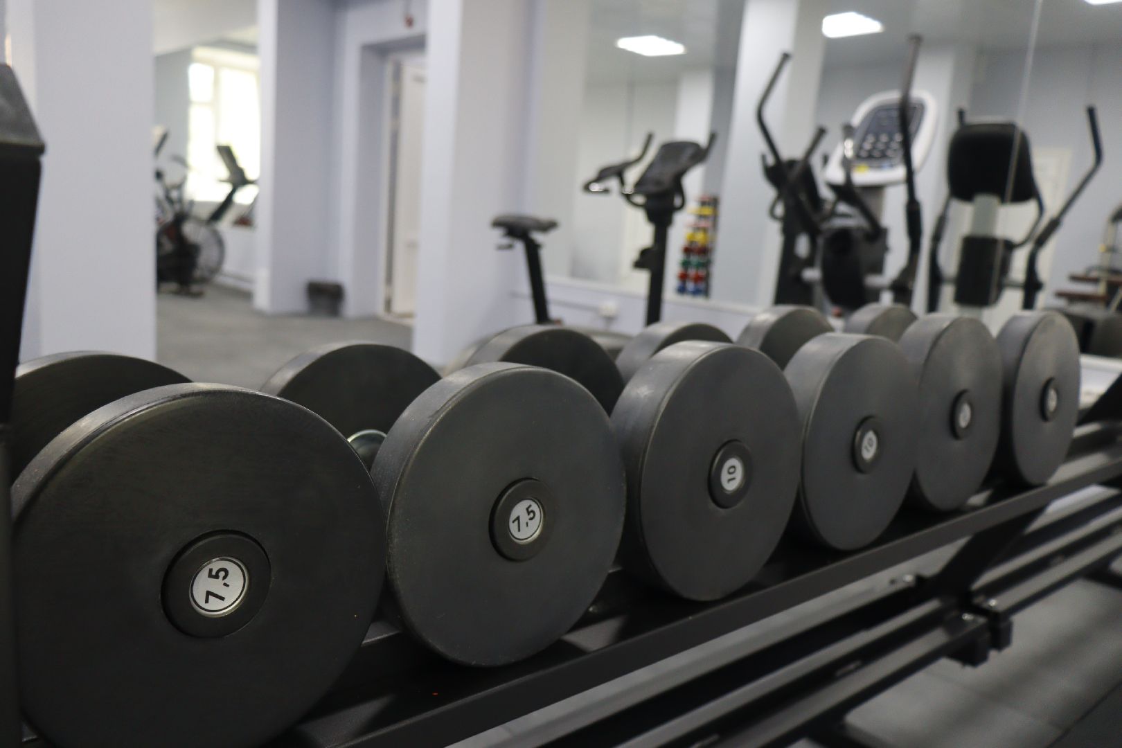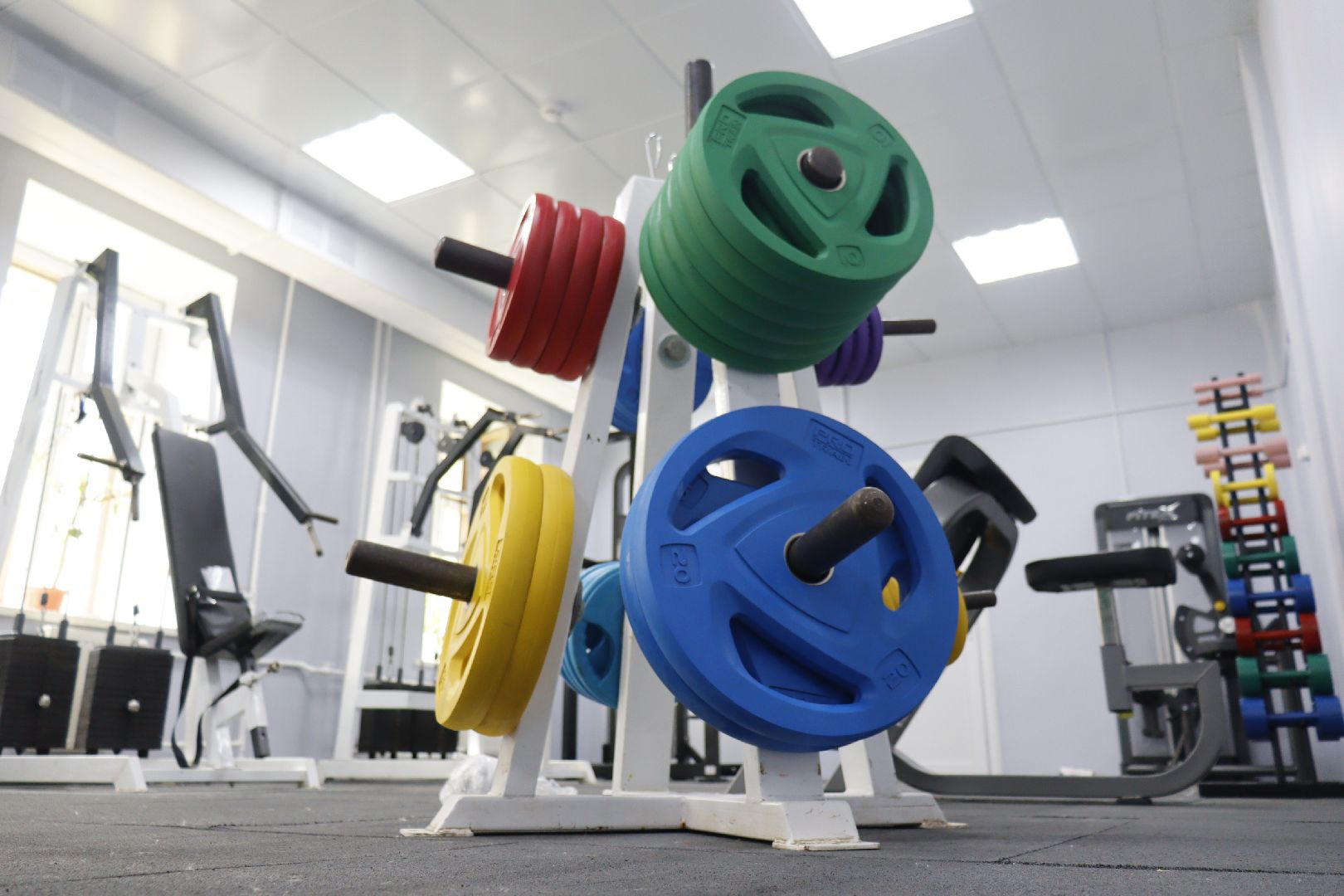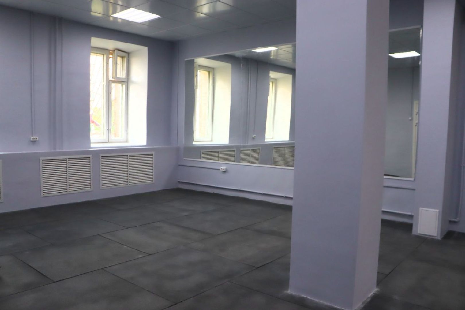 Работы в двух залах, душевой и женской раздевалке на сегодняшний день уже завершены. Строители здесь обновили стены, сделали качественный потолочный дизайн, покрыли пол специальным резиновым покрытием, обеспечивающим безопасность занятий спортом, и в одном из залов установили большие зеркала для контроля техники упражнений.