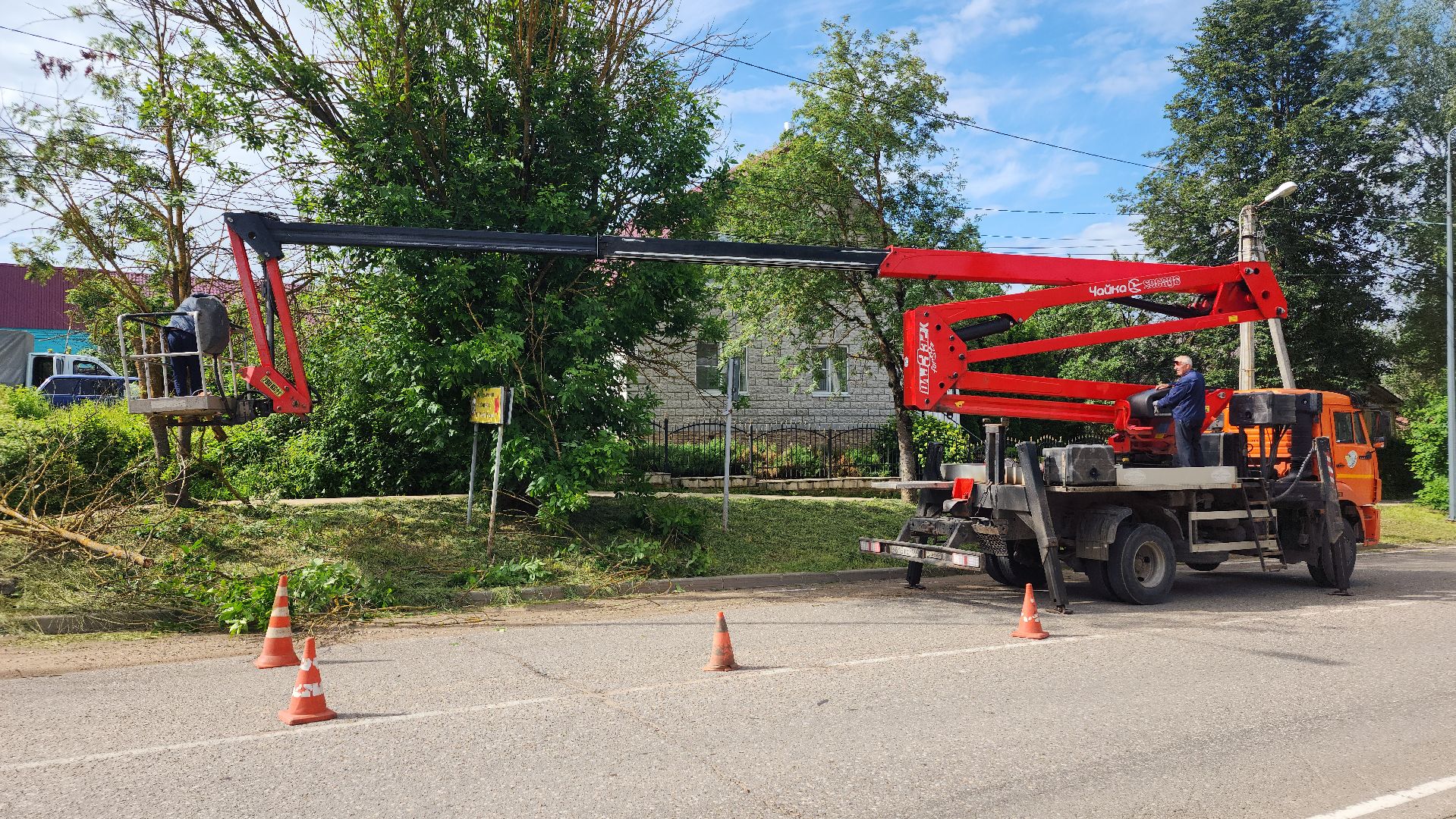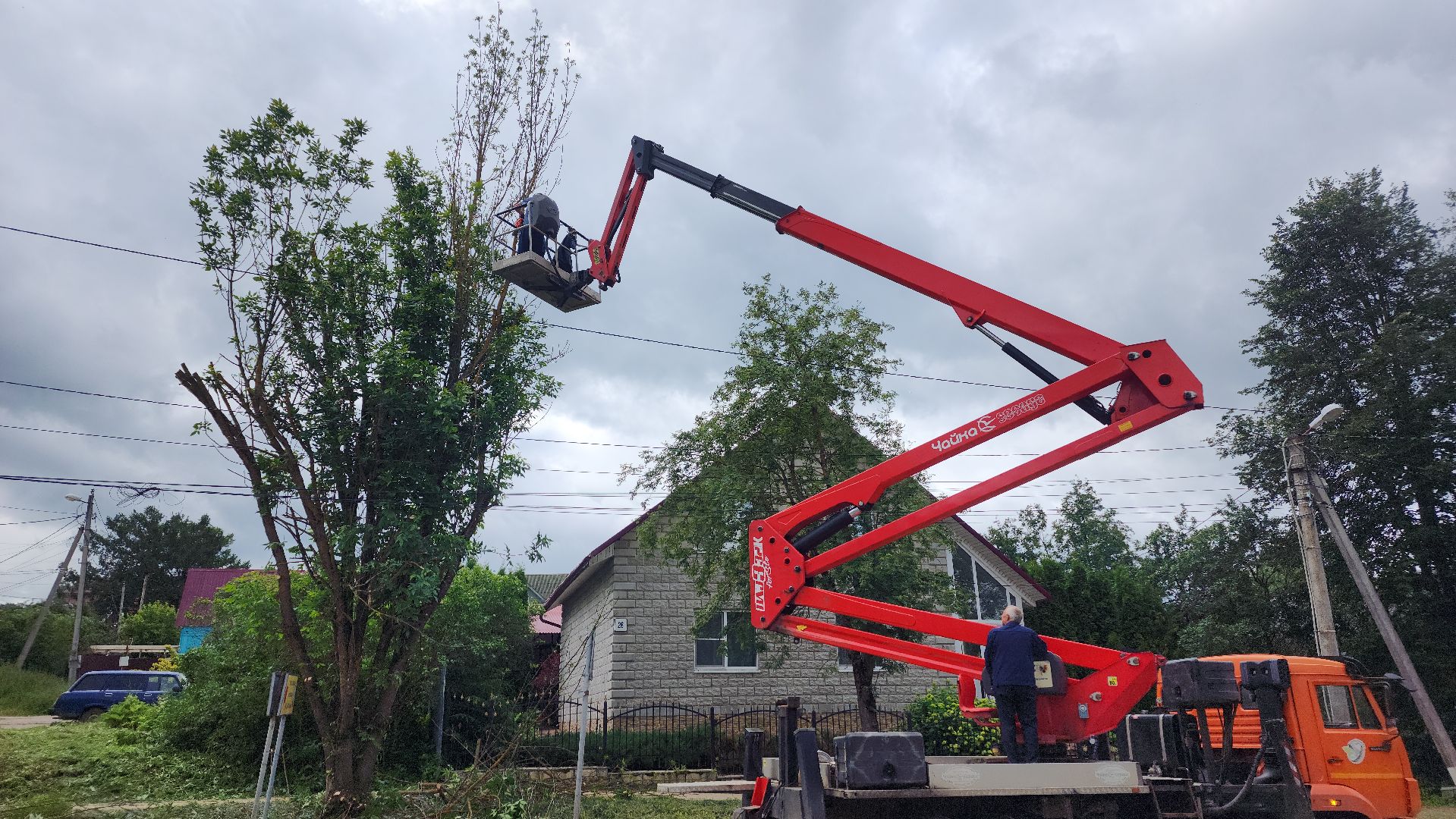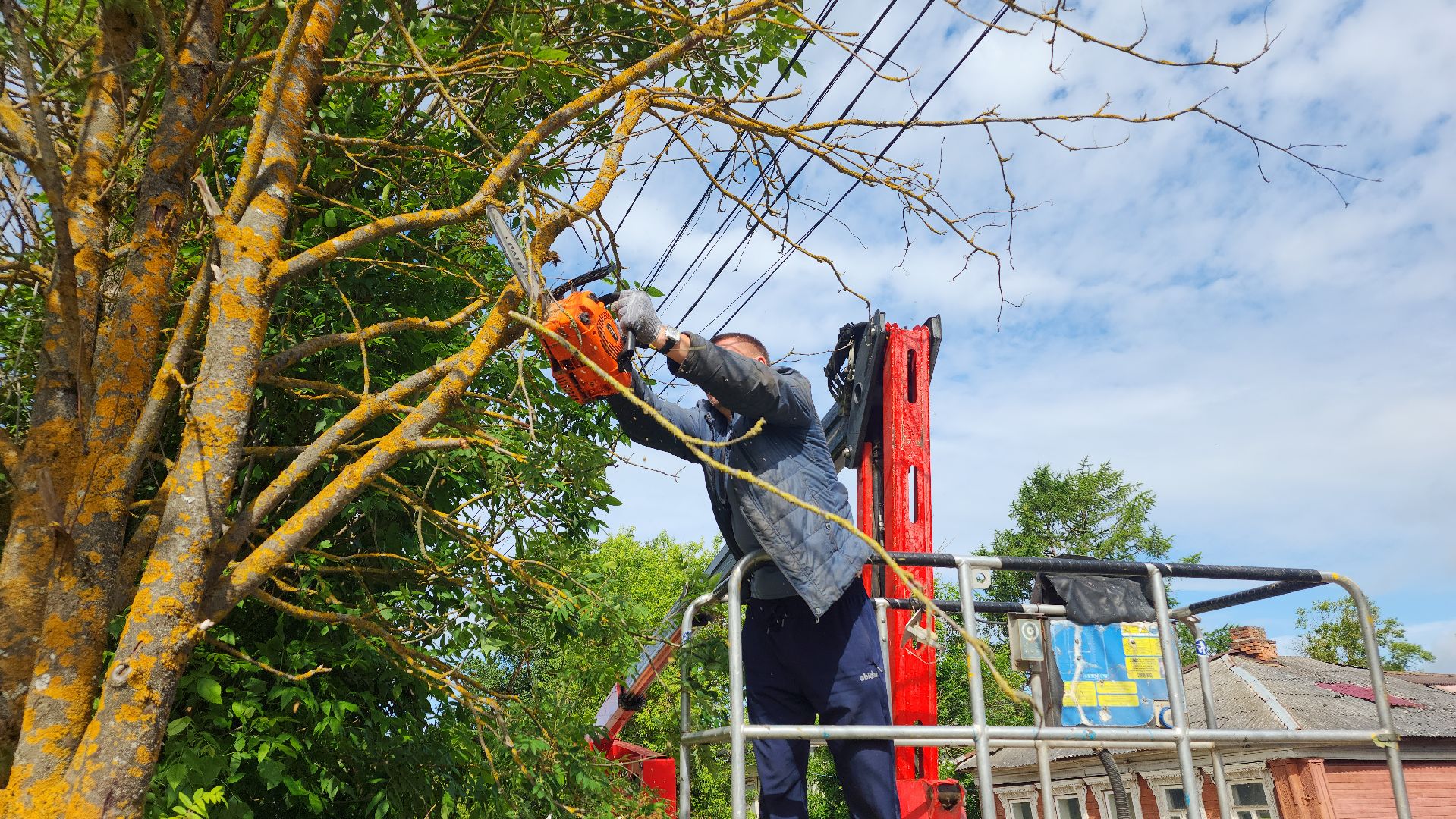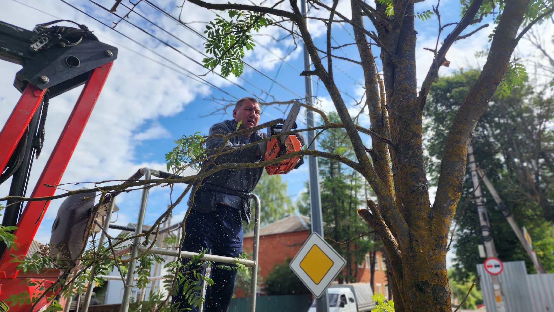 Сотрудники волоколамского Центра развития «Городское хозяйство» скосили траву на пригорке возле перекрёстка и опилили дерево тут же. В первую очередь убрали сухие ветви, после чего убрали те части кроны, что касались линий электропередач и загораживали дорожные знаки.