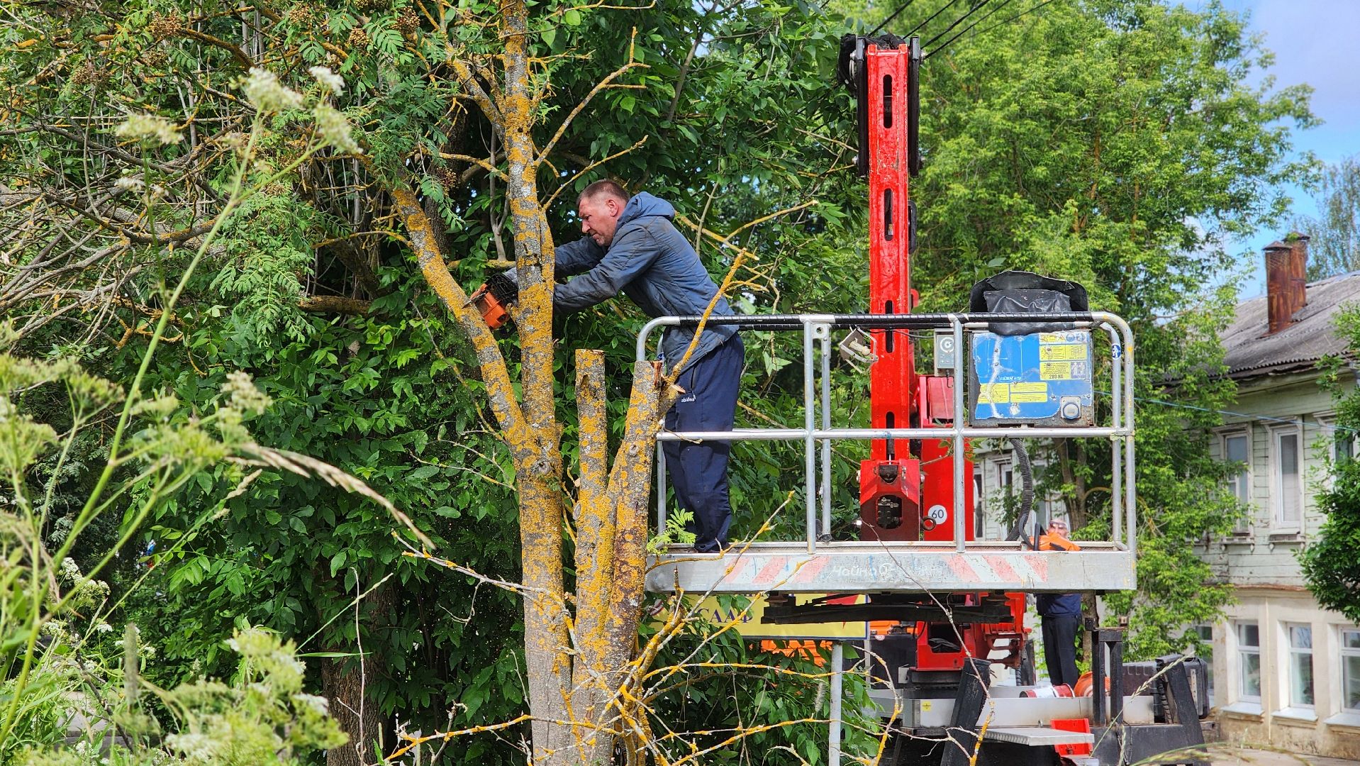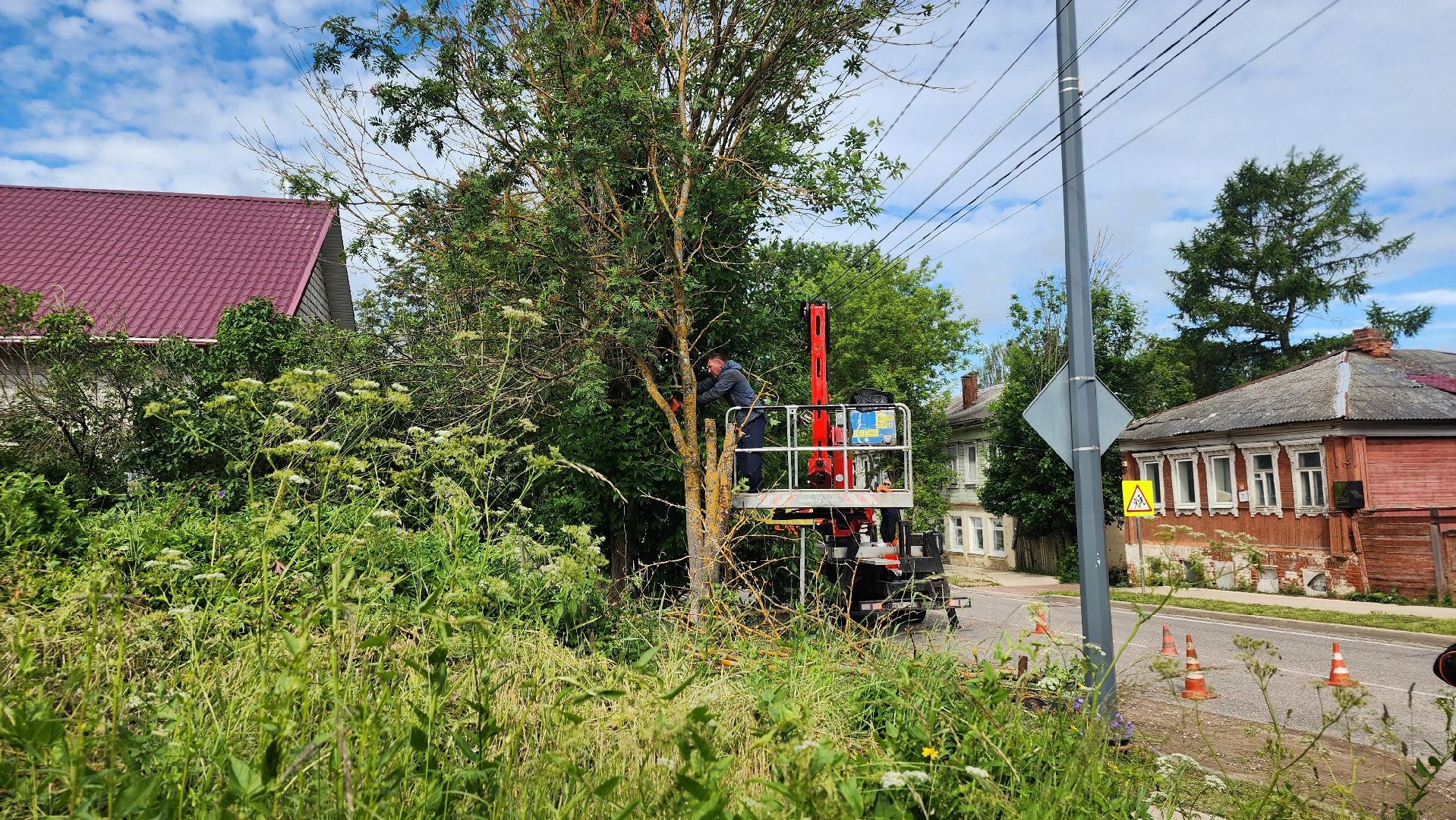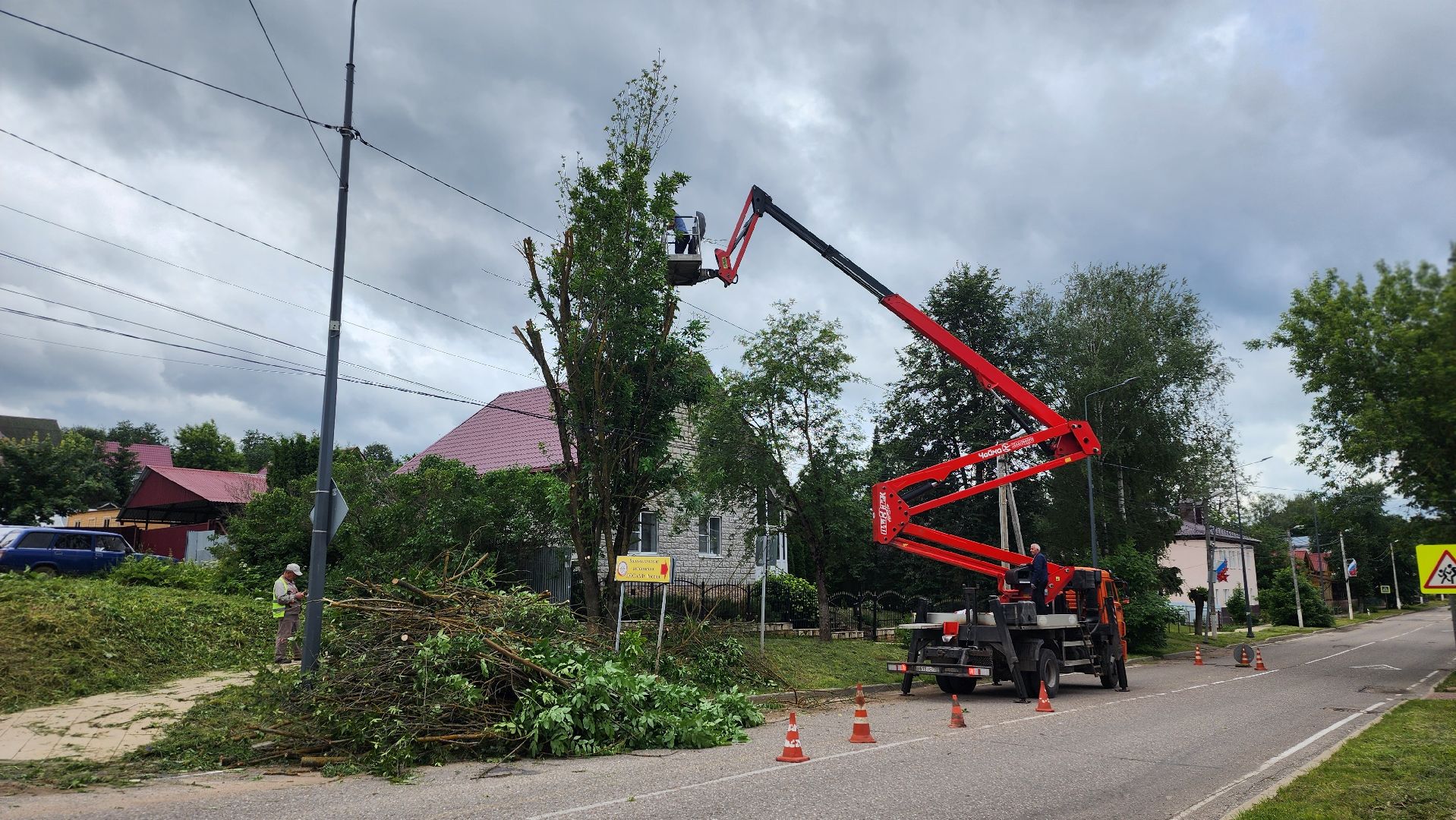 Сотрудники волоколамского Центра развития «Городское хозяйство» скосили траву на пригорке возле перекрёстка и опилили дерево тут же. В первую очередь убрали сухие ветви, после чего убрали те части кроны, что касались линий электропередач и загораживали дорожные знаки.