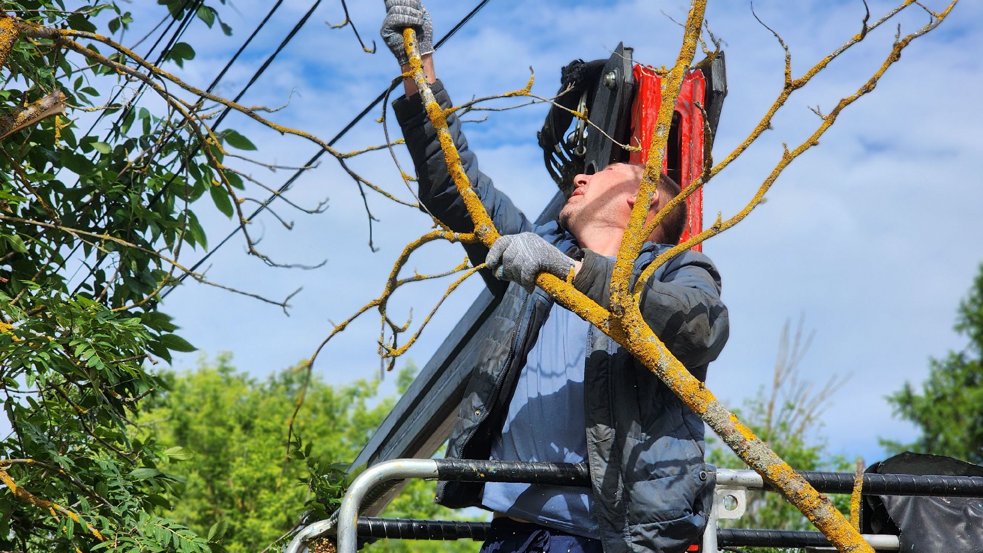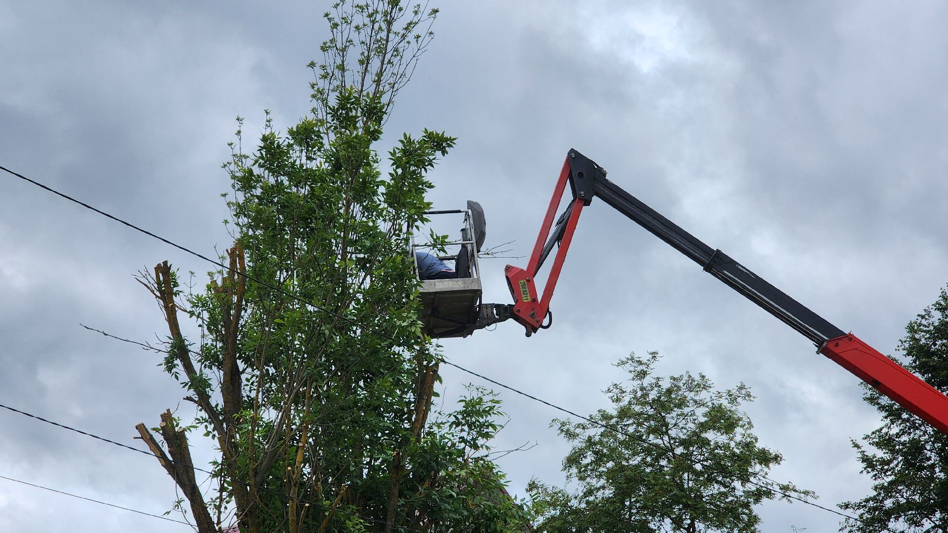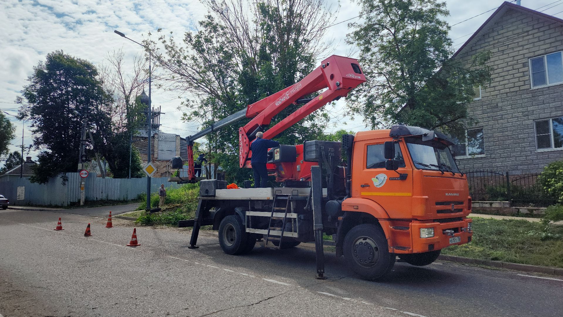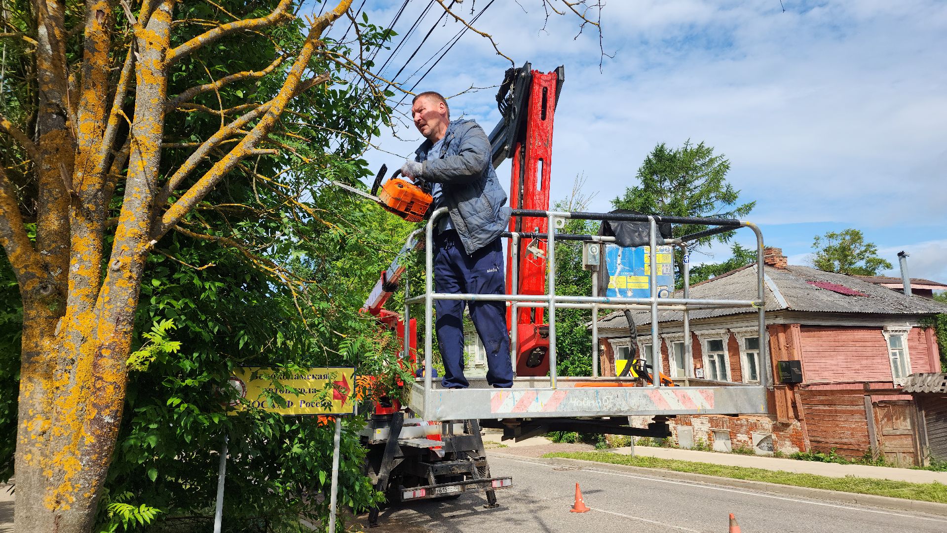 Сотрудники волоколамского Центра развития «Городское хозяйство» скосили траву на пригорке возле перекрёстка и опилили дерево тут же. В первую очередь убрали сухие ветви, после чего убрали те части кроны, что касались линий электропередач и загораживали дорожные знаки.