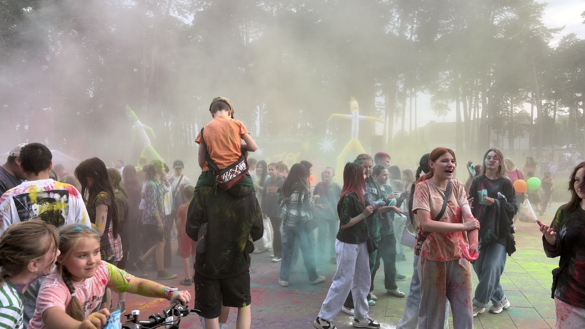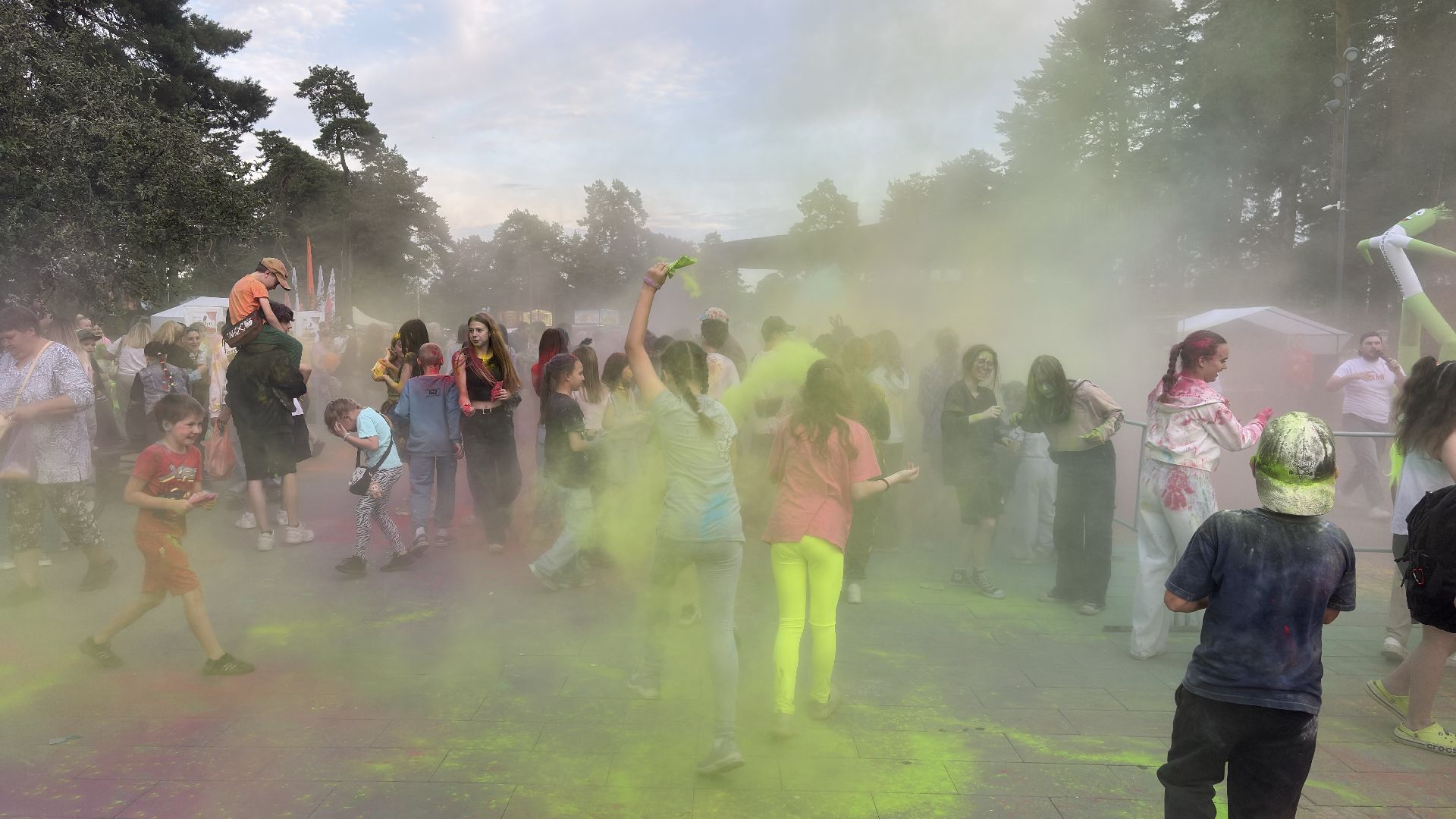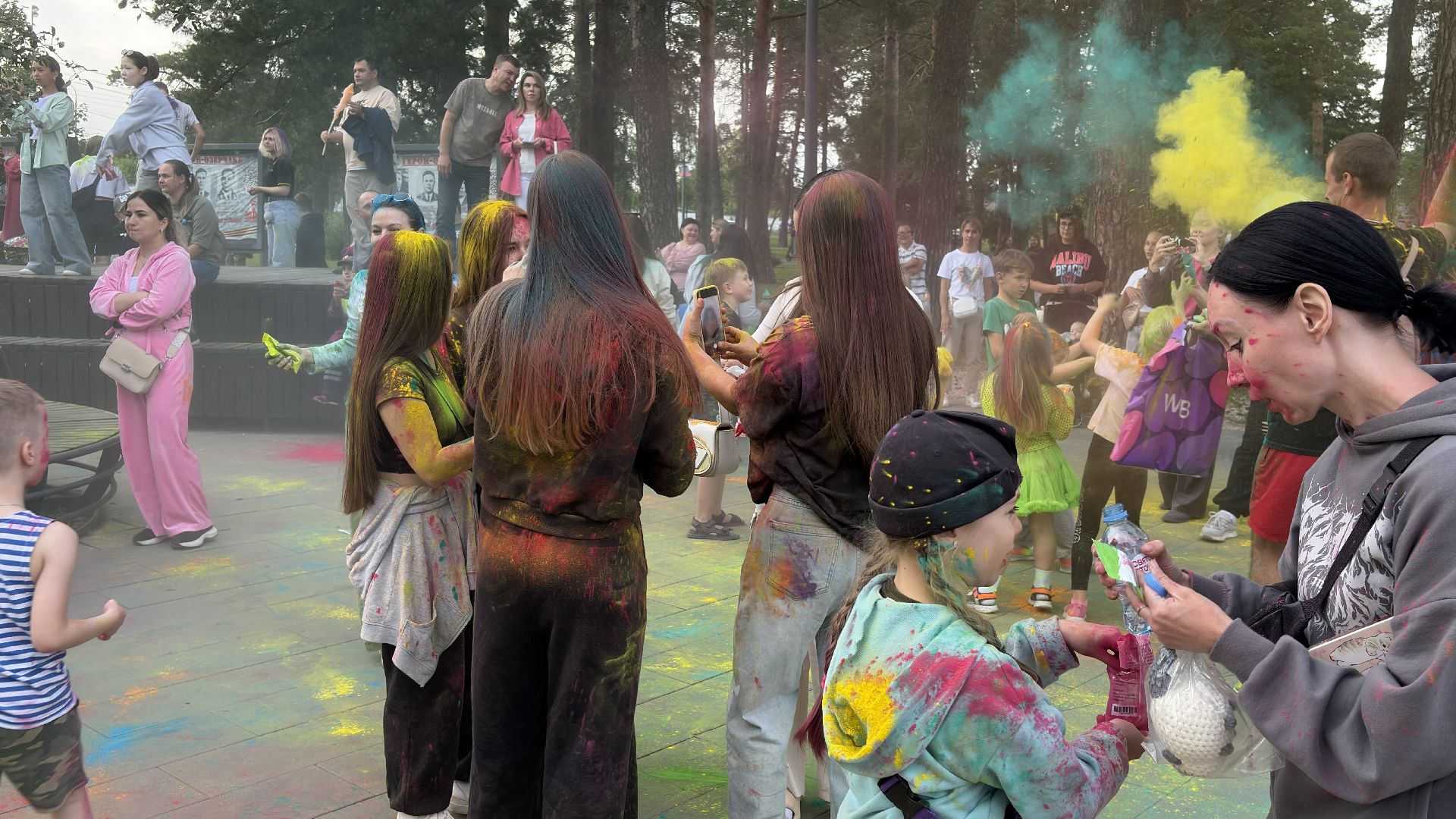 Одна из самых ярких частей праздника Дня молодёжи в Сосновом бору собрала настоящую толпу. Фестиваль красок Холи начался у сцены и уже через несколько минут всё пространство вокруг вспыхнуло цветами и музыкой.
