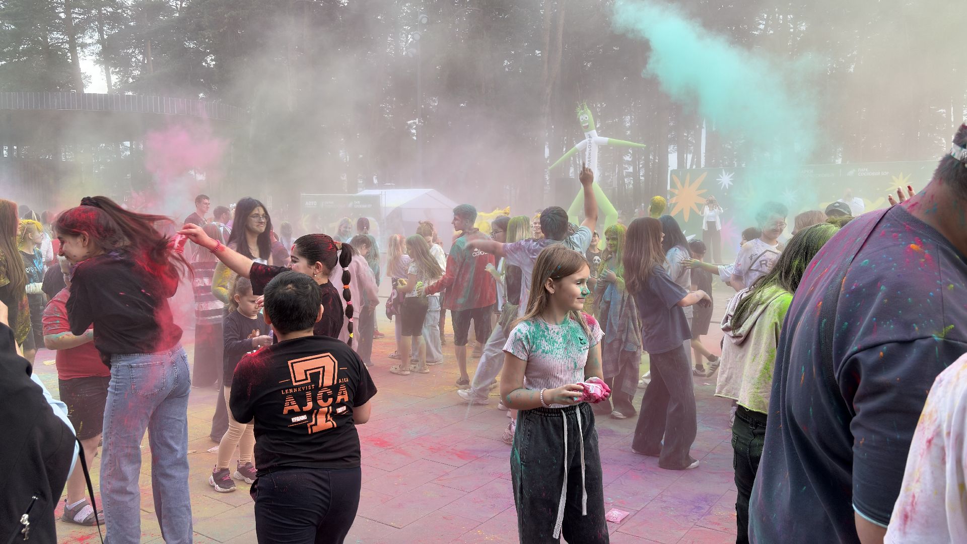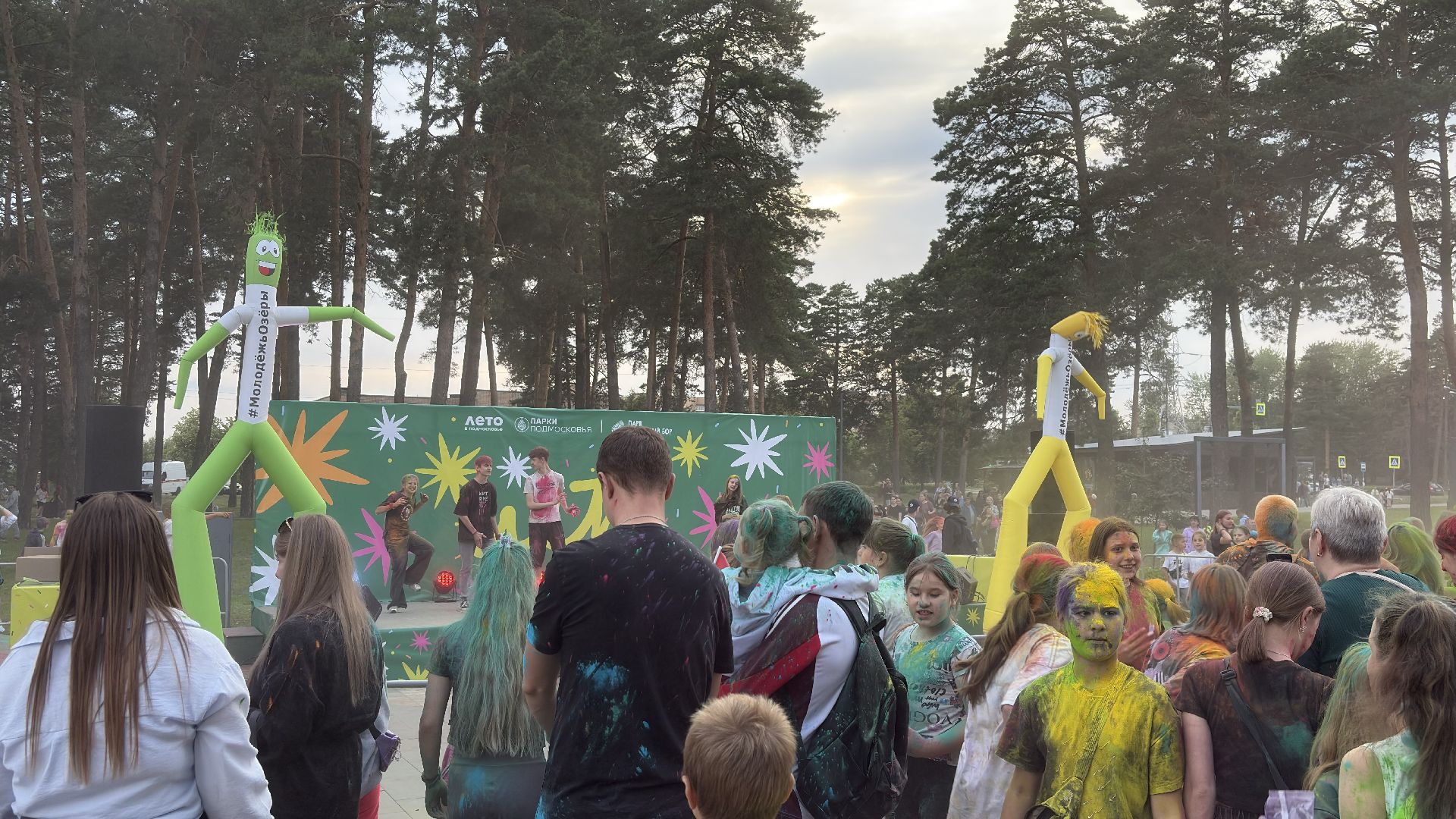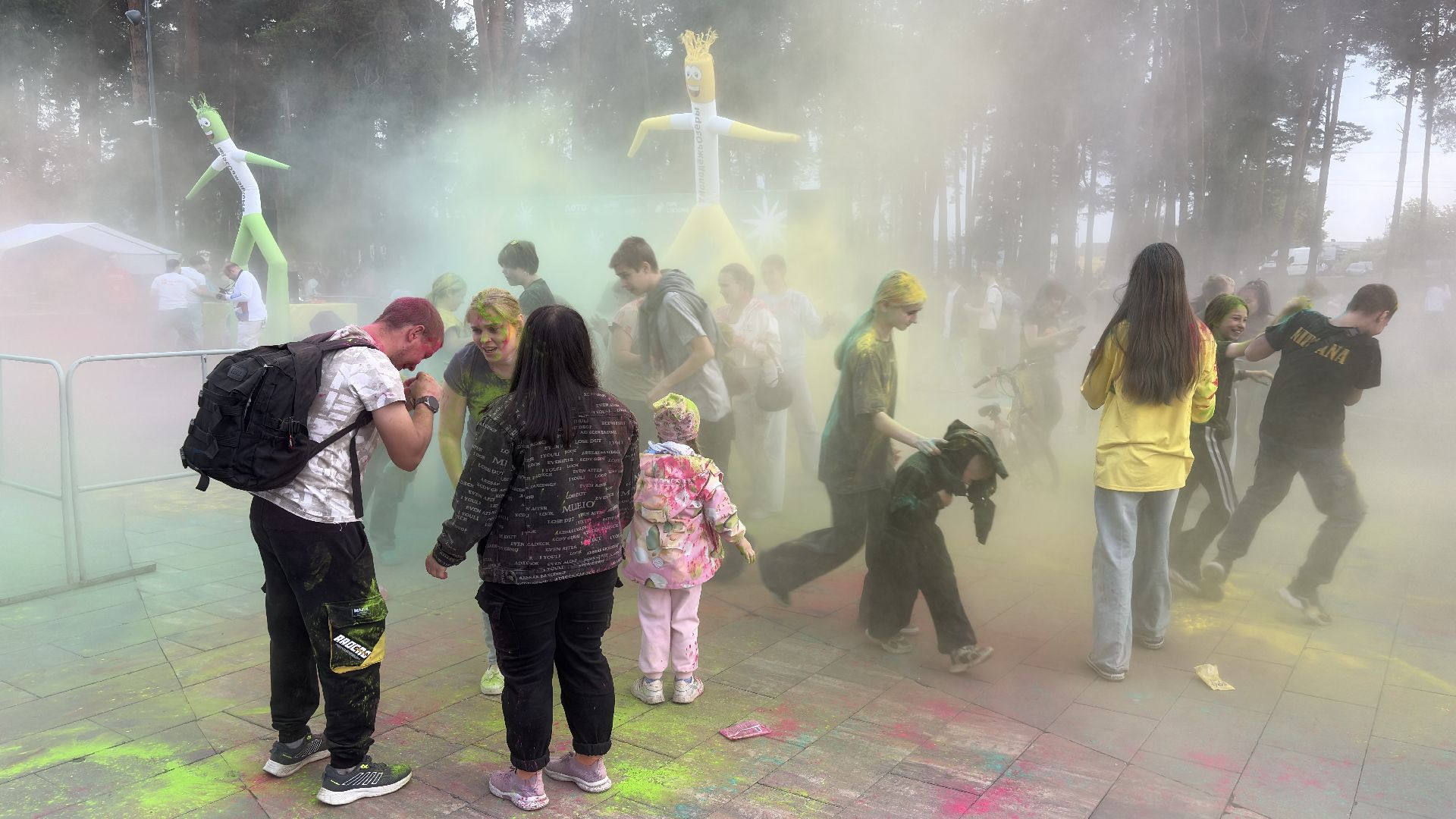 Одна из самых ярких частей праздника Дня молодёжи в Сосновом бору собрала настоящую толпу. Фестиваль красок Холи начался у сцены и уже через несколько минут всё пространство вокруг вспыхнуло цветами и музыкой.