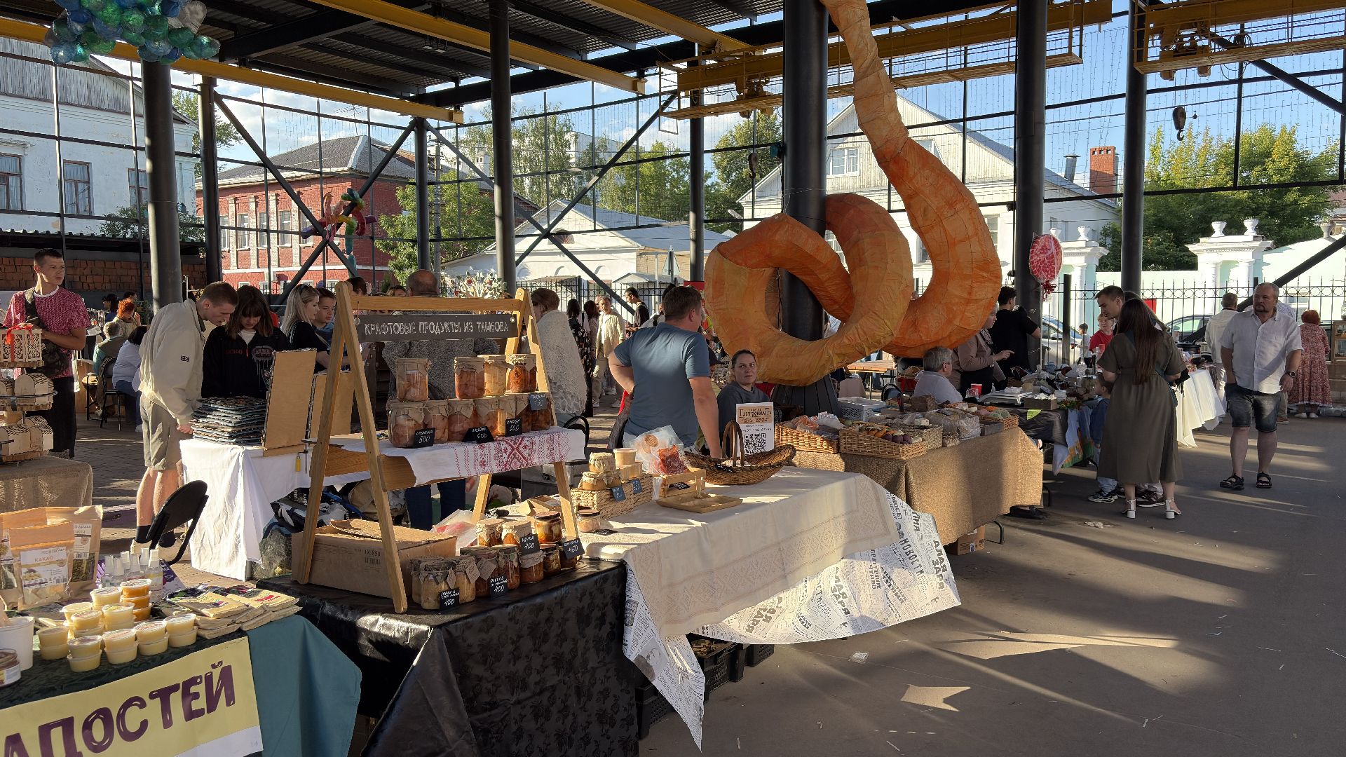 Гастрономическая поляна встречала гостей ароматом свежесваренного плова по авторскому рецепту шеф-повара Дениса Барыкова, клубникой в шоколаде, лимонным тирамису, мёдом и фермерскими продуктами.