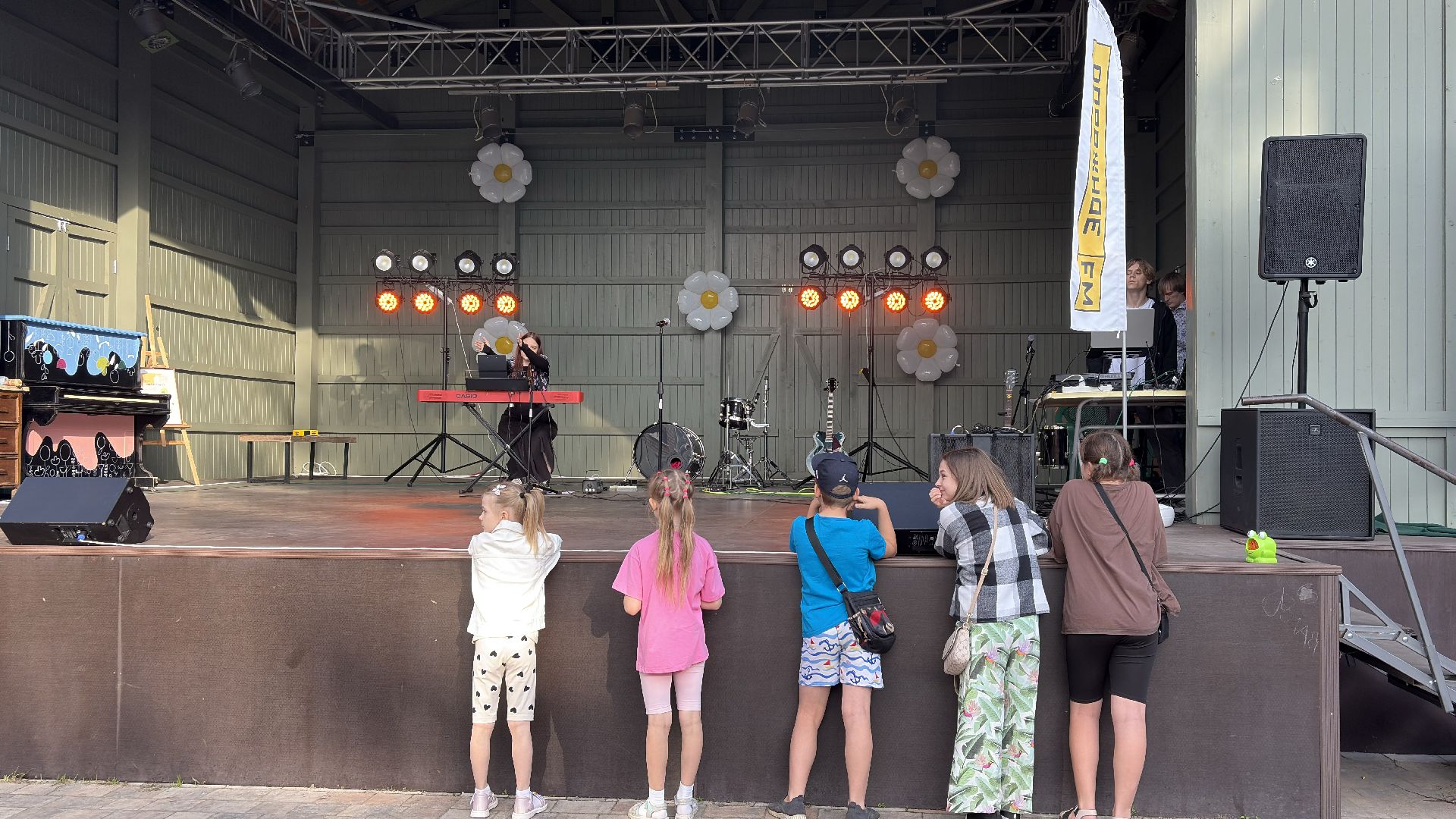 Весь день на музыкальной поляне звучали концерты от гала-программы солистов Детской филармонии до вечернего выступления группы «PartyФон». Сцена сменяла артистов, а зрители с детьми на руках подпёвали любимым мелодиям. После захода солнца праздник продолжился танцами под летний сет DJ Halikov.