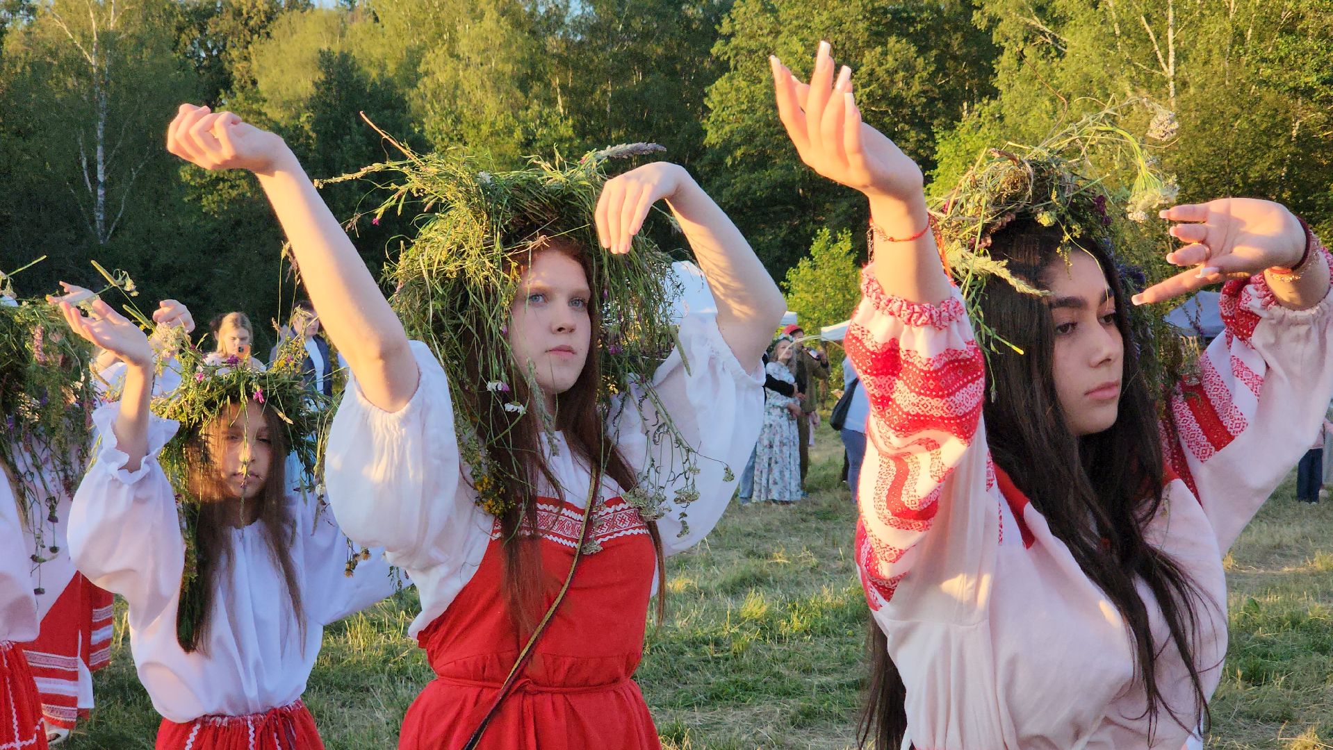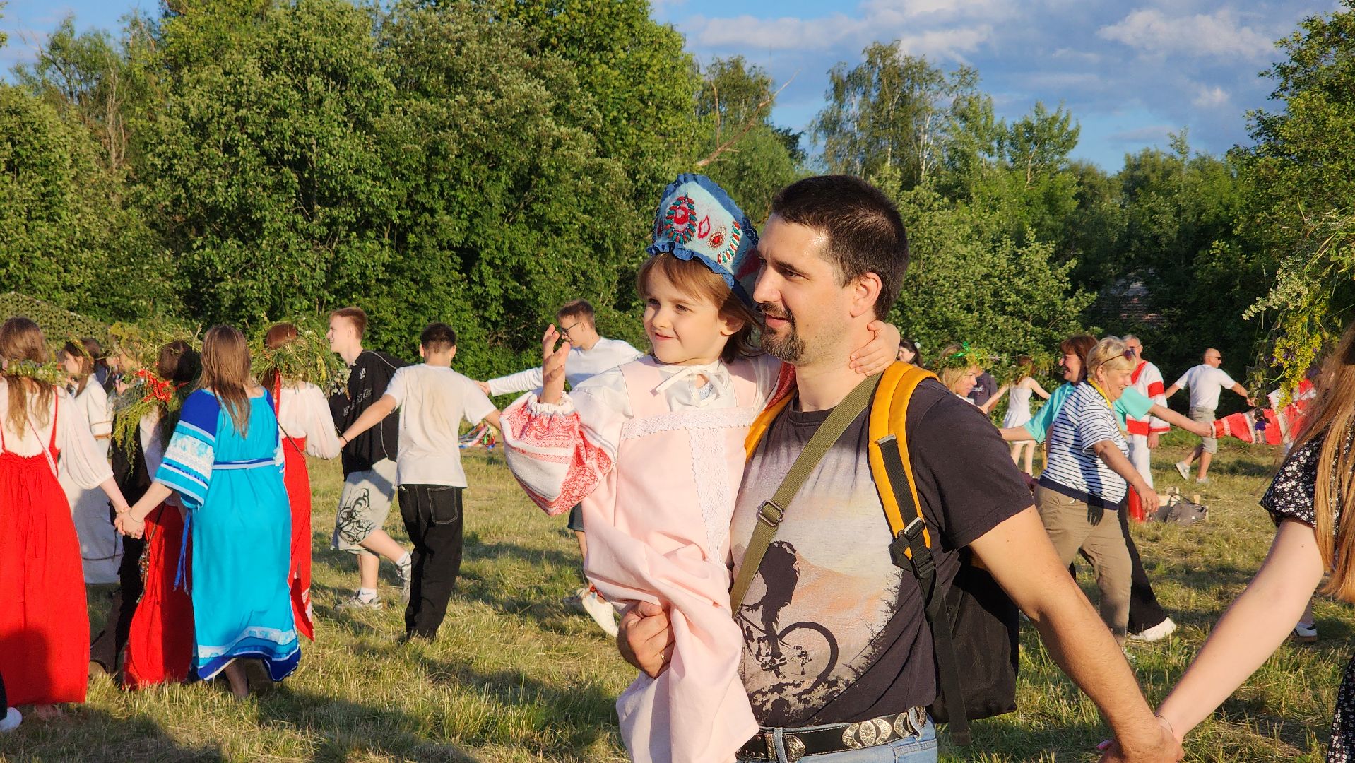 Здесь проводили мастер-классы по изготовлению кукол-оберегов, созданию декора, и, конечно же, плели венки из полевых трав. Хороводы, игры и конкурсы погрузили детей и взрослых в атмосферу народных гуляний старославянского праздника. Многие из них были одеты в национальные костюмы.