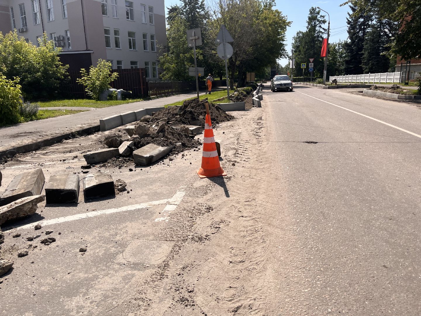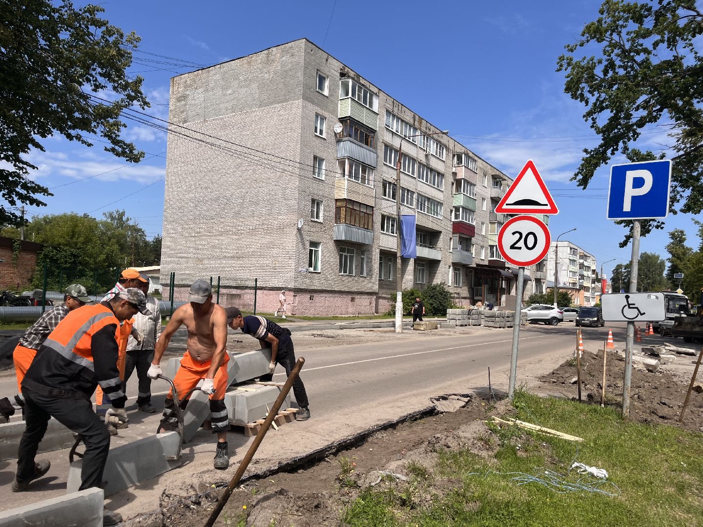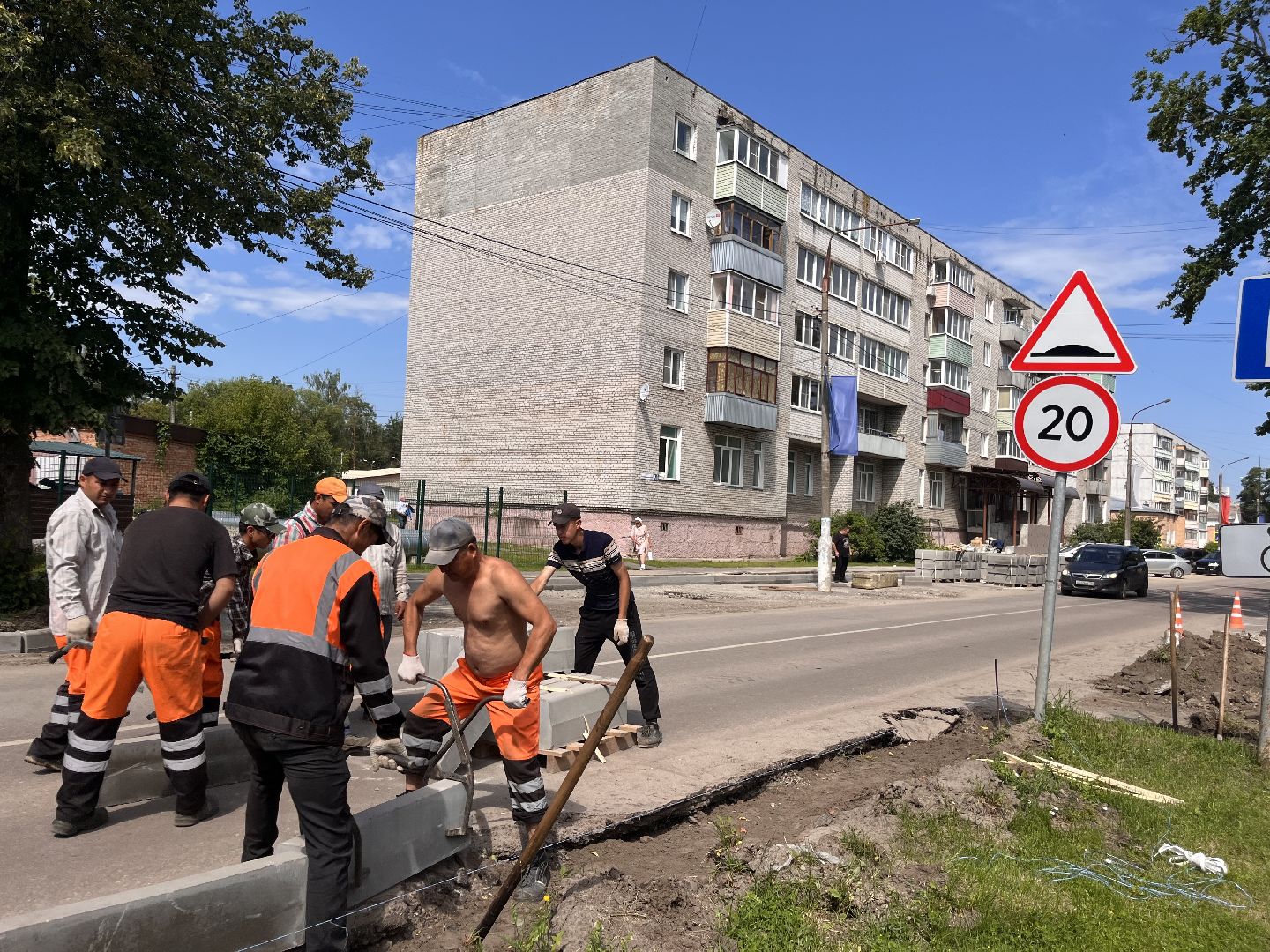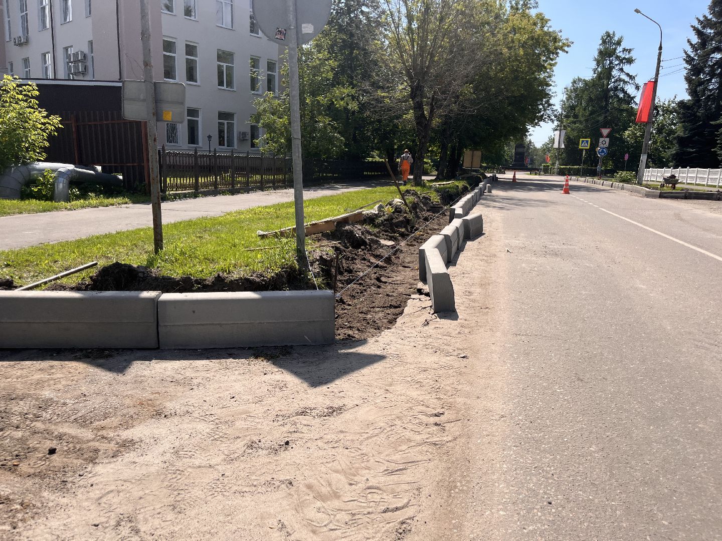 В Шатуре обновляют бордюры на Интернациональной улице
