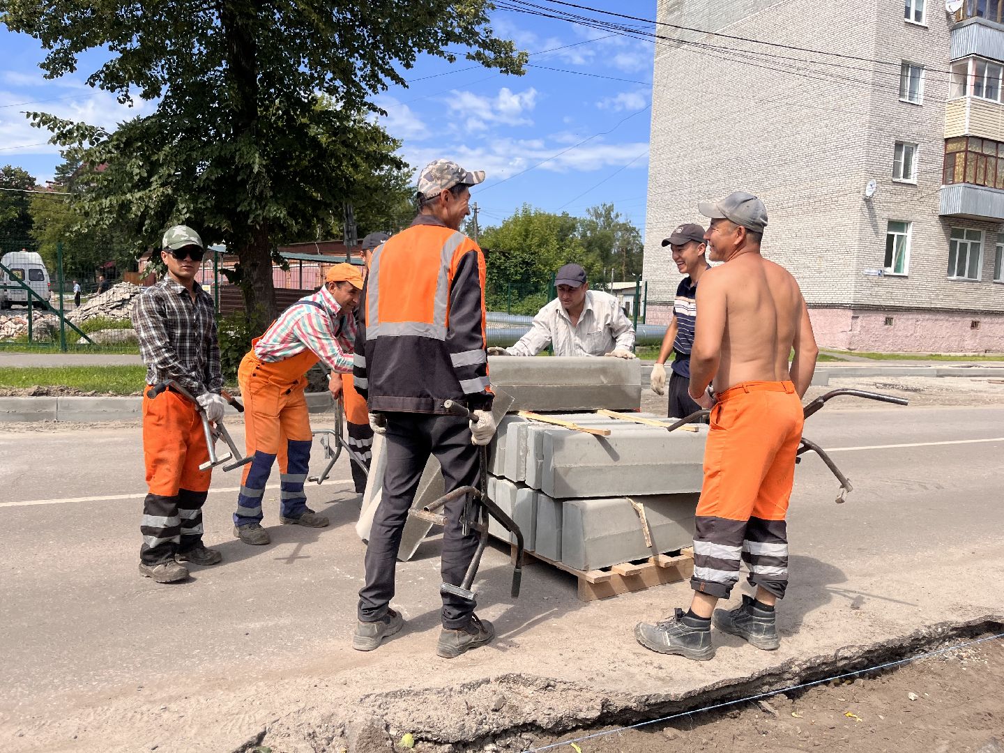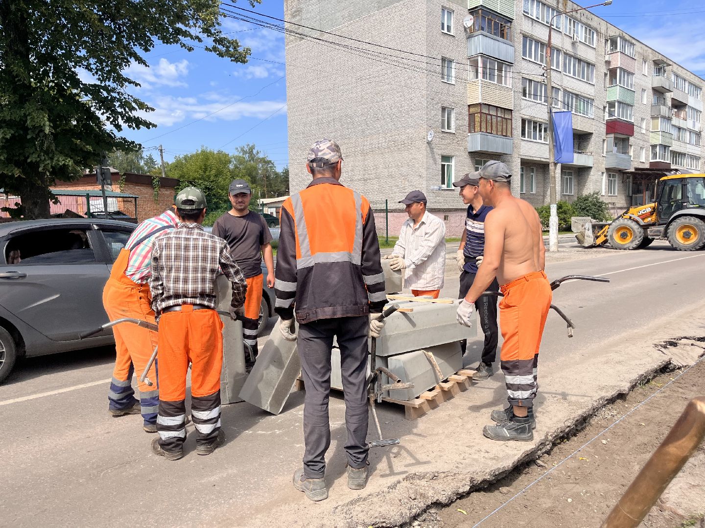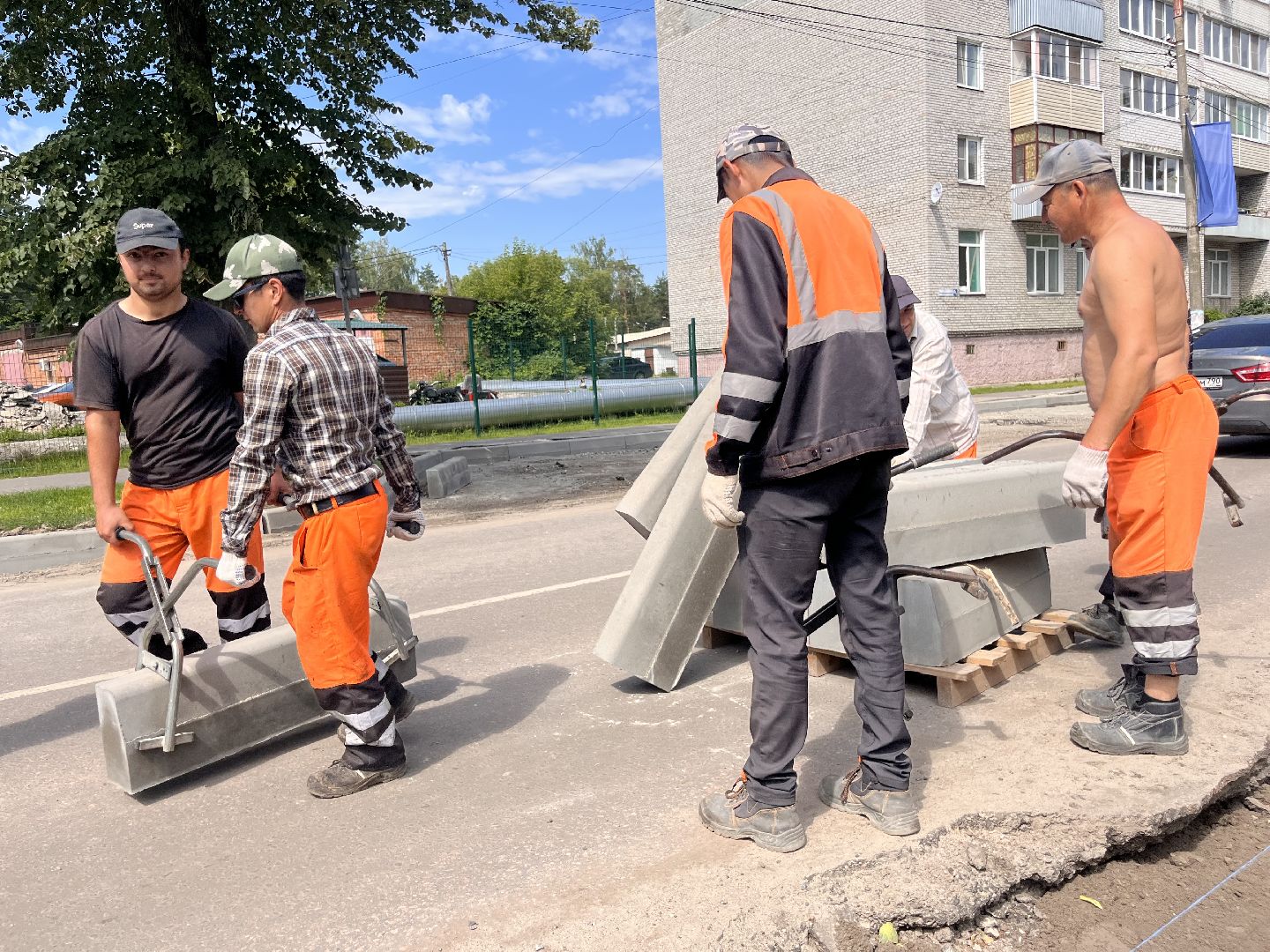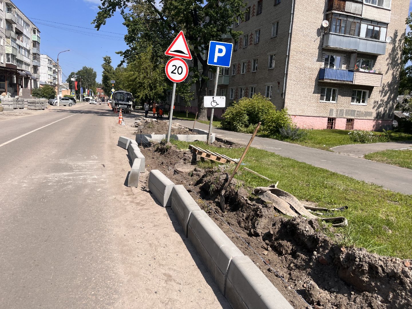 В Шатуре обновляют бордюры на Интернациональной улице