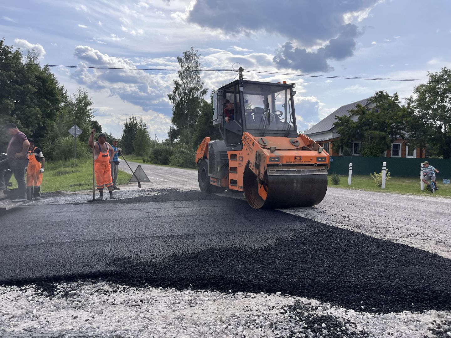 В деревне Горелово под Шатурой укладывают асфальт