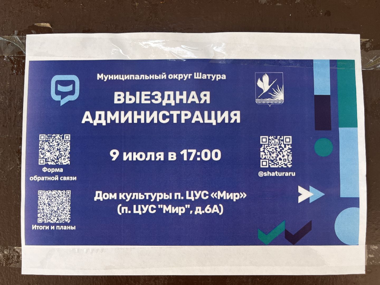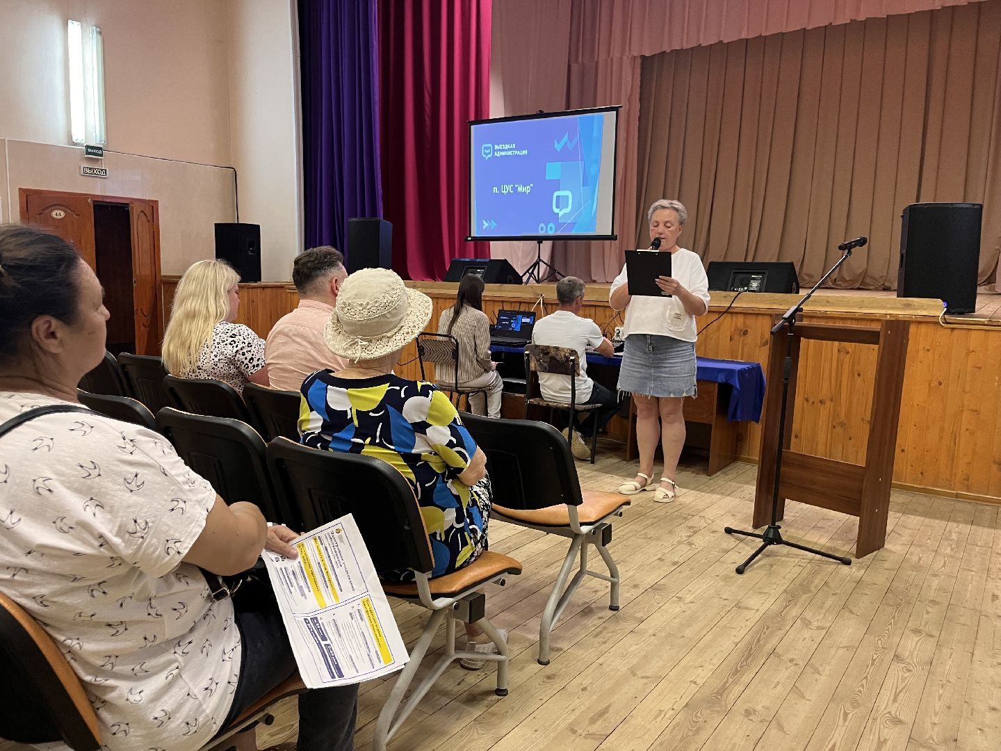 9 июля в Доме культуры п. ЦУС «Мир» прошла встреча жителей с руководством округа и профильными специалистами в формате выездной администрации. Один из вопросов касался освещения в деревне Мелиховская.