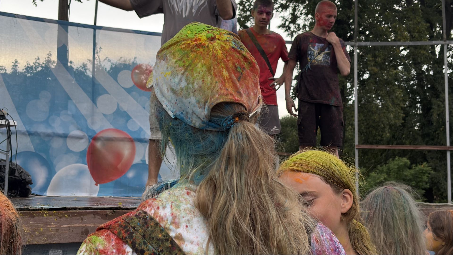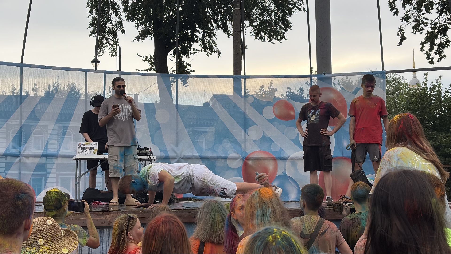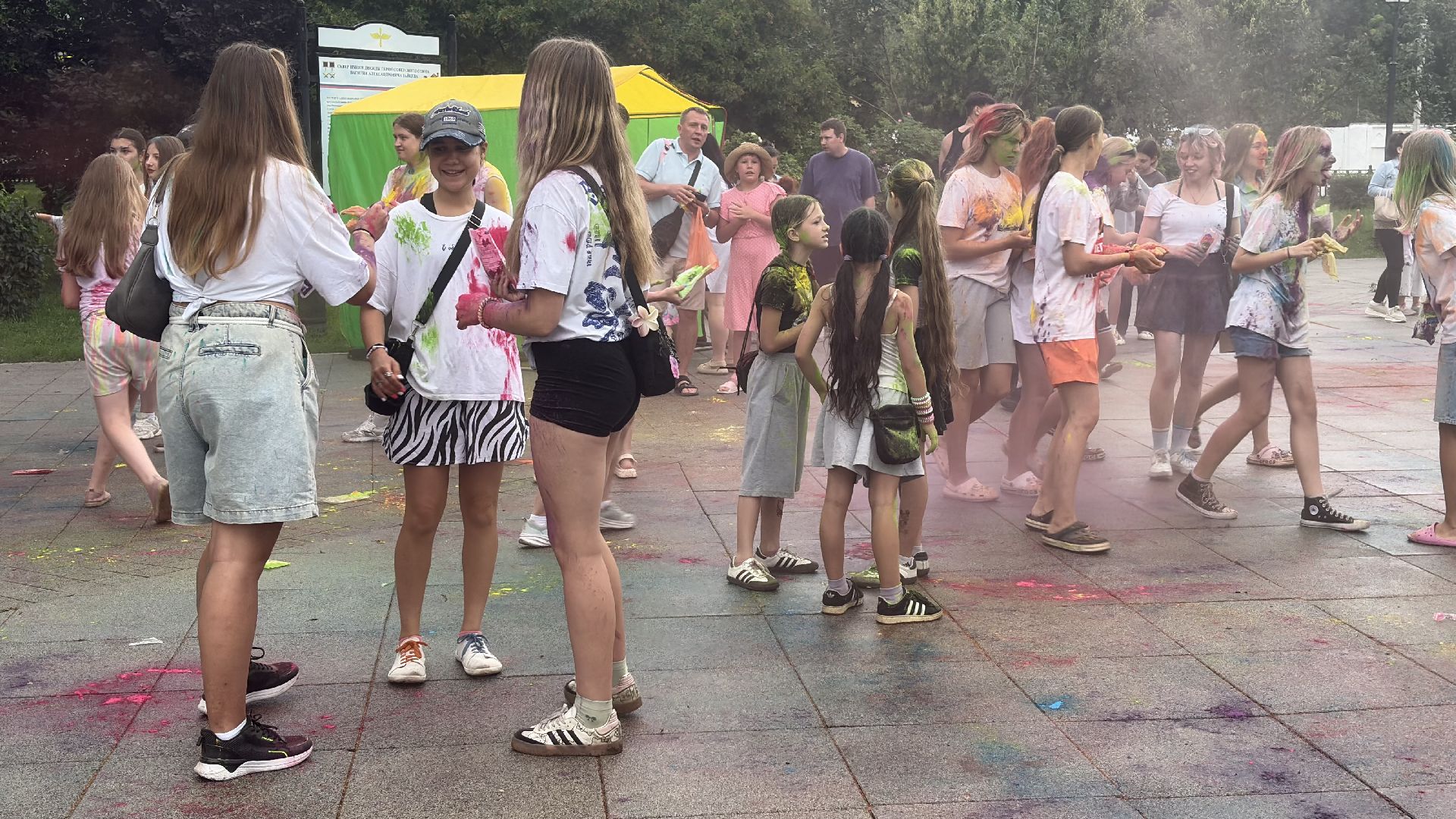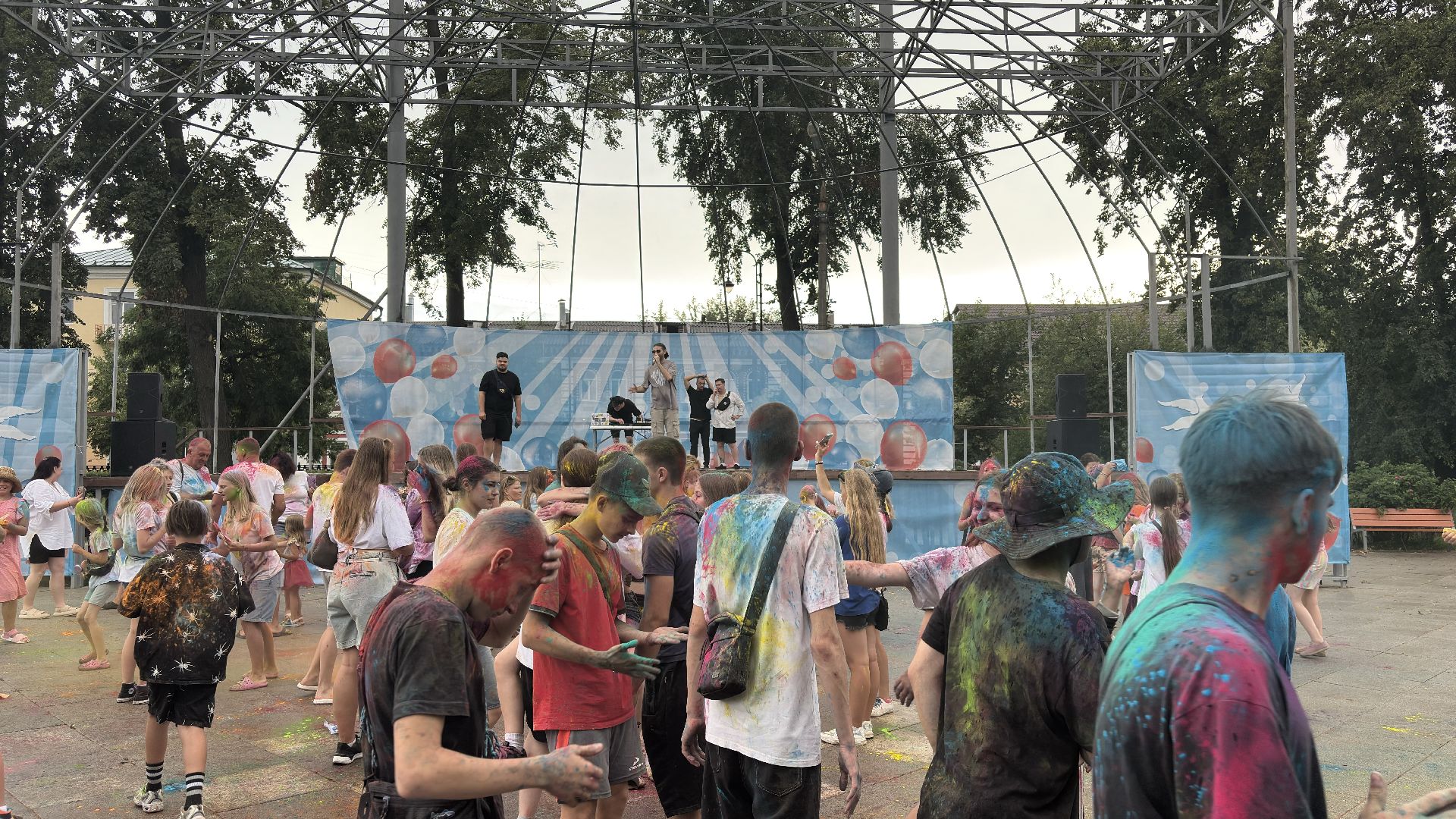 К началу праздника небо словно передумало: тучи ушли, дождь стих, воздух наполнился свежестью, а сквер людьми. Ни один каприз природы не остановил тех, кто собирался танцевать, веселиться и покрыться краской с головы до ног.