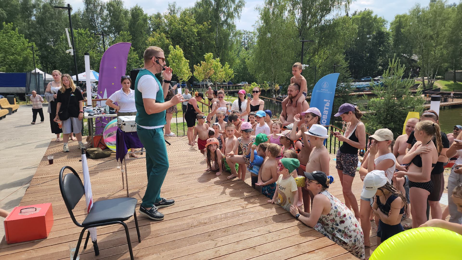 Заплыв на SUP-бордах, шоу иллюзий и пенная вечеринка: в Лосино-Петровском отметили День рыбака на Суворовских прудах