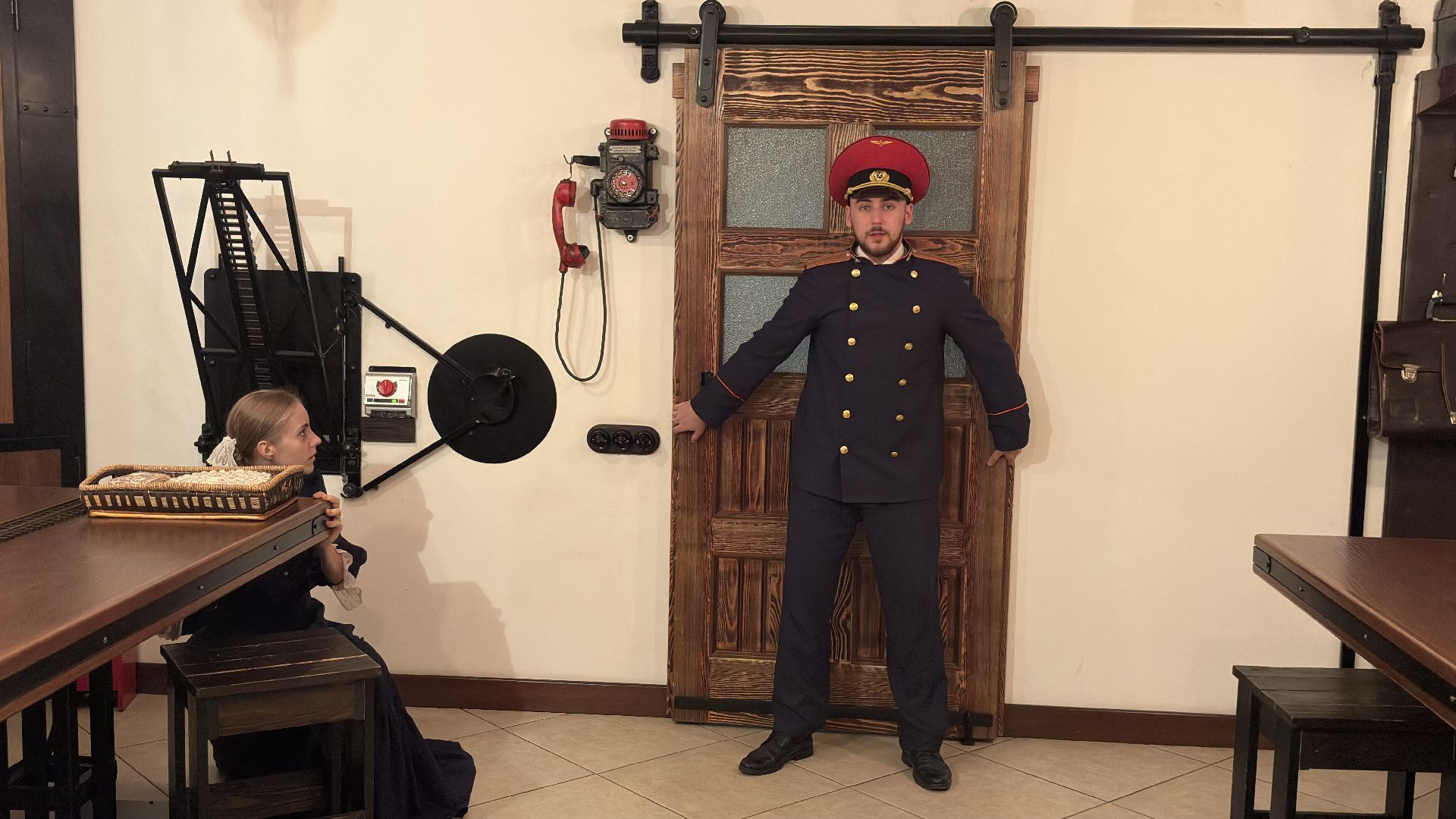 Всё начинается с погружения в атмосферу железнодорожной станции начала XX века. Гостей встречают два персонажа — Анна Ильинична и Иван Иванович Качура, начальник станции, который с волнением готовится к приезду важных персон. Однако прибывшие на мастер-класс гости не имеют билетов и персонажи сценки принимают их за «зайцев».