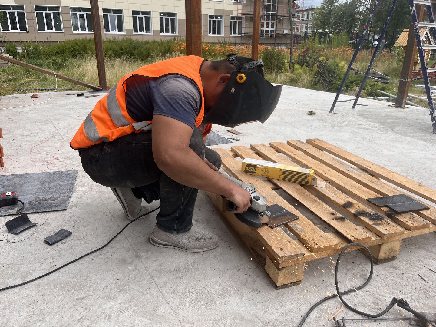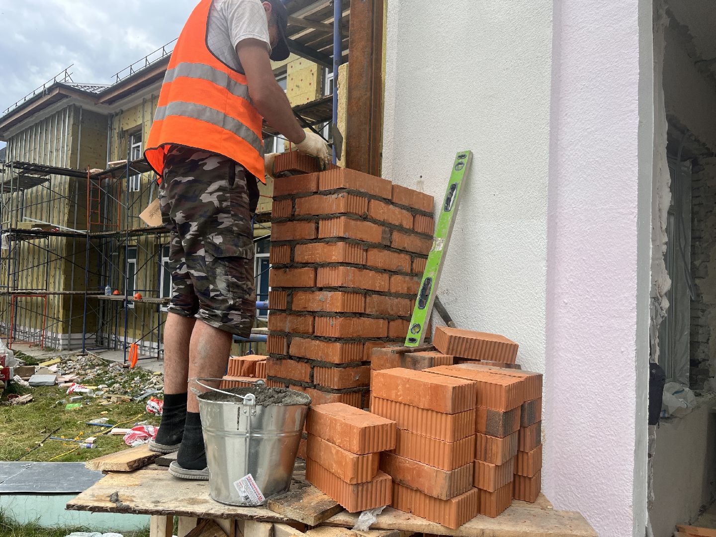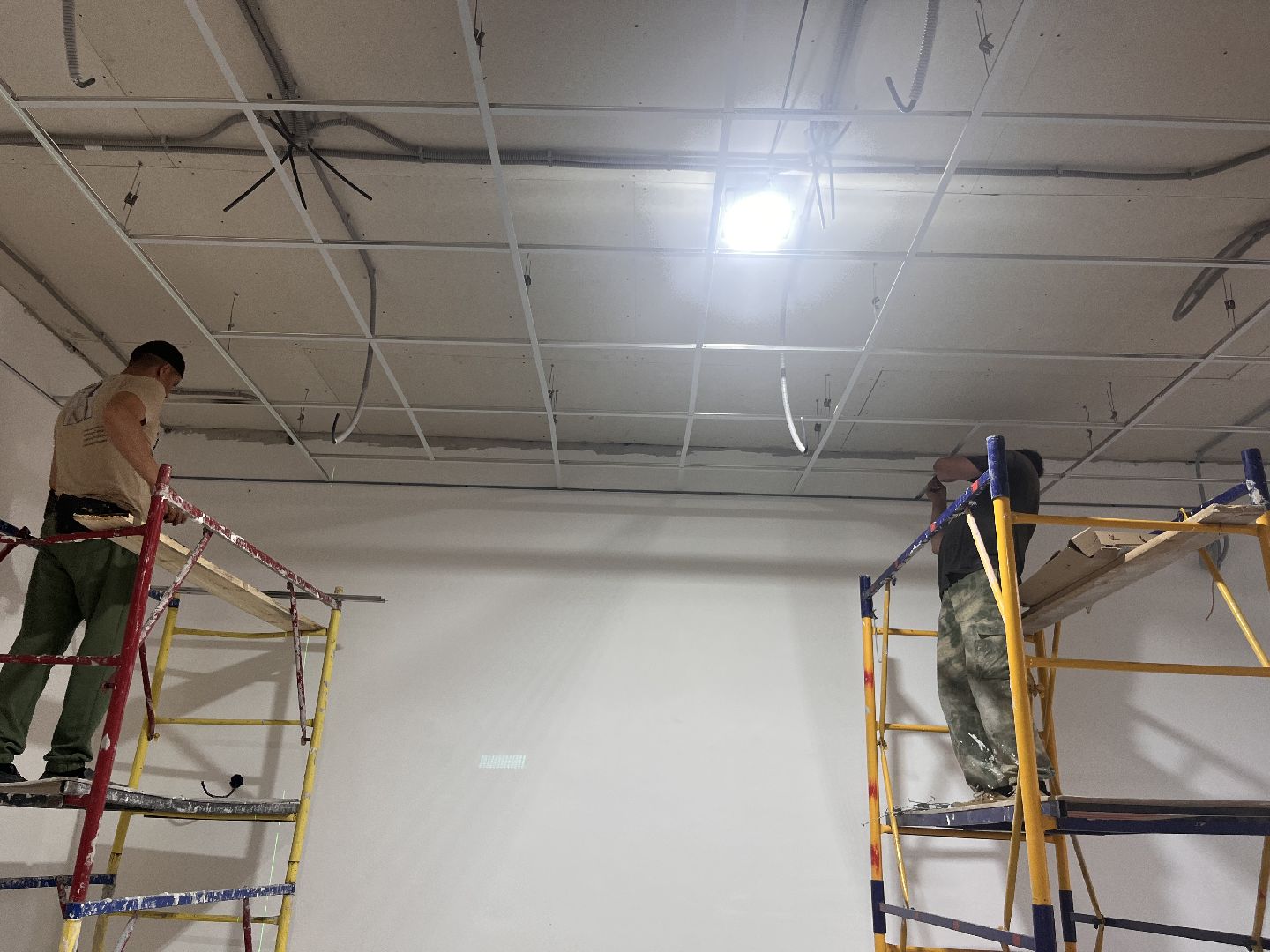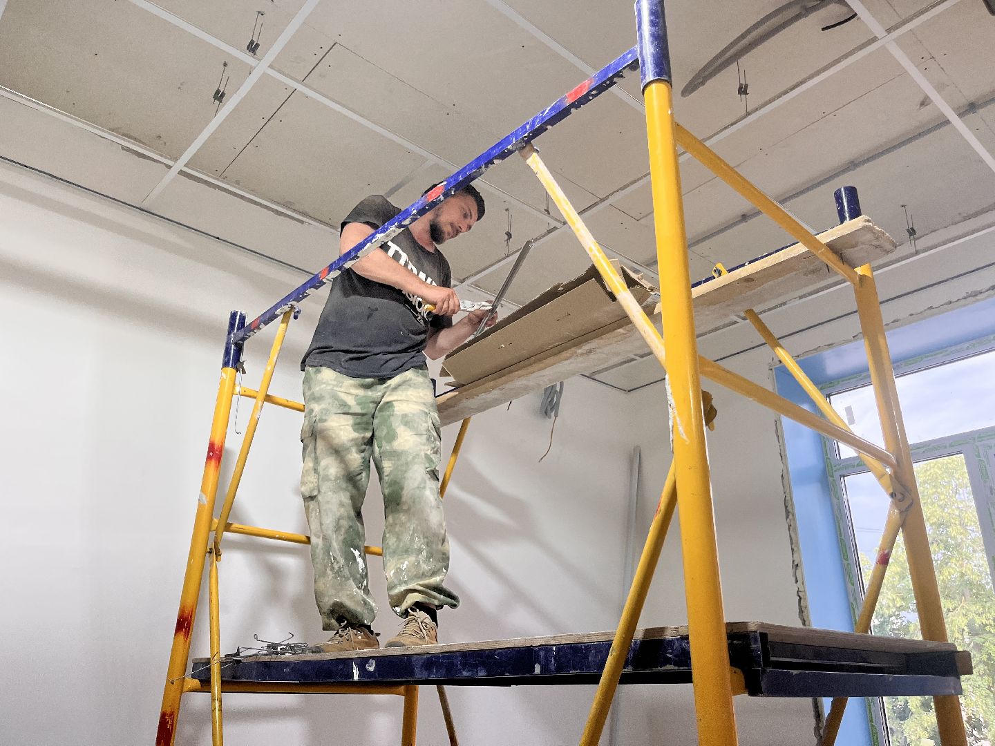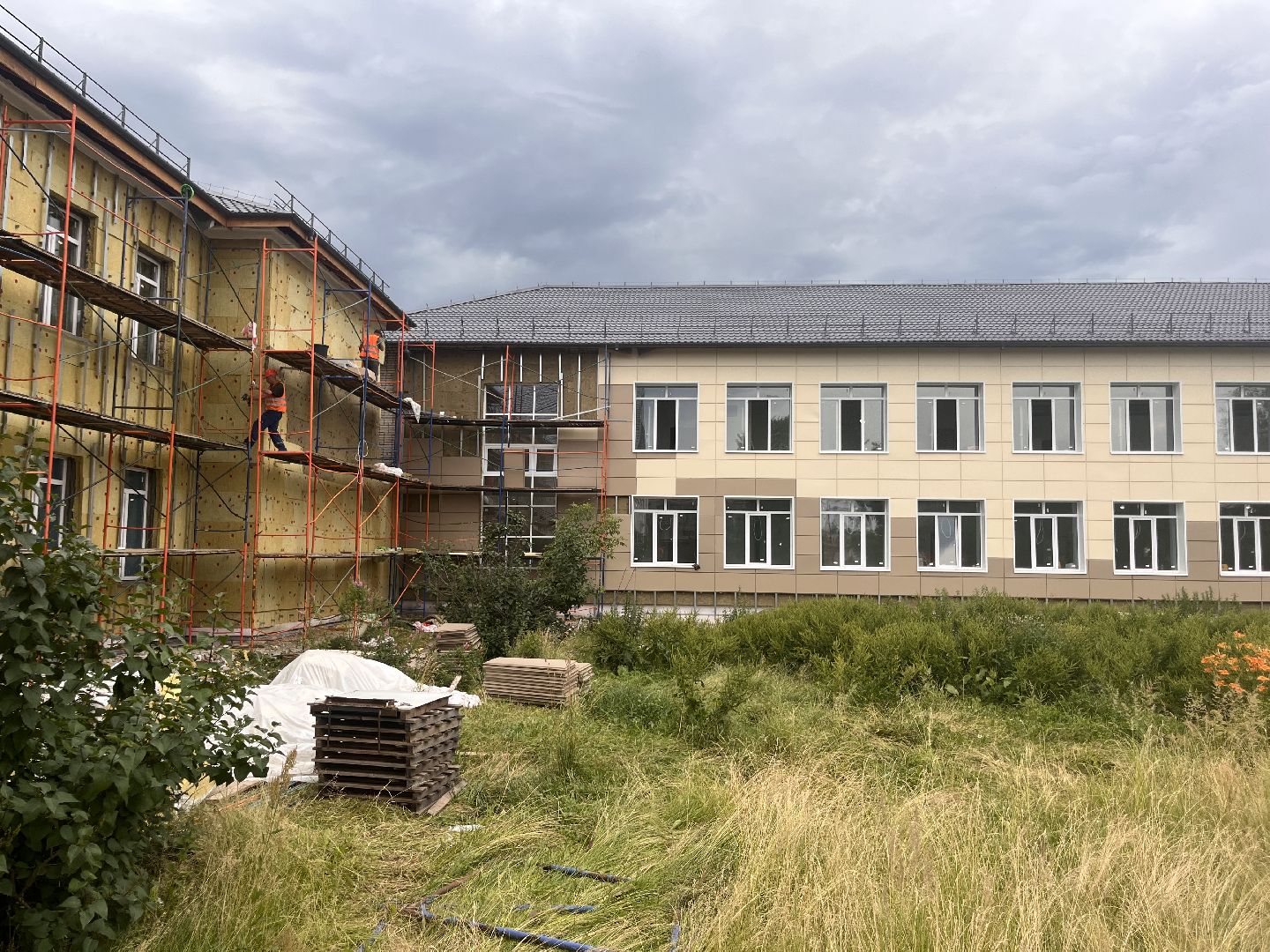 В школе полным ходом идёт ремонт и благоустройство территории. Уже возведены перегородки и заменены перекрытия несущих конструкций. Полностью новая электрика готова на 80%. Чистовая отделка закончена.