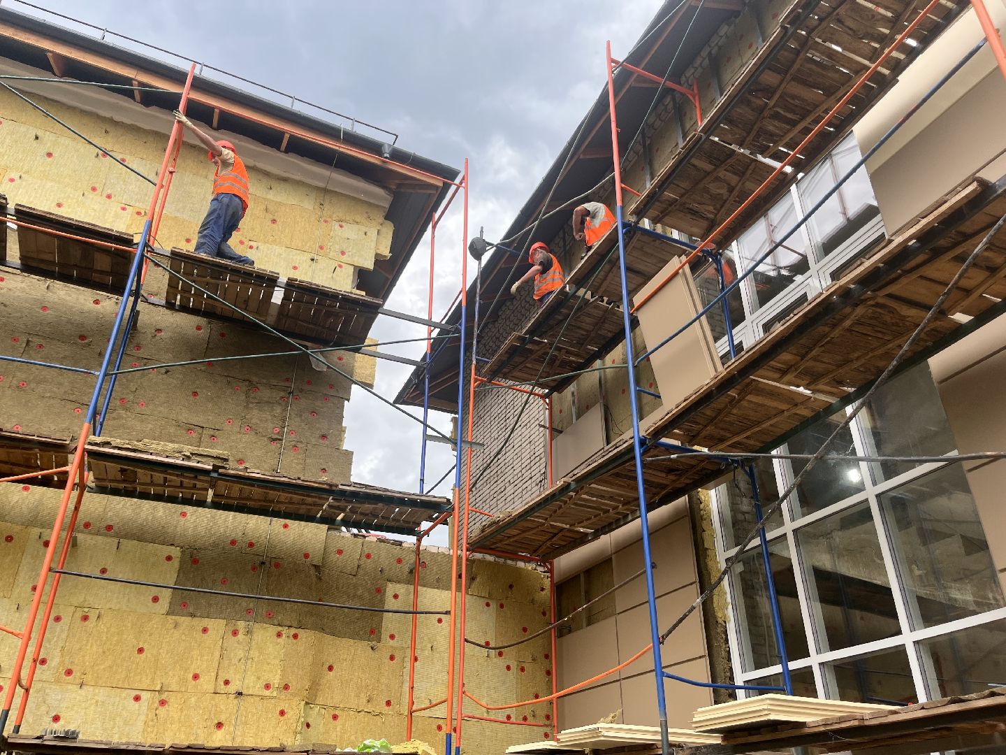 К началу учебного года учеников приятно удивит современный и красивый фасад, выполненный из легких и «дышащих» материалов.