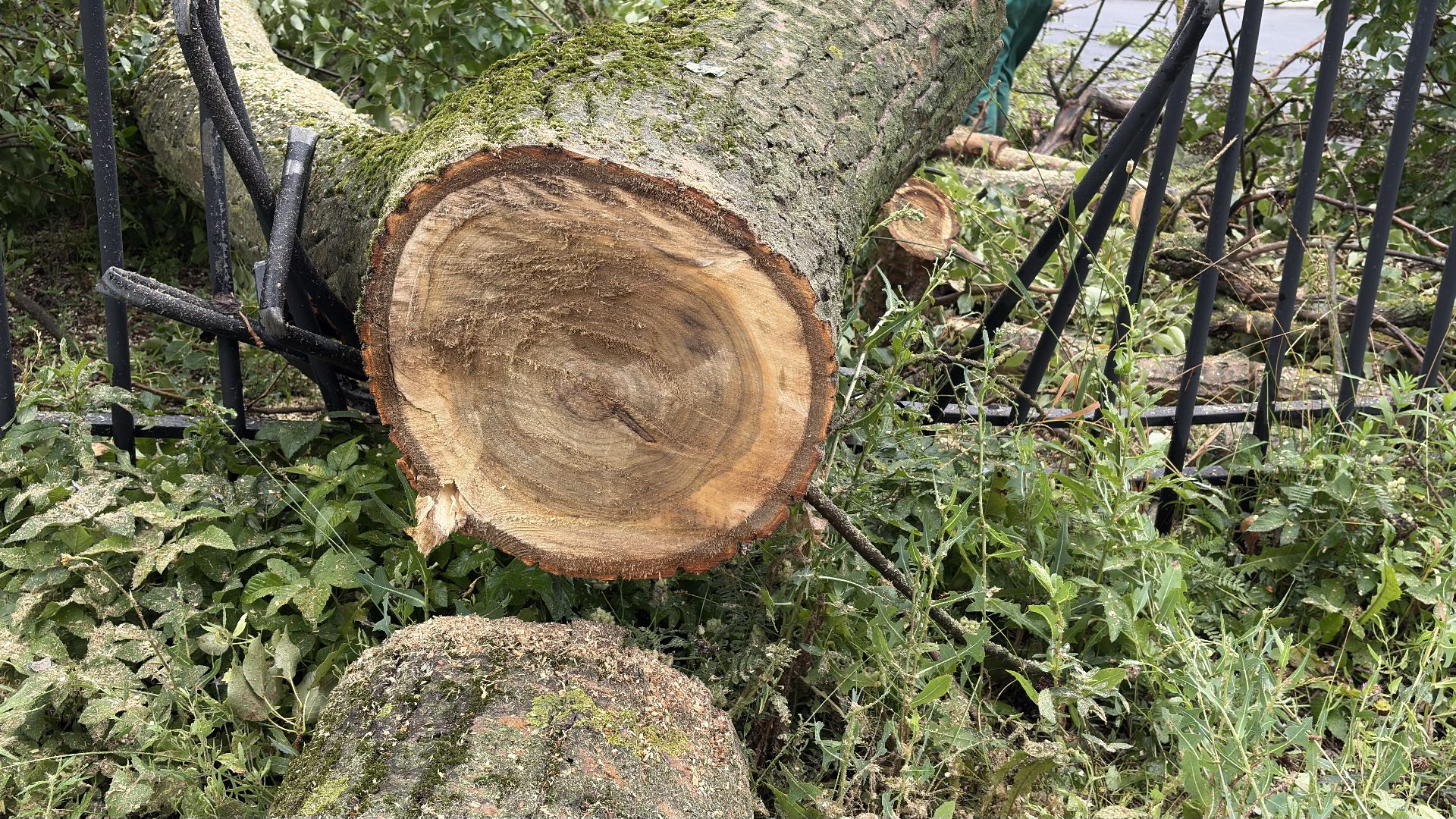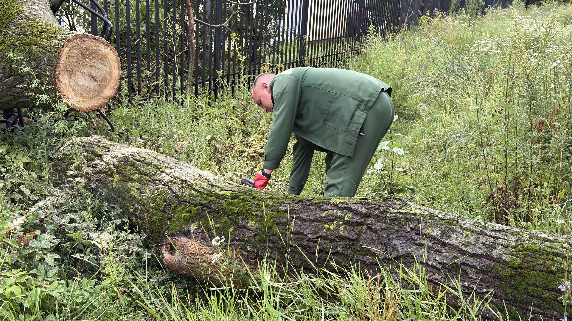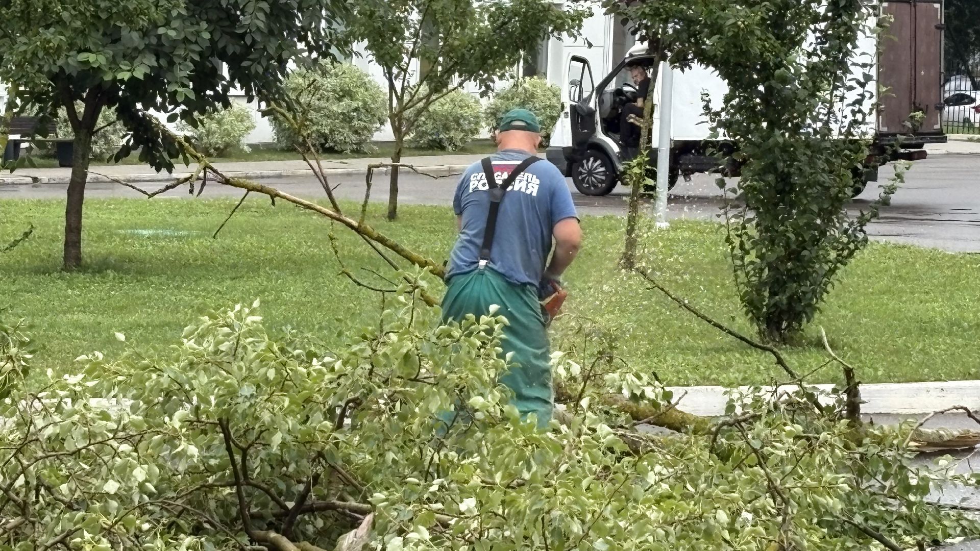 На место оперативно выехали сотрудники «Спецавтохозяйства». Всего двое рабочих справились с распилом массивного дерева примерно за 40 минут. Несмотря на большие размеры ствола, специалисты действовали быстро и слаженно.