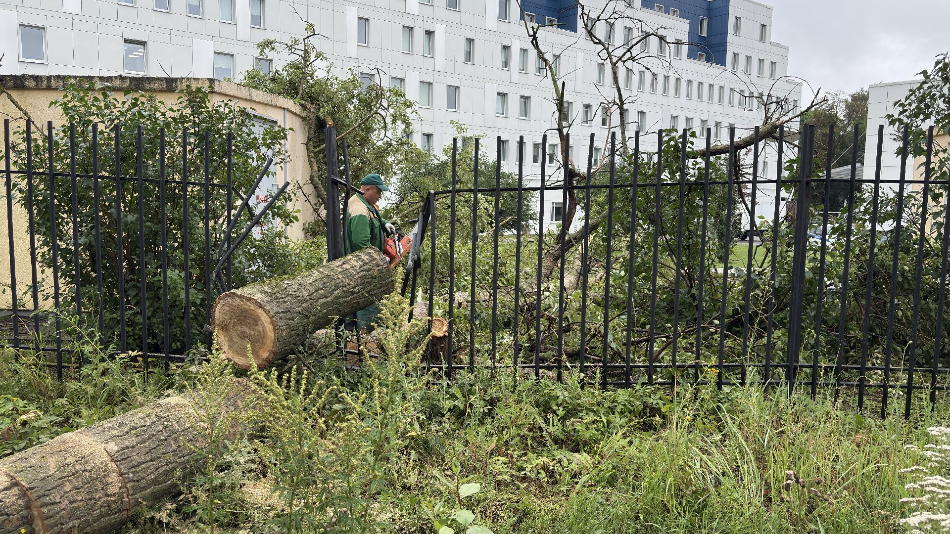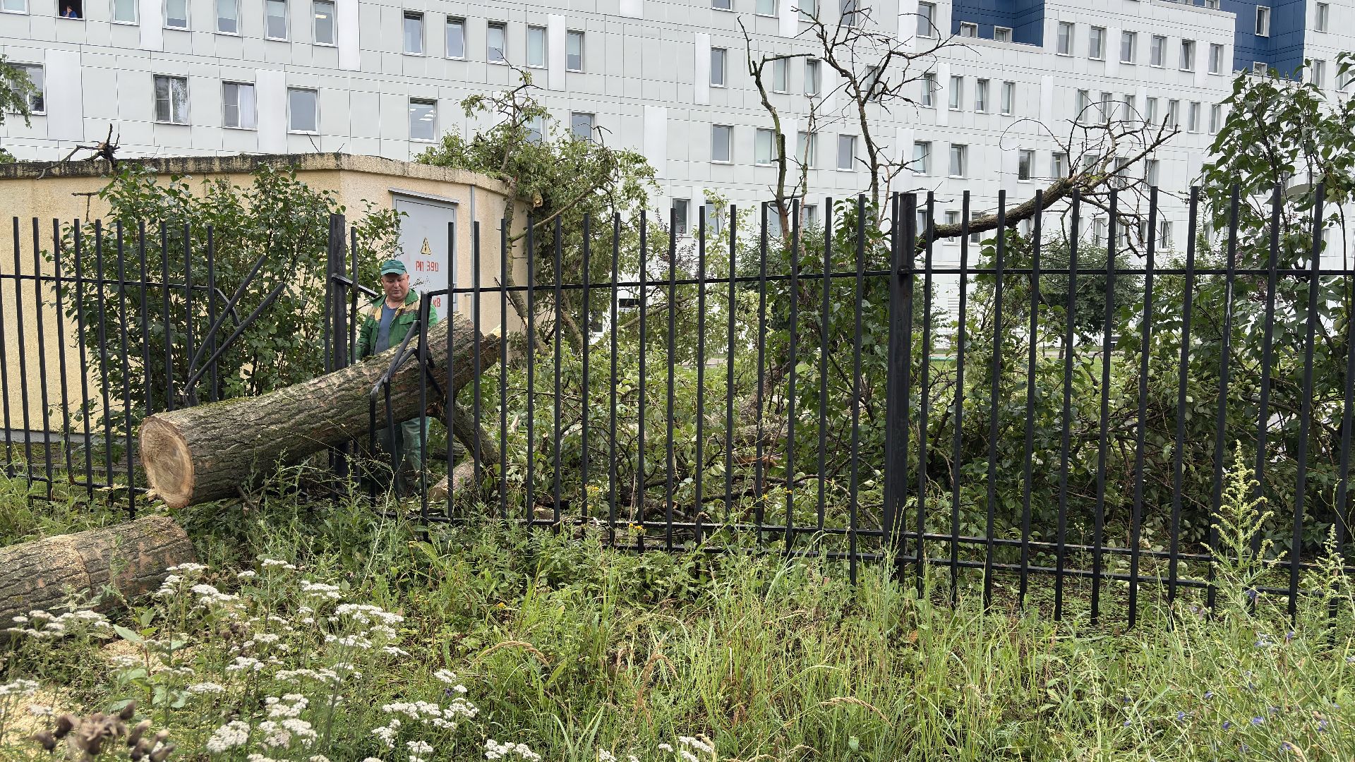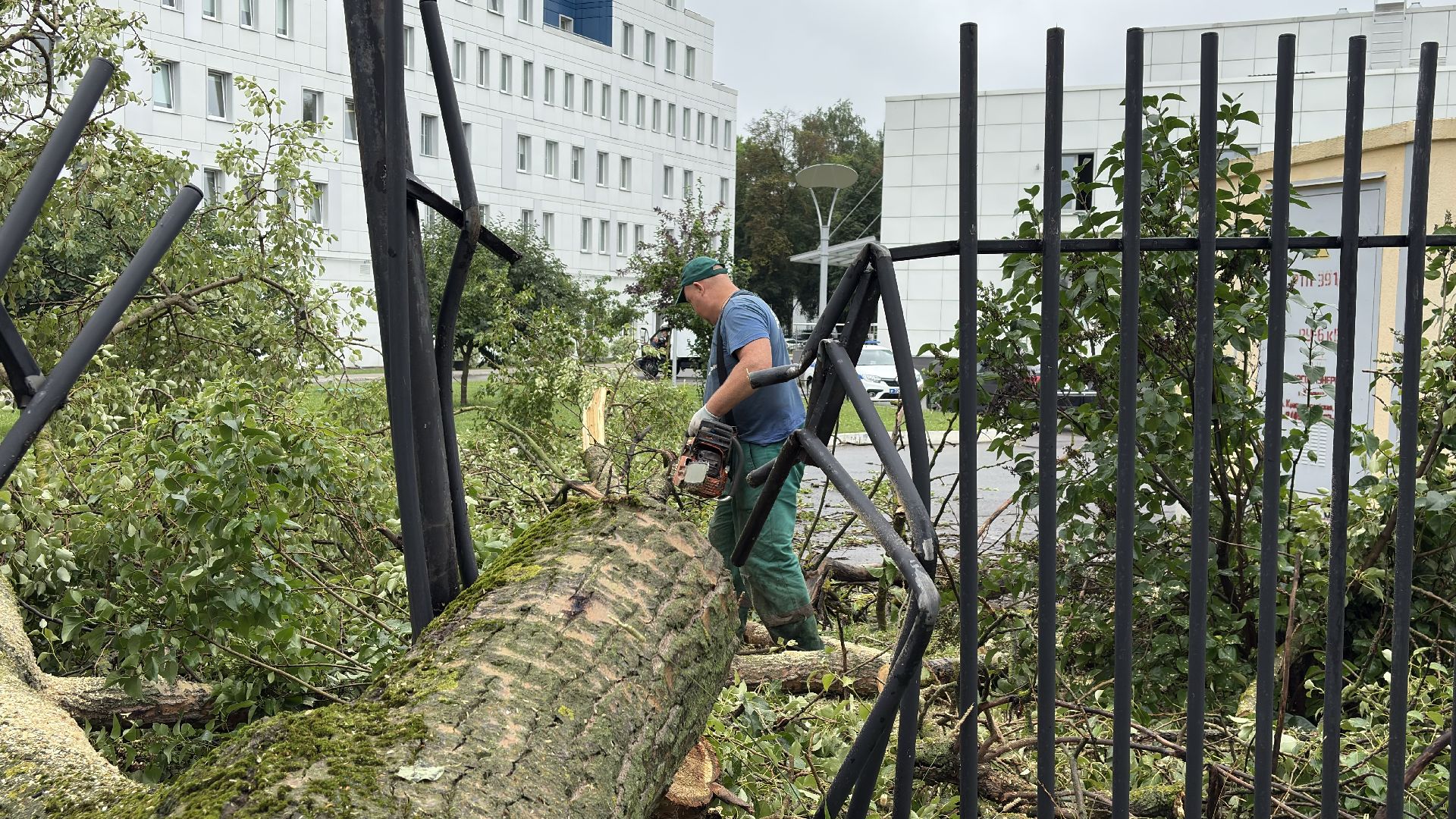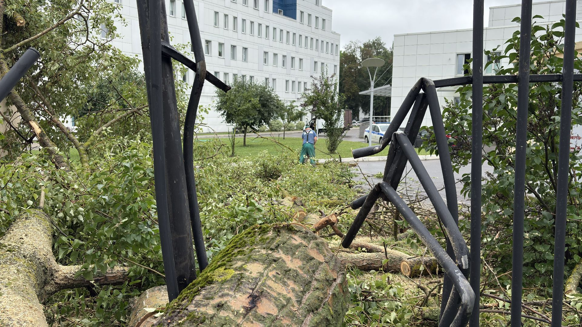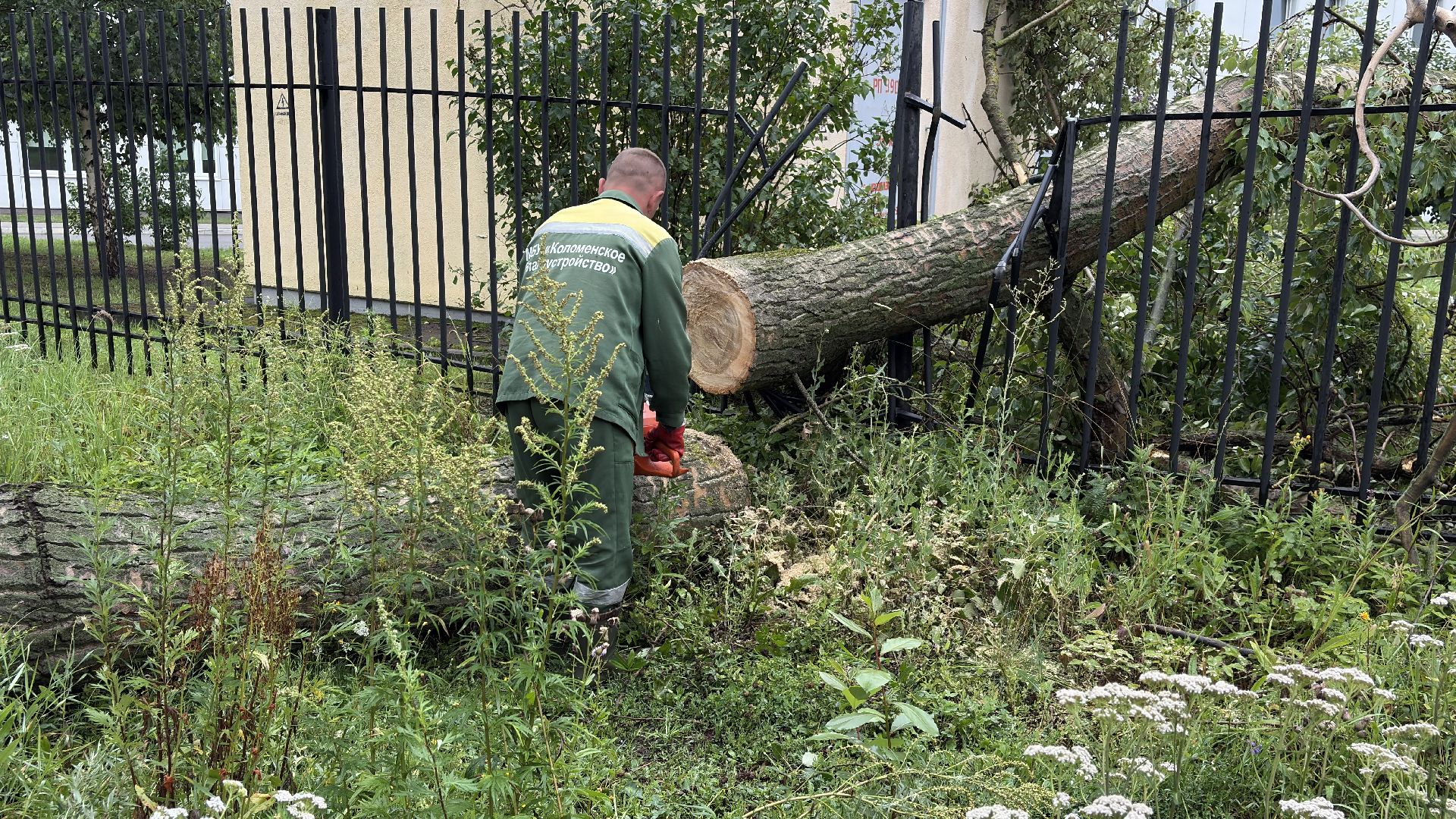 Быстро и слаженно: коммунальщики убрали упавшее дерево у Коломенского перинатального центра