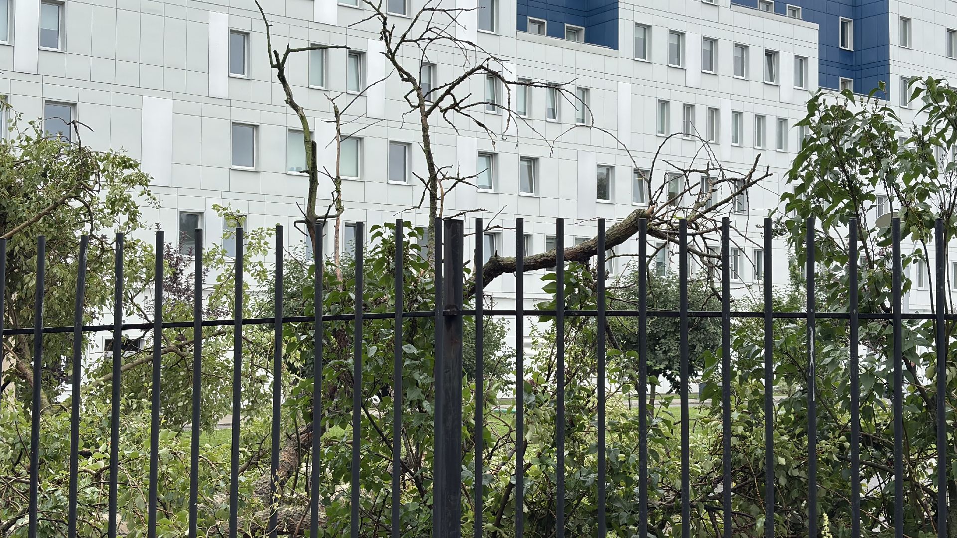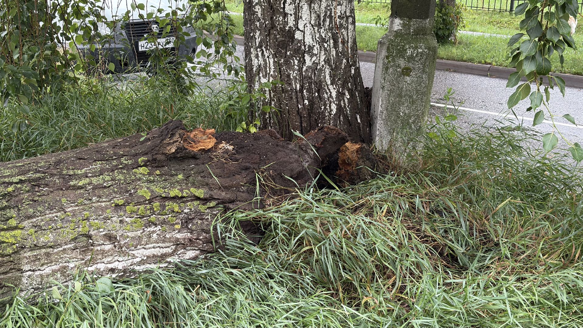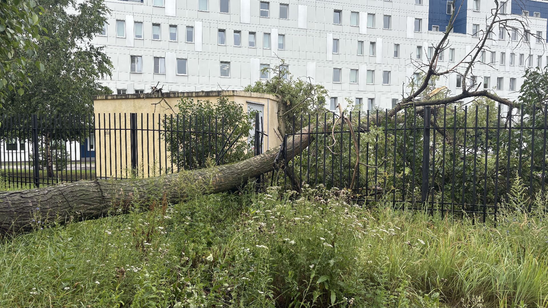 В Коломне уже несколько дней не утихают дожди и сильный ветер. Последствия непогоды не заставили себя долго ждать. Сегодня на территорию Перинатального центра в Коломне рухнул старый тополь. По предварительной информации, дерево было гнилым и ослабленным из-за сырости, а очередной порыв ветра стал последней каплей.