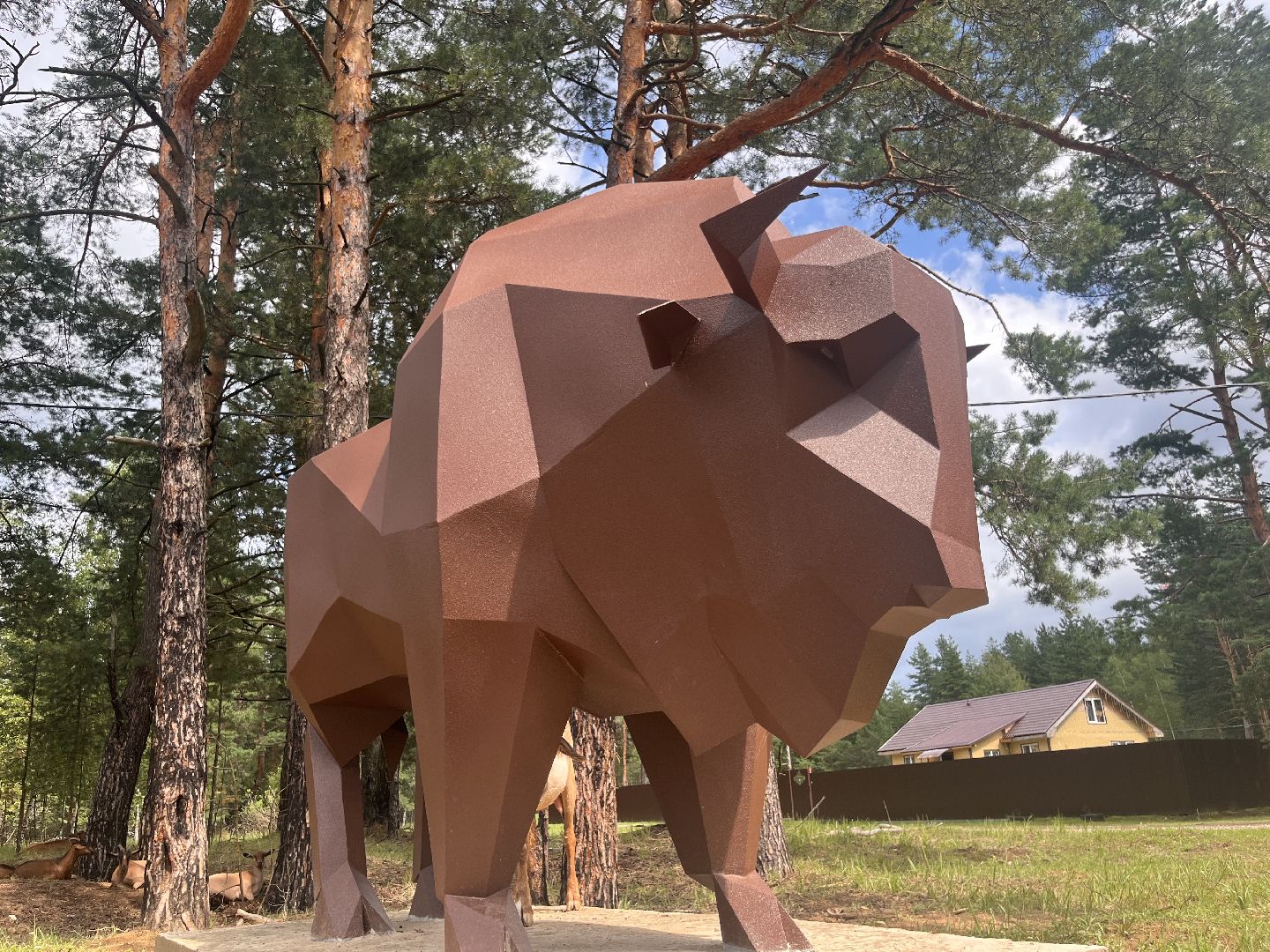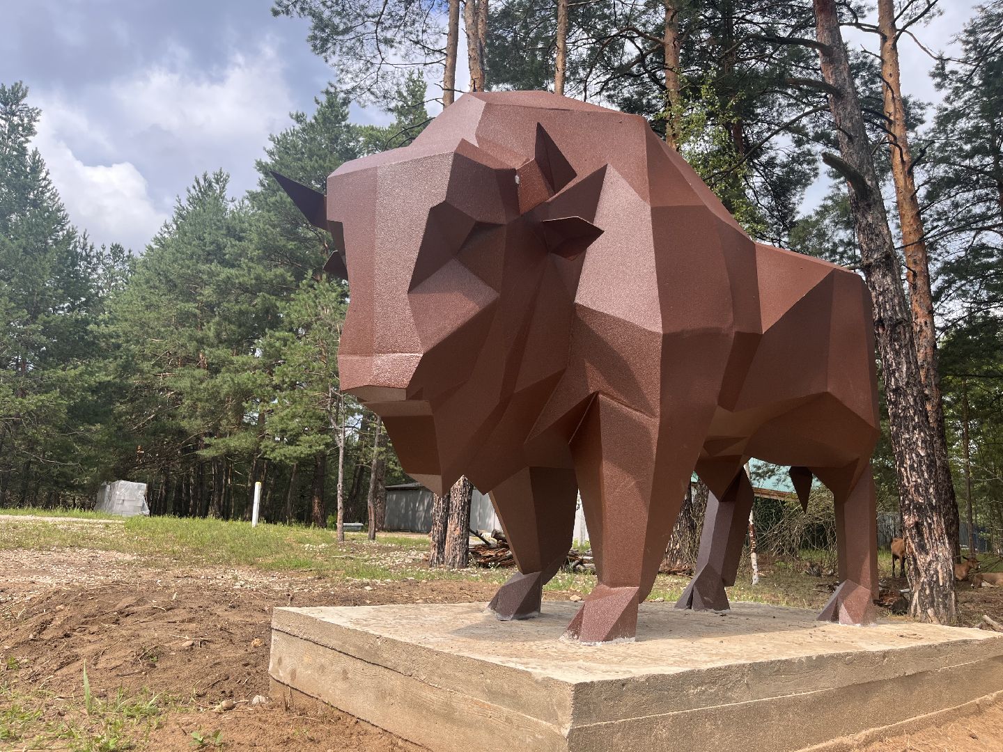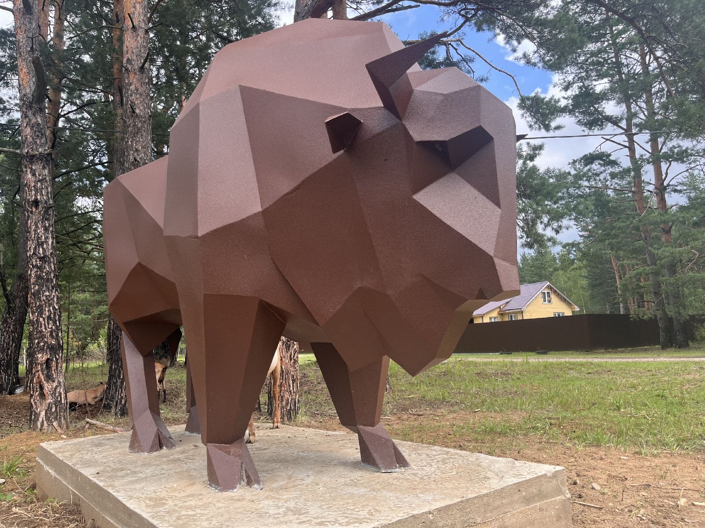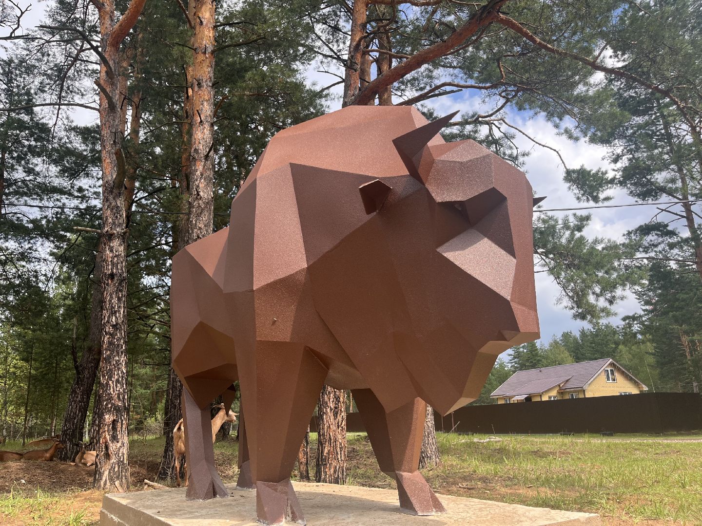 Скульптура зубра: подарок местного умельца украсил деревню Осаново-Дубовое под Шатурой
