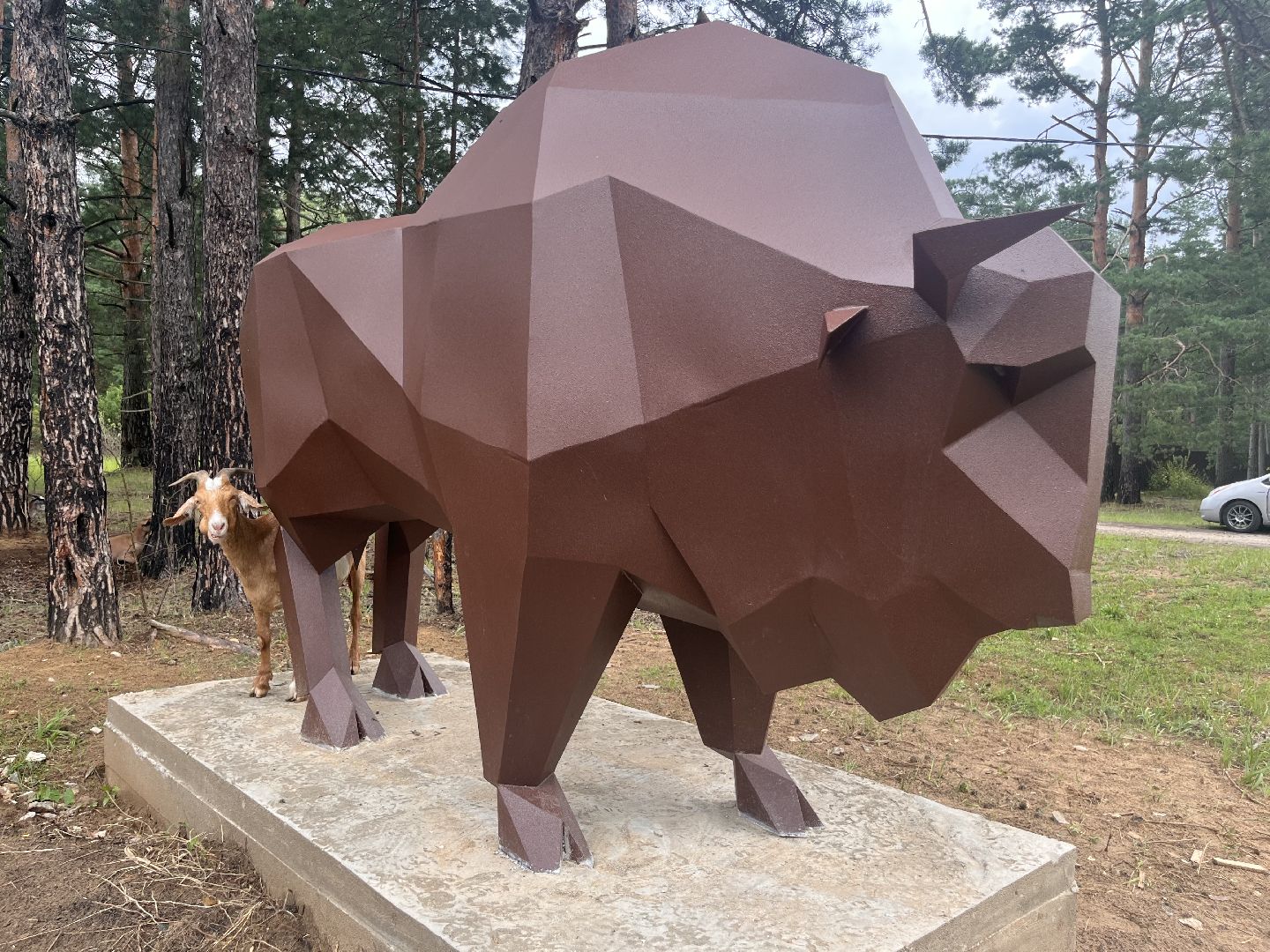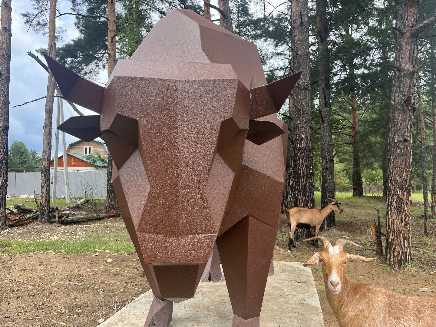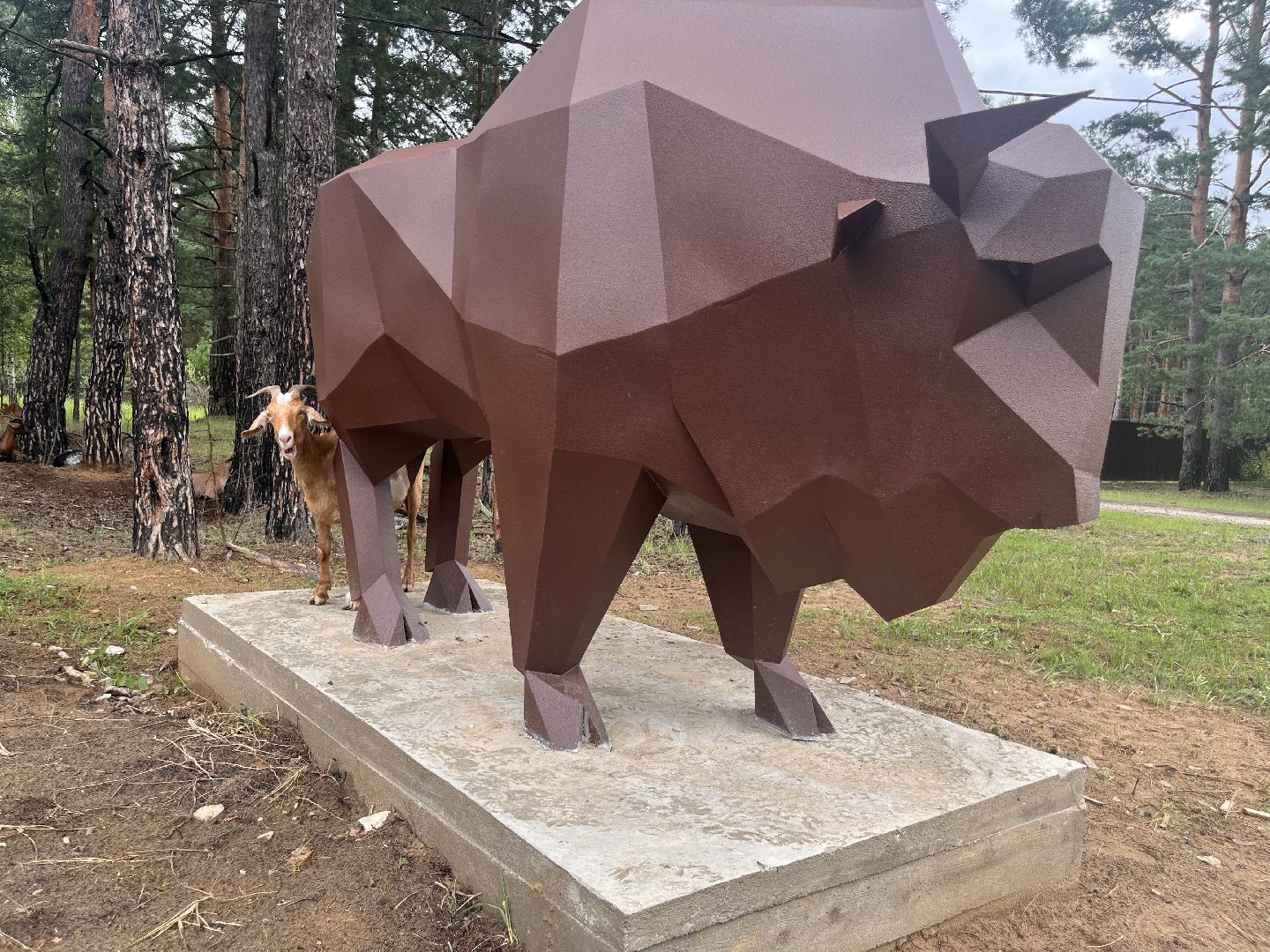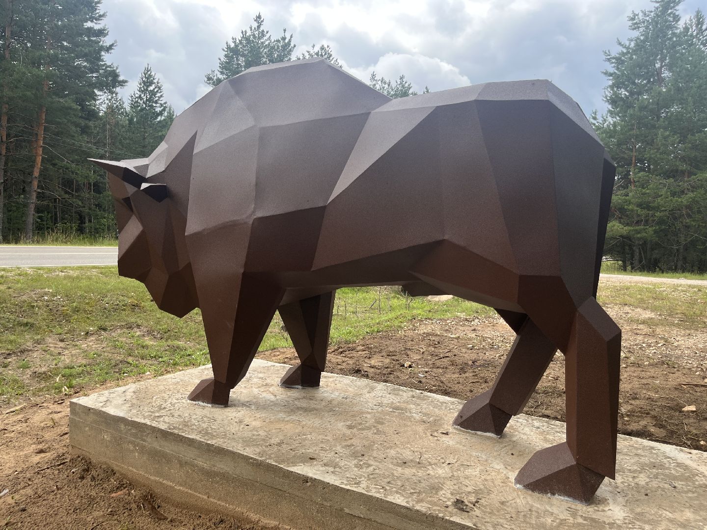 Скульптура зубра: подарок местного умельца украсил деревню Осаново-Дубовое под Шатурой