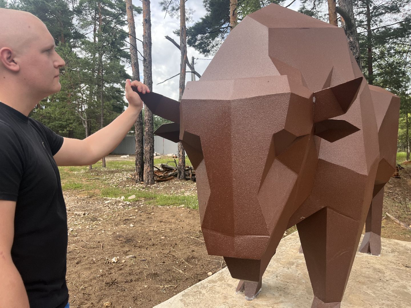 Дмитрий предложил администрации Шатуры заменить её металлической скульптурой, символизирующей взрослого зубра. Идею поддержали.
