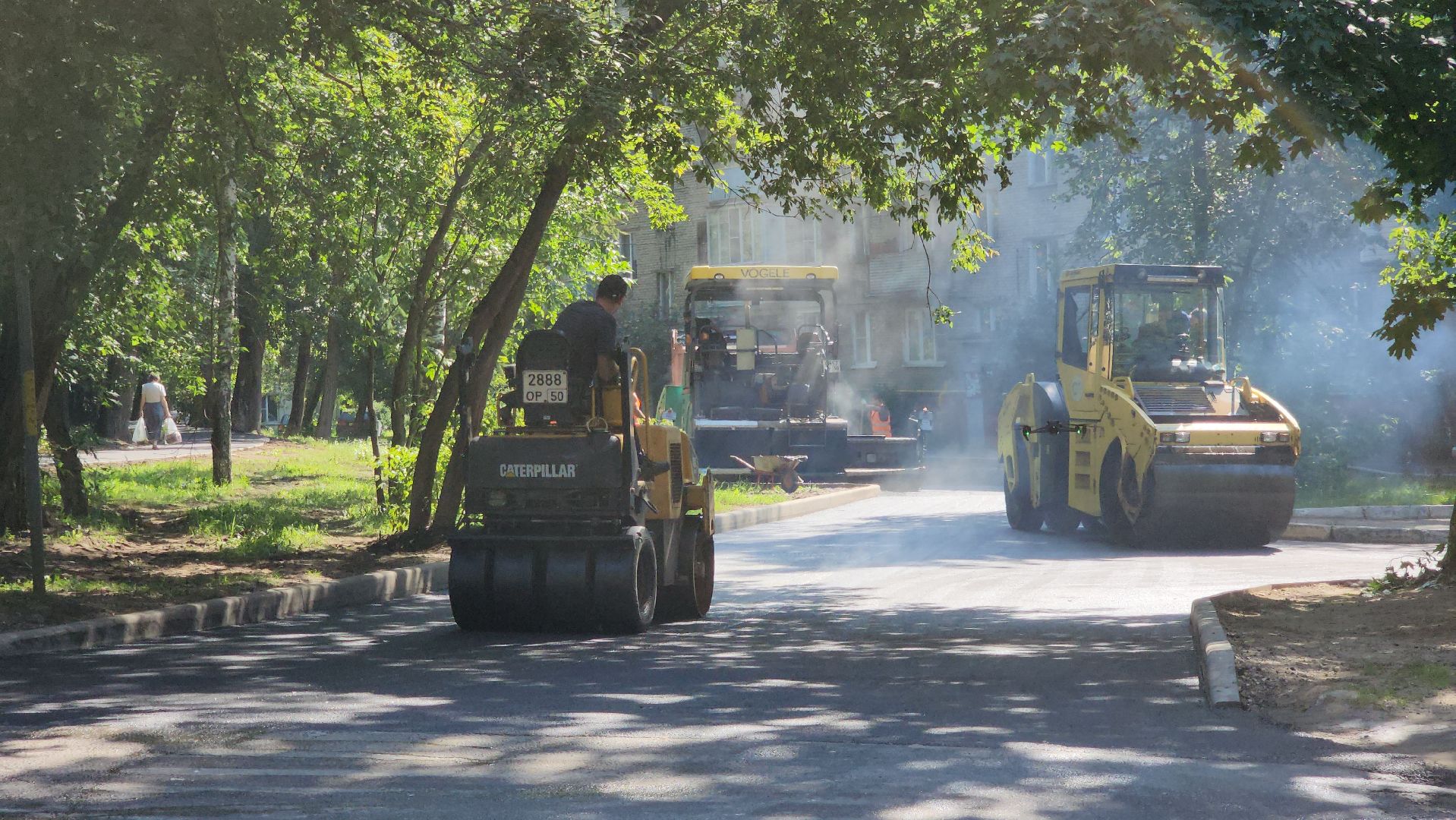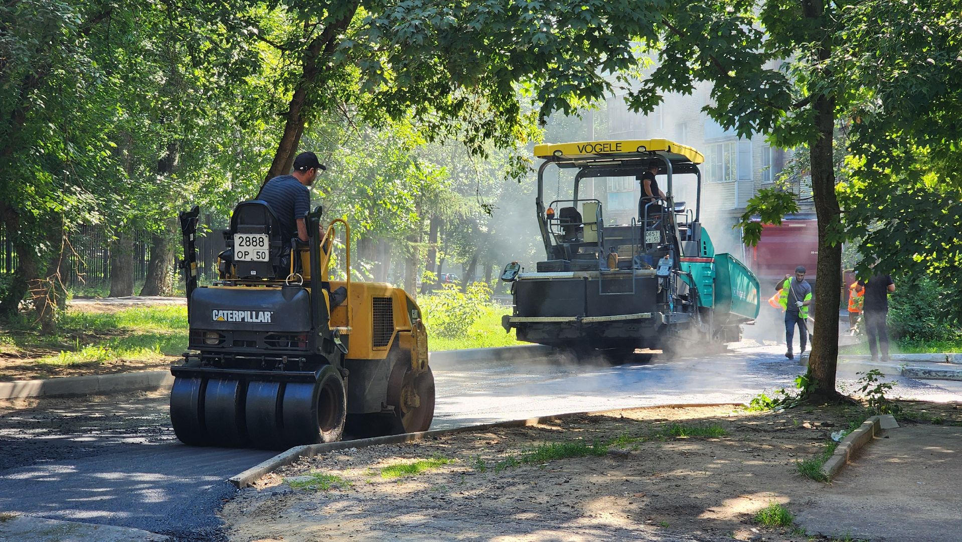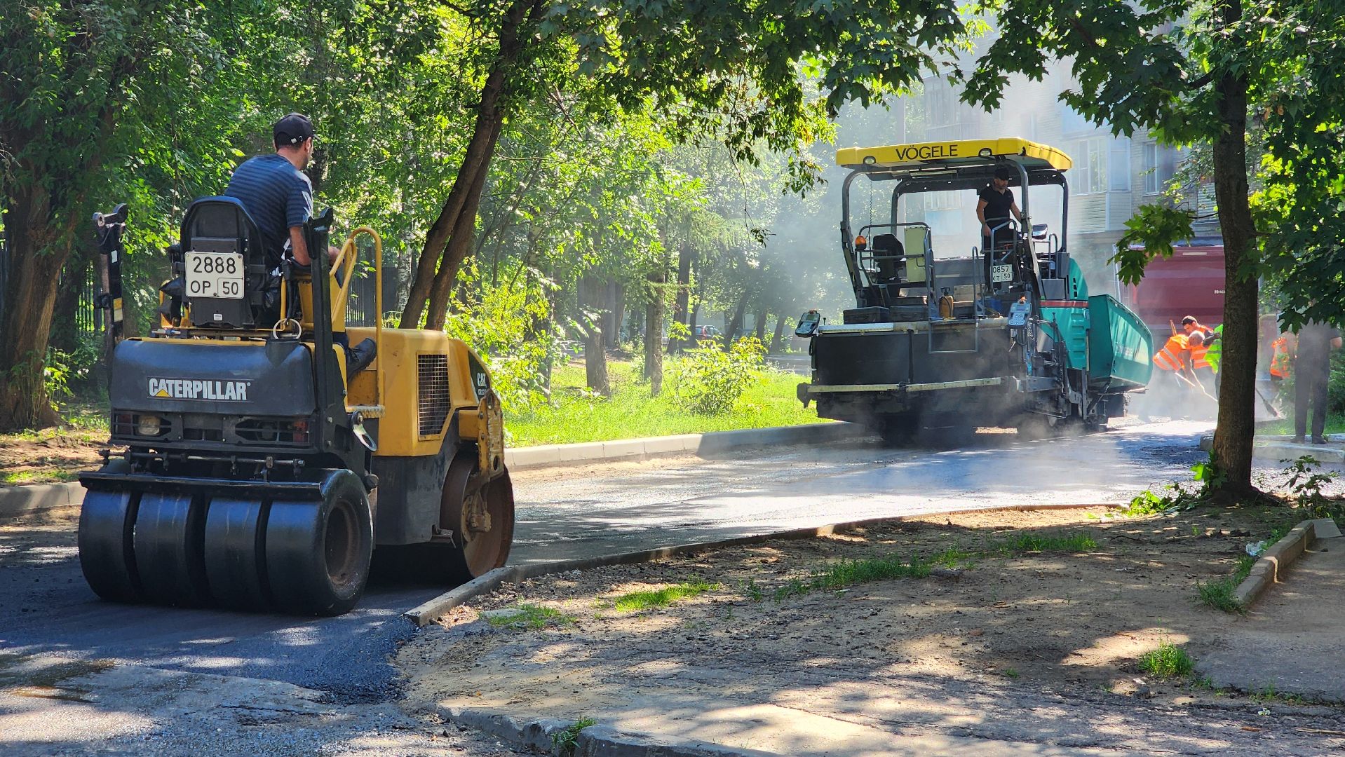 По словам начальника участка Тельмана Гиголяна, работают больше десяти человек. Техники достаточно, она обеспечивает все производственные потребности: три катка-укладчика асфальта, четыре самосвала, водовоз, трактор, газель.