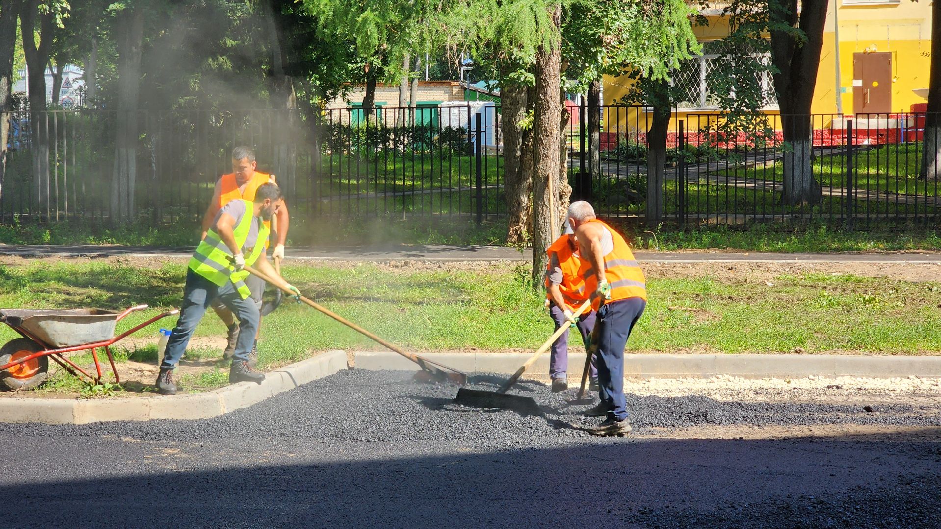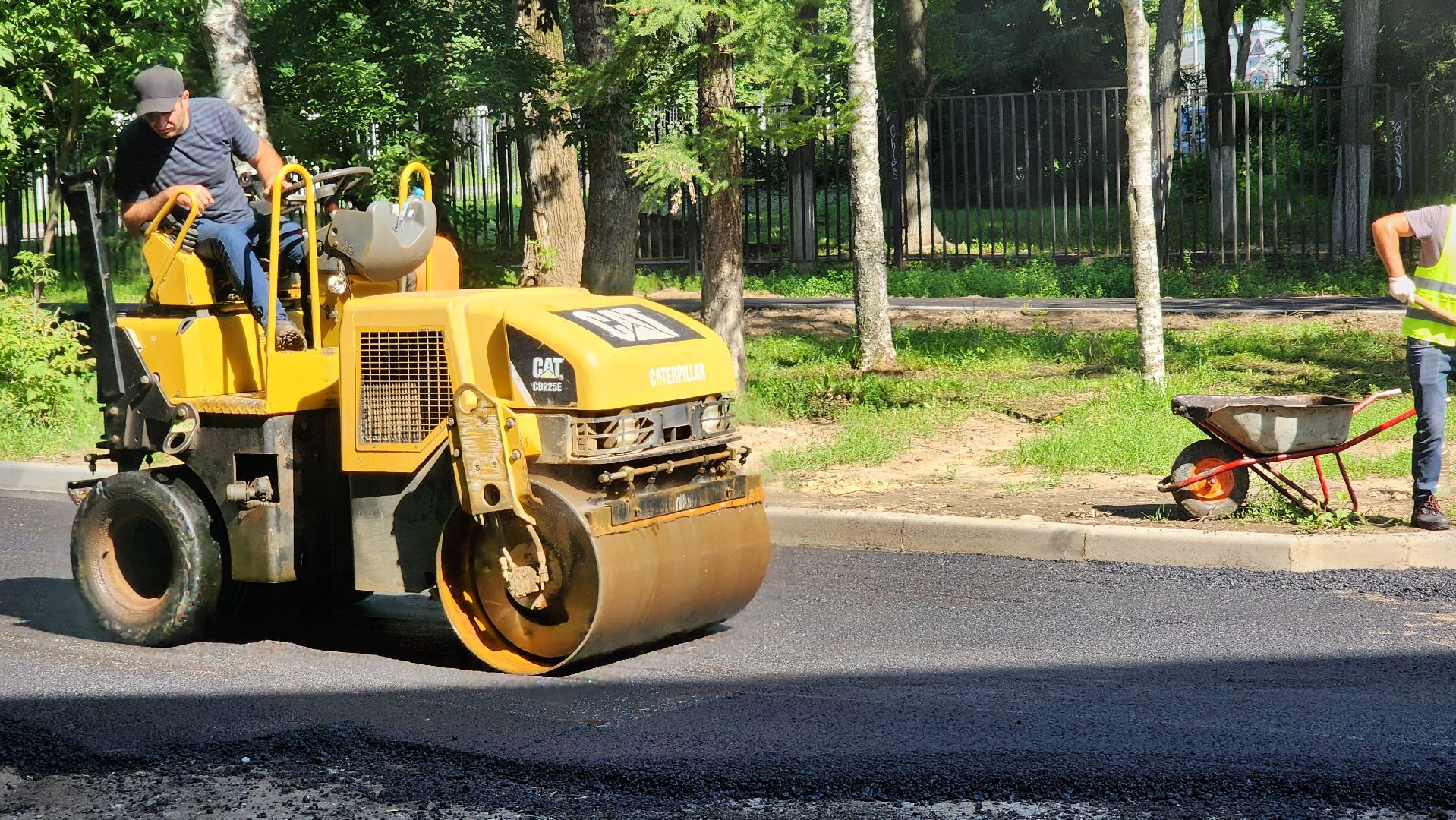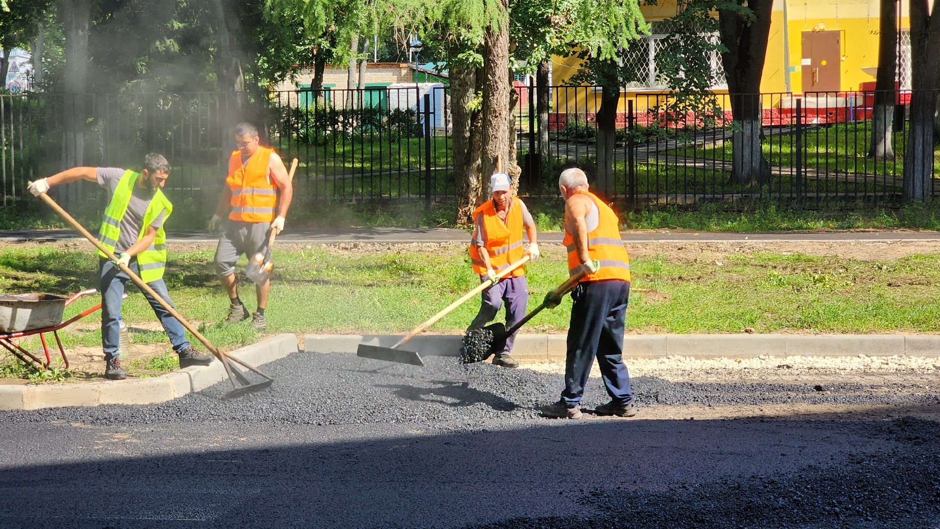 По словам начальника участка Тельмана Гиголяна, работают больше десяти человек. Техники достаточно, она обеспечивает все производственные потребности: три катка-укладчика асфальта, четыре самосвала, водовоз, трактор, газель.