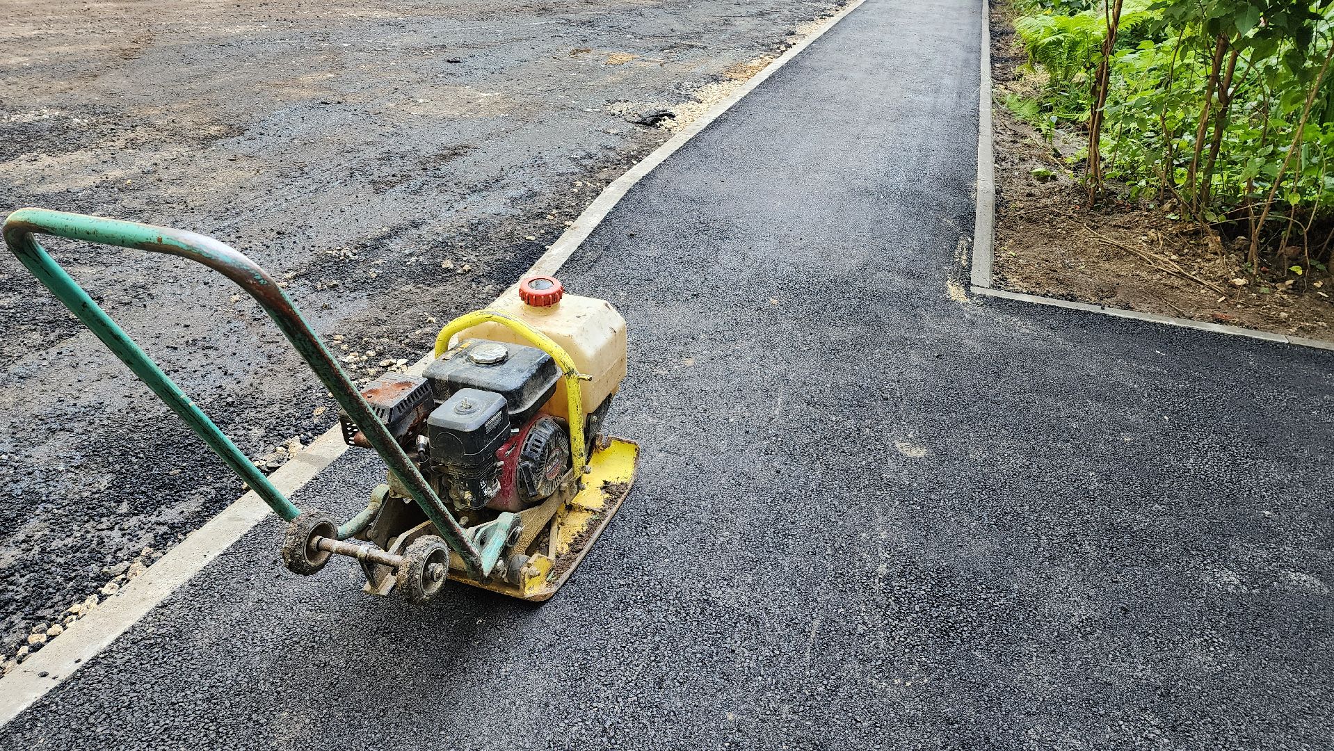 В Дзержинском на улице Спортивной и Лермонтова кладут асфальт