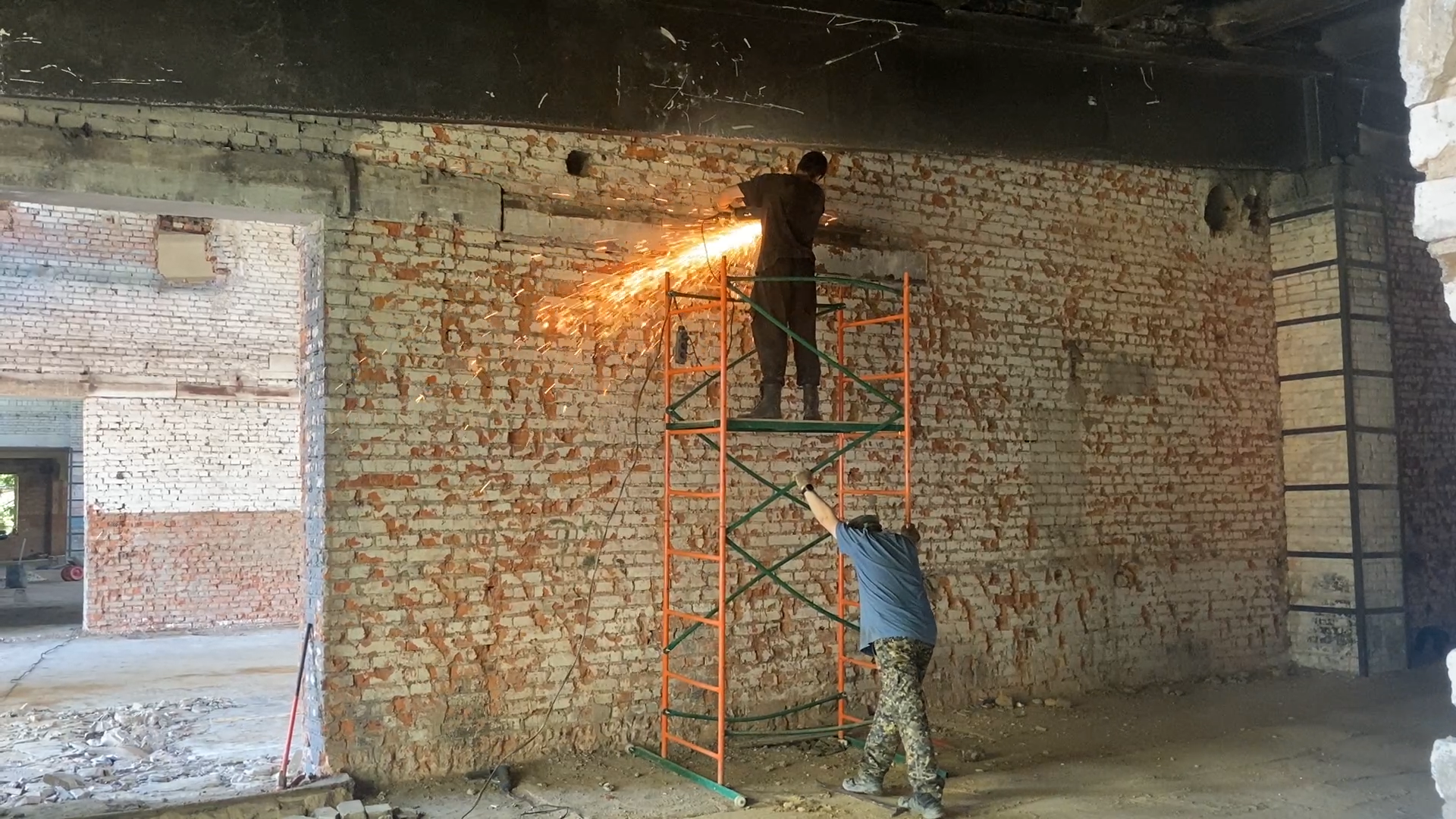 Уже завершены работы по расчистке помещений и демонтажу старых конструкций. Несущие перегородки усилены. Подрядчик планирует к зиме закрыть тепловой контур, установить двери и окна. После этого начнётся внутренняя отделка.