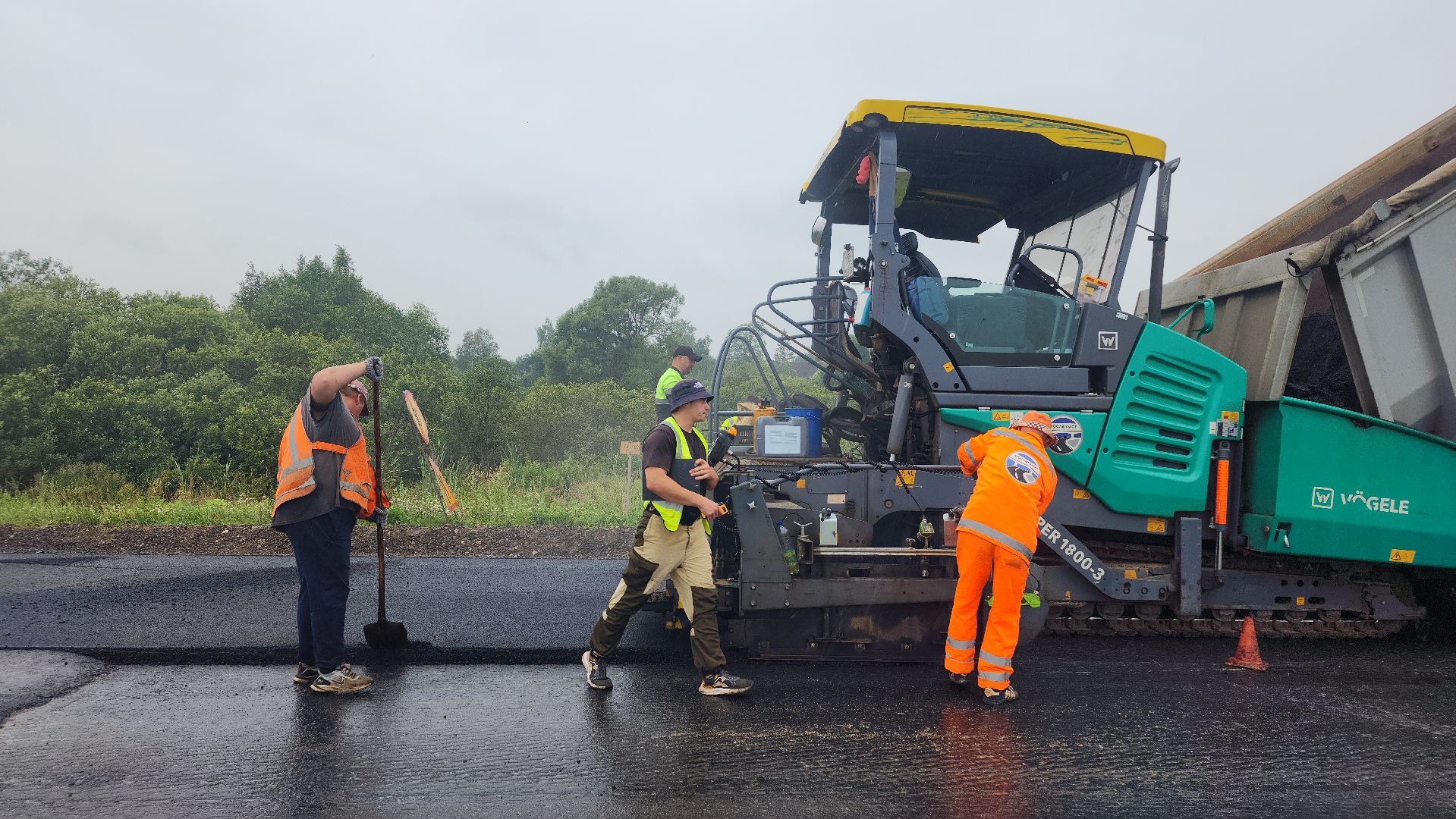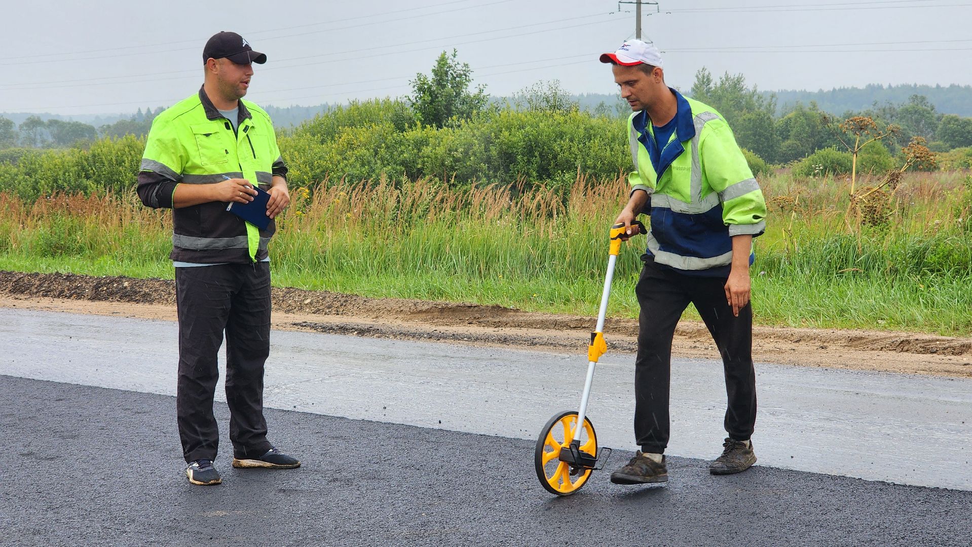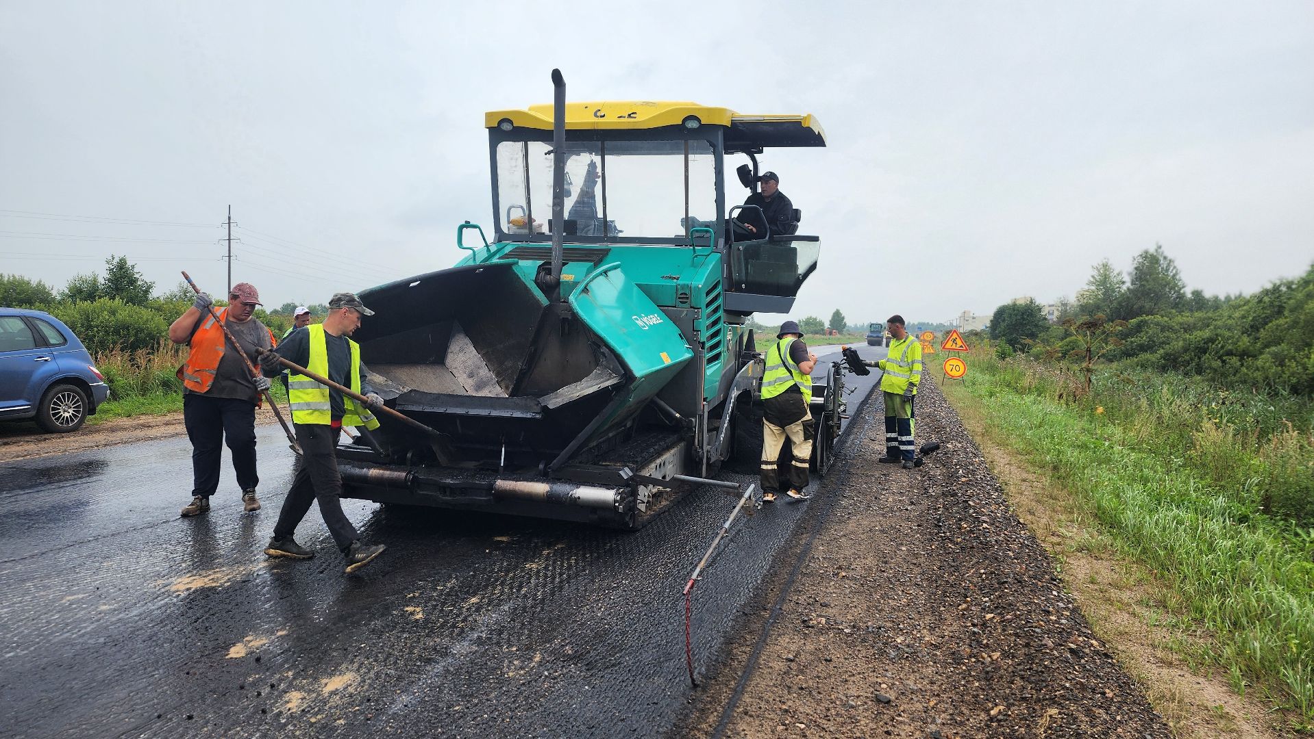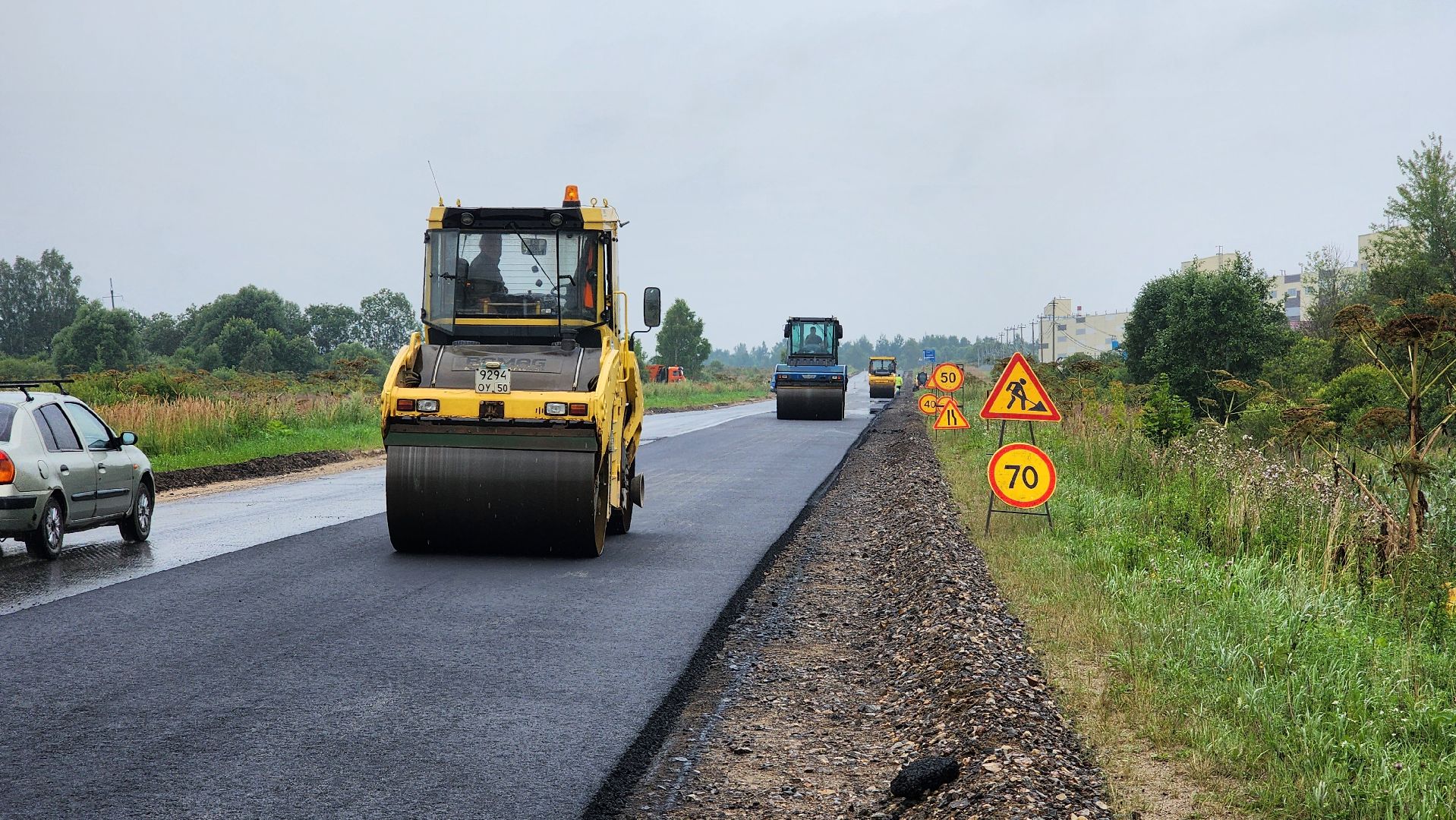 Дорожники отфрезеровали дорожное полотно, расчистили обочины на участке ремонта и начали укладку нового асфальта. На дорожное полотно длиной 850 и шириной 4 метра уходит около 600 тонн асфальтово-битумной смеси. После асфальтоукладчика следует бригада из трёх катков, которые трамбуют и само покрытие, и его кромку. Контролируют дорожники и толщину нового асфальта, и уклон, чтобы обеспечить сток воды с дороги во время дождя. После завершения основного этапа ремонта здесь укрепят обочину и нанесут дорожную разметку.